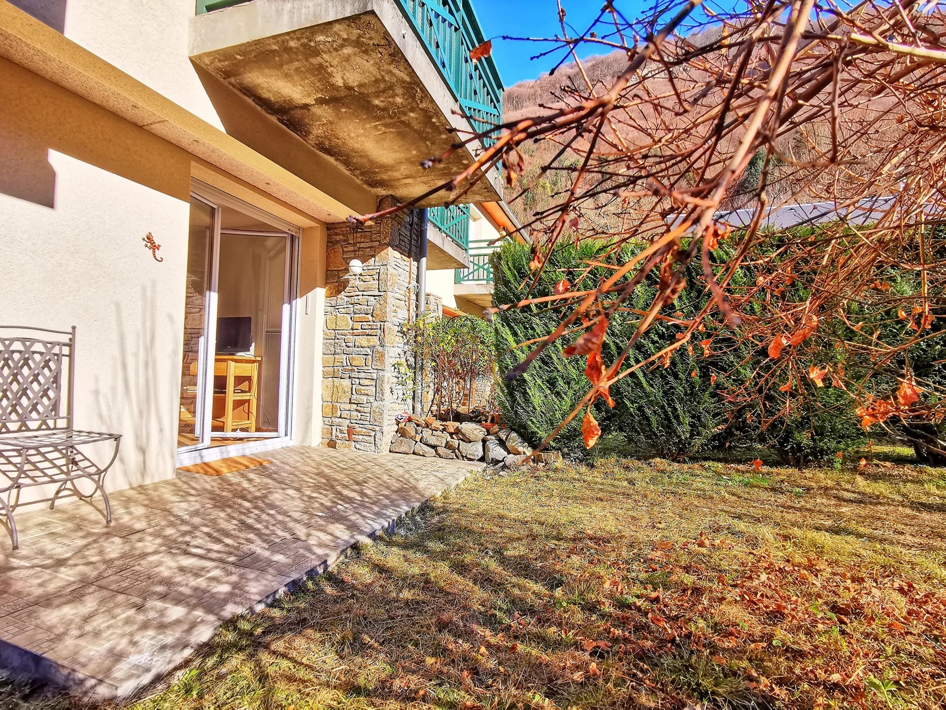 Charmant T2 récemment rénové dans un environnement calme et verdoyant. Entrée, séjour avec cuisine ouverte donnant vers la terrasse et jardin, chambre. Exposition plein sud, belle vue dégagée. Résidence sécurisée avec 2 places de stationnement réservées, un cellier, râteliers de vélos. Vous serez à 15 mn à pied des Thermes de Luchon, à proximité immédiate des sentiers de randonnées et de la promenade le long de la Pique, à 20 mn de la station de Superbagnères et de Peyragudes.