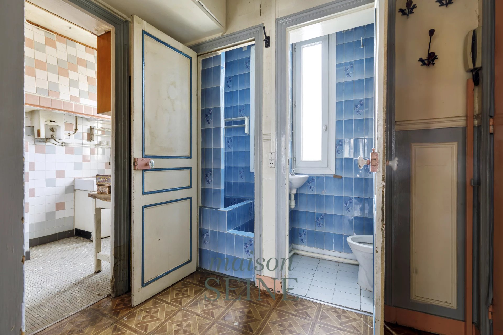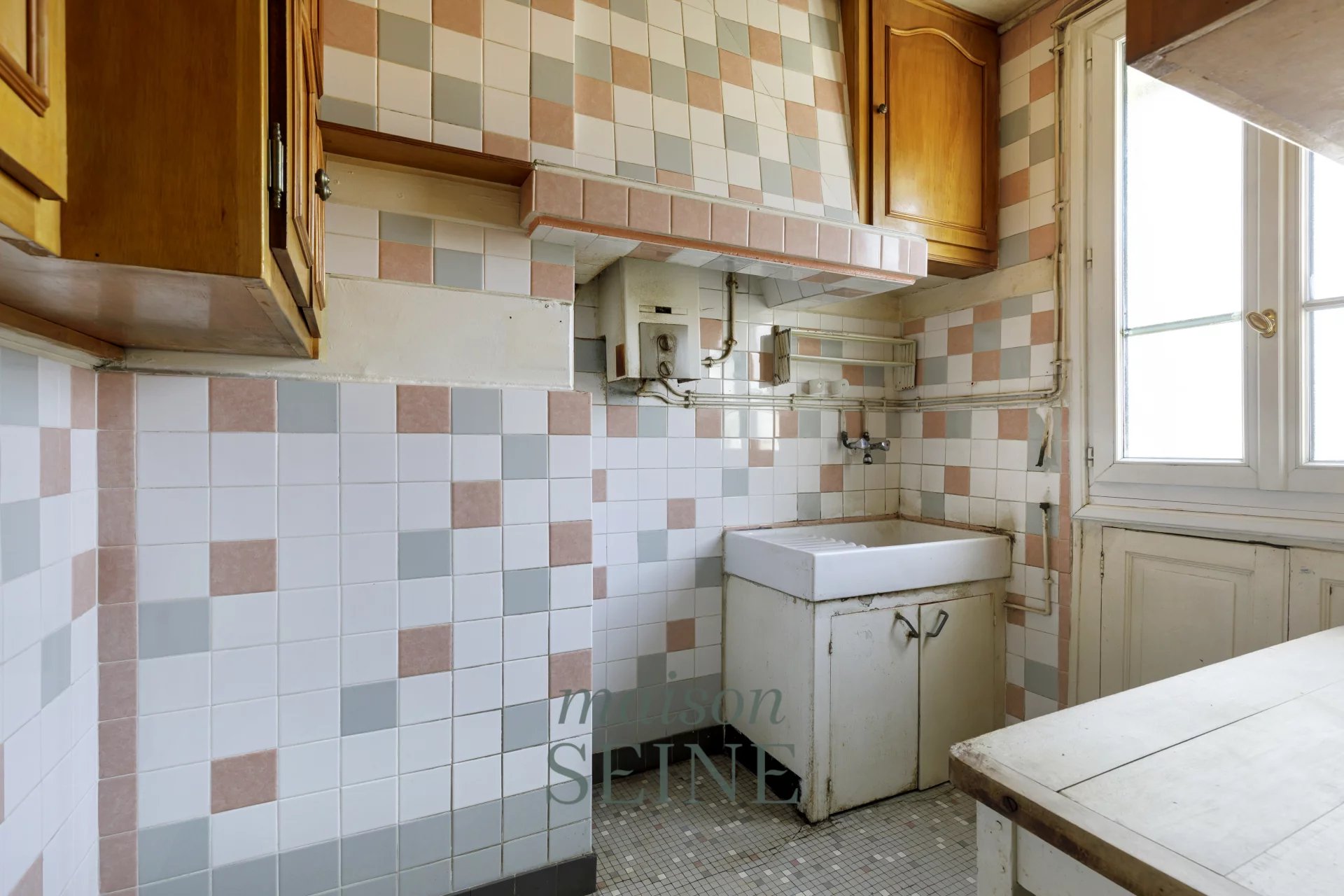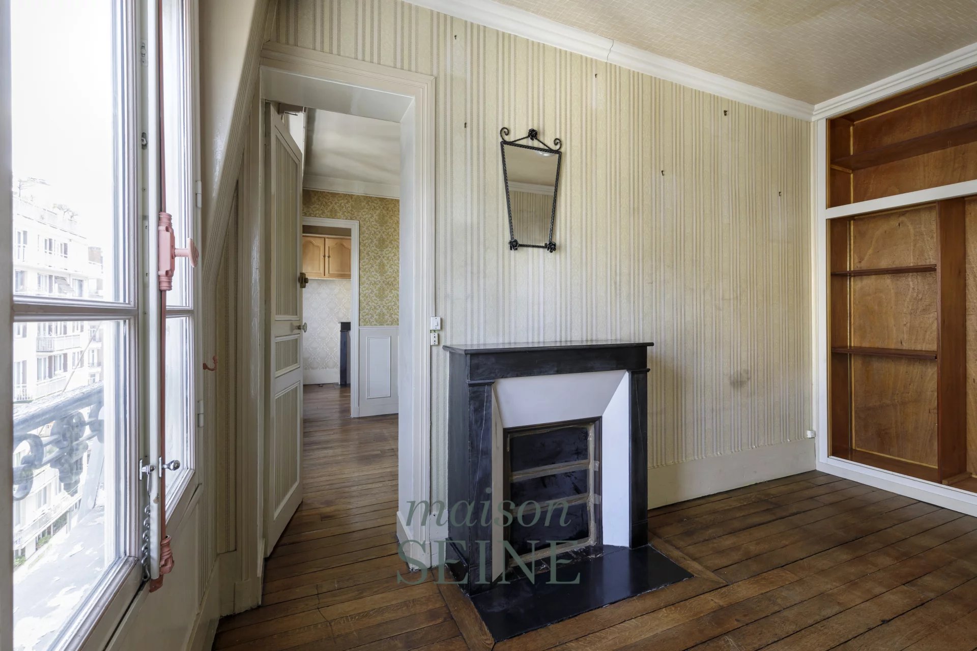 Idéalement situé au cœur du XVe arrondissement, au 6ème et dernier étage d’un bel immeuble ancien avec ascenseur, bien entretenu et aux parties communes récemment rénovées, appartement traversant de 46,16 m² carrez (47,04 m² au sol), à rénover.
