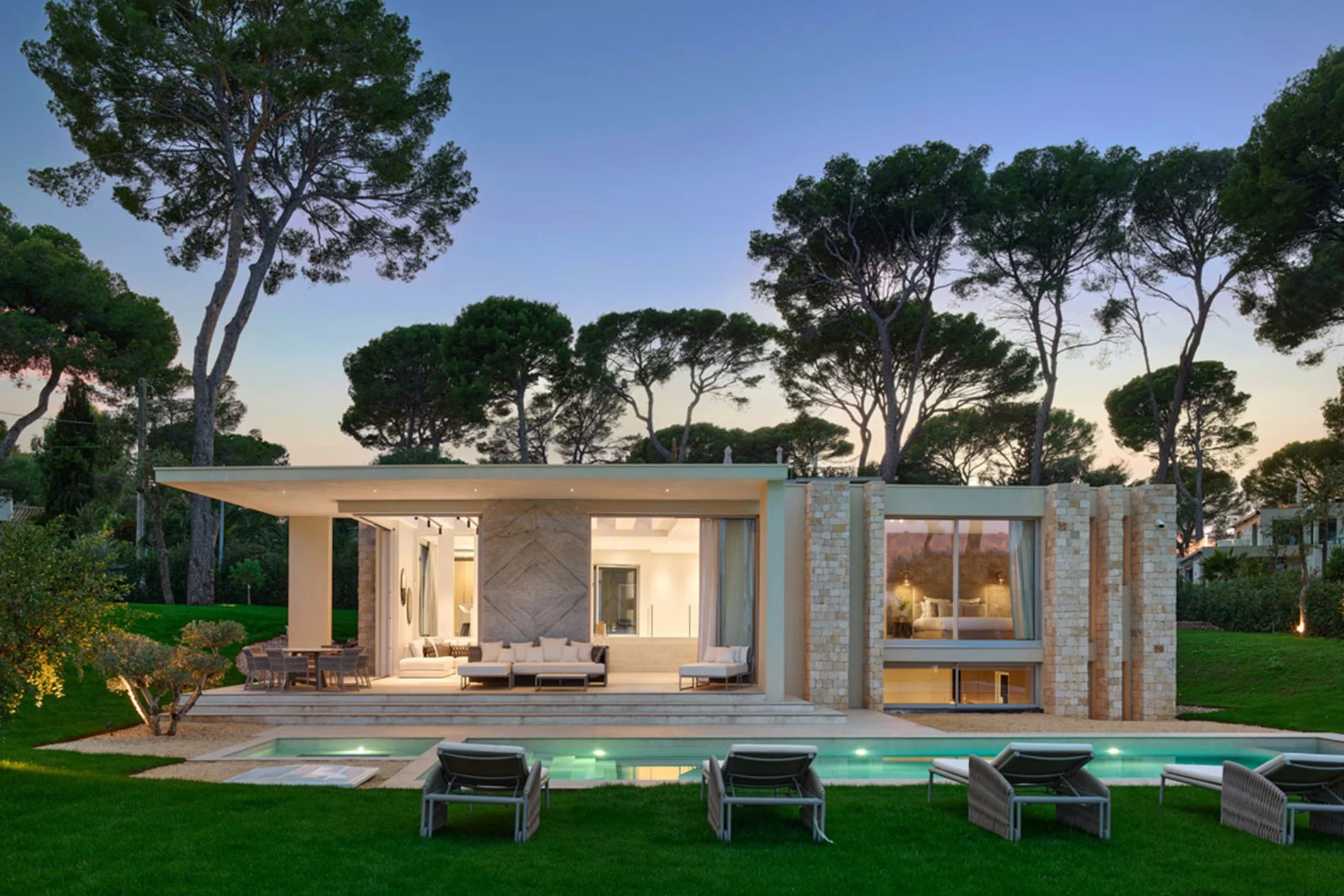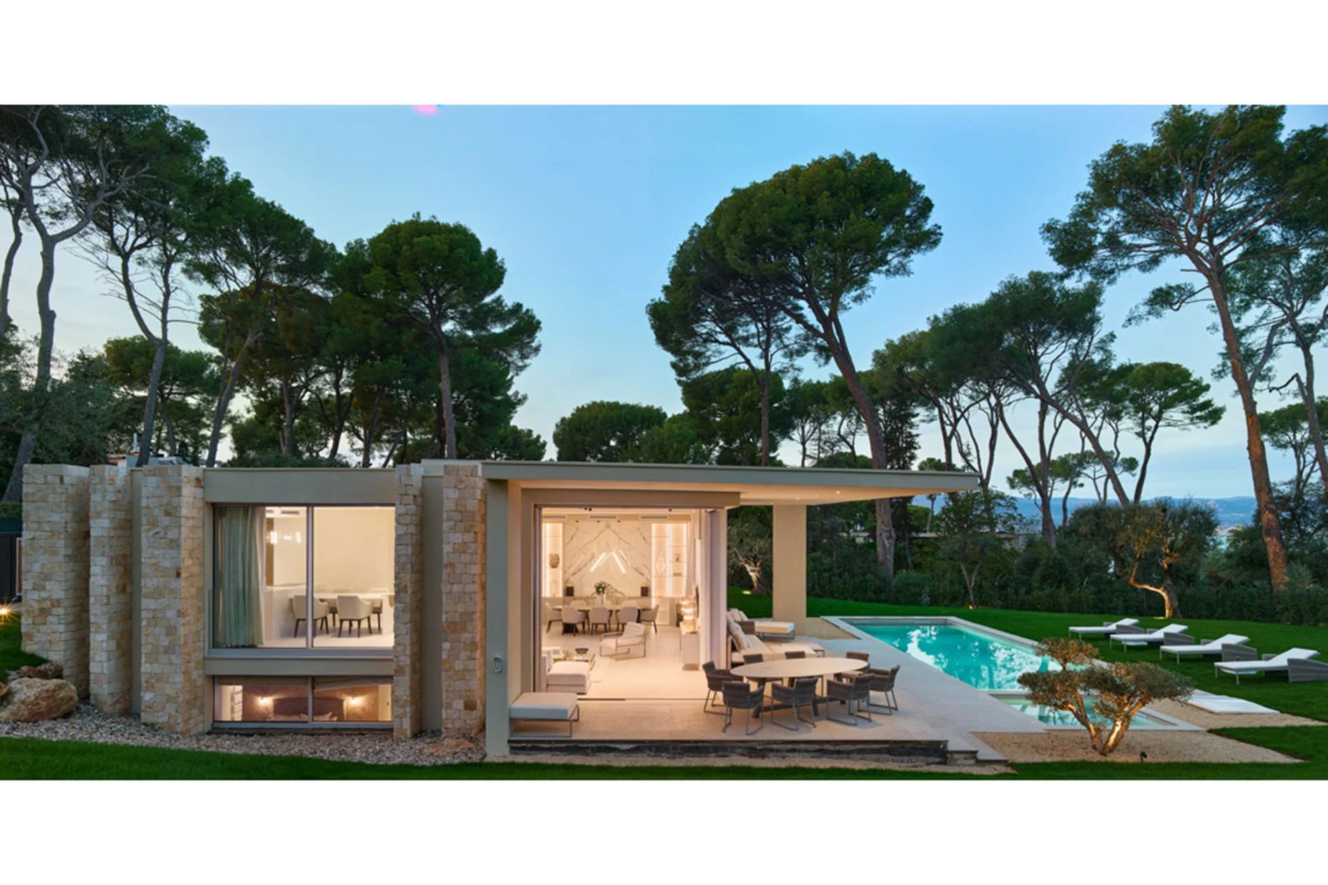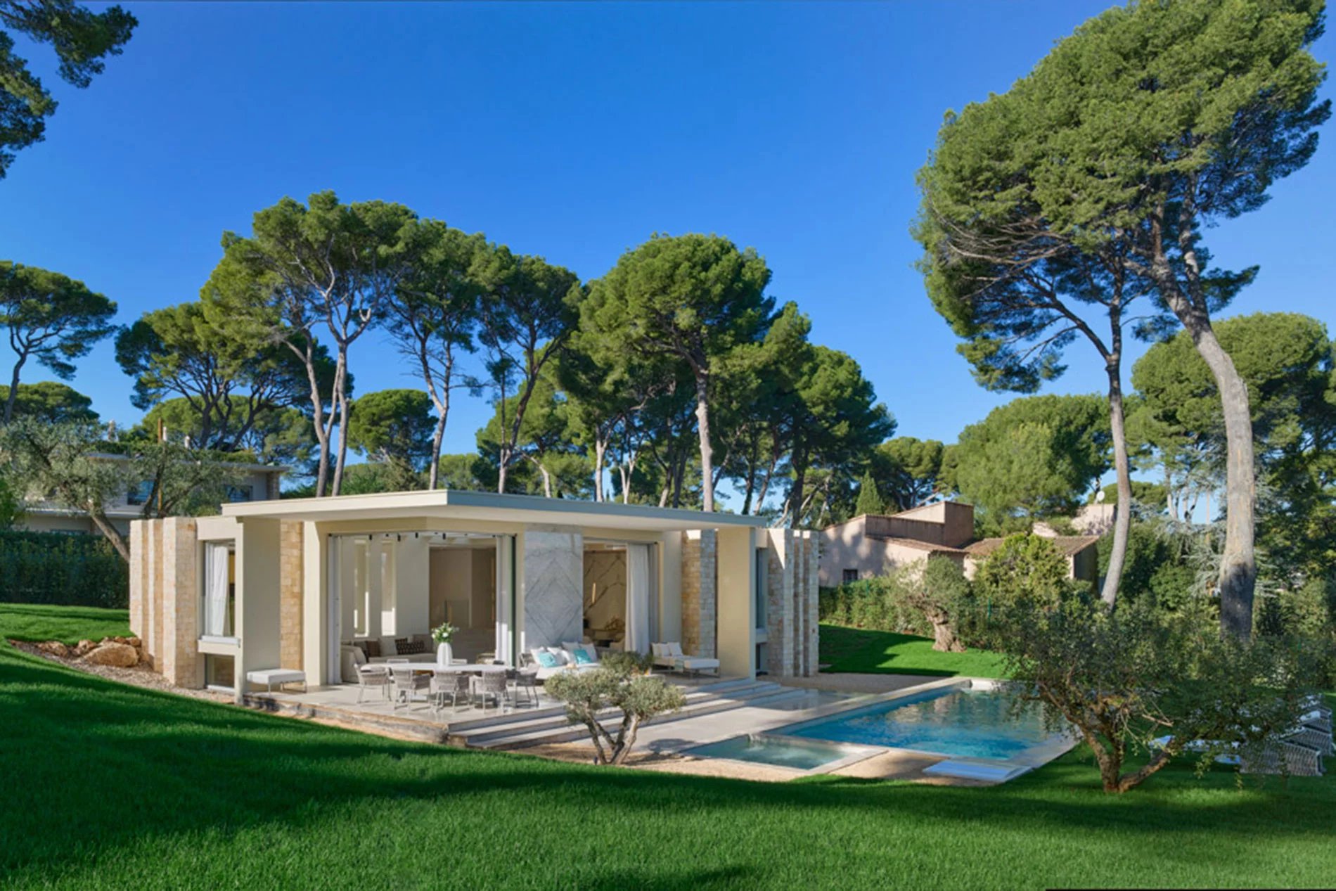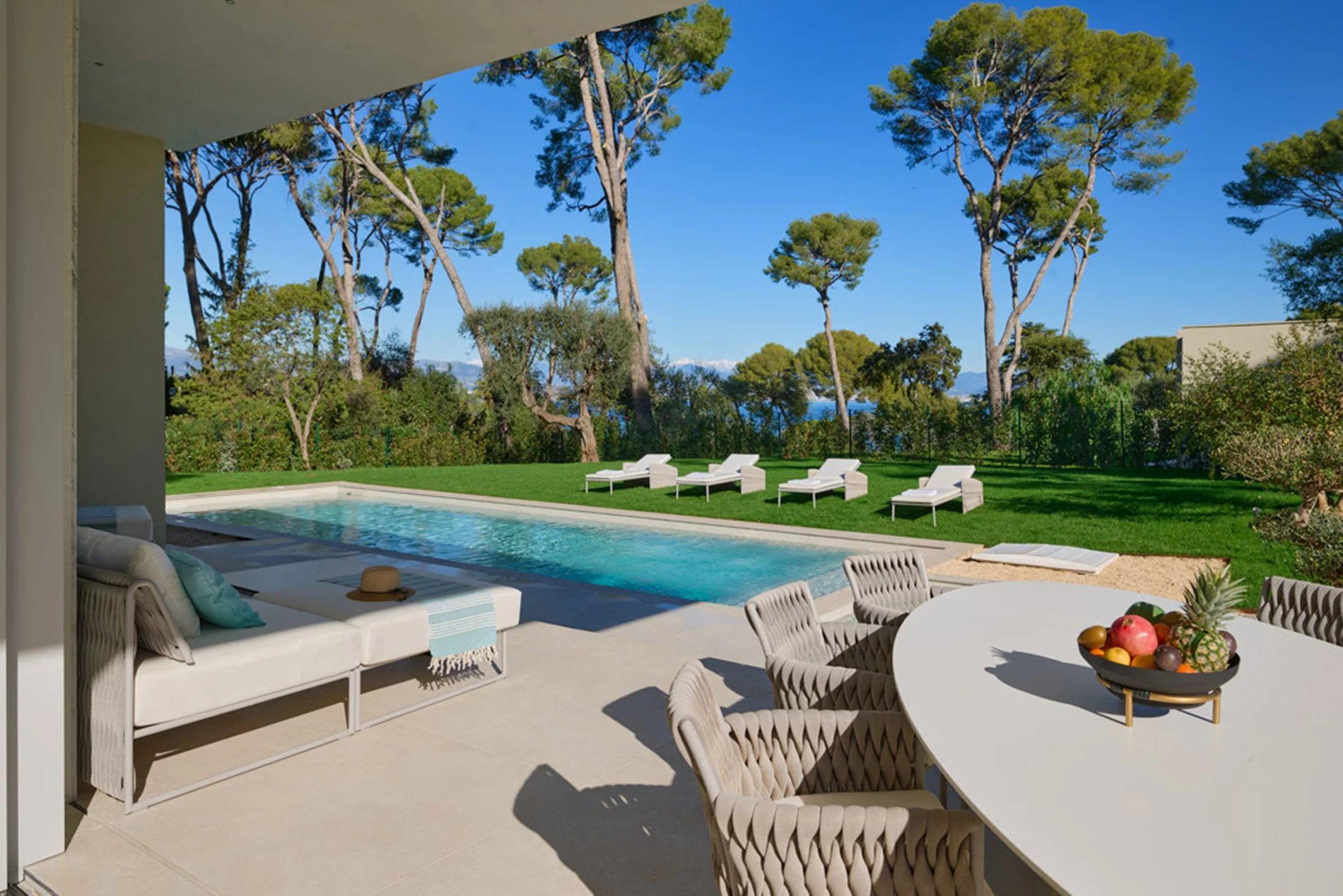Villa de luxe moderne, récemment construite, sur l’emplacement recherché du Cap d'Antibes, cette villa spacieuse de 328 m2 est construite sur un terrain de 2102 m2 avec piscine et vue imprenable sur la mer. Le spacieux salon dispose de fenêtres panoramiques et d'un accès à la piscine et à une grande terrasse. Une cuisine semi-ouverte, 4 chambres bien aménagées avec leur propre salle de bains privative, une salle de cinéma et une salle de fitness