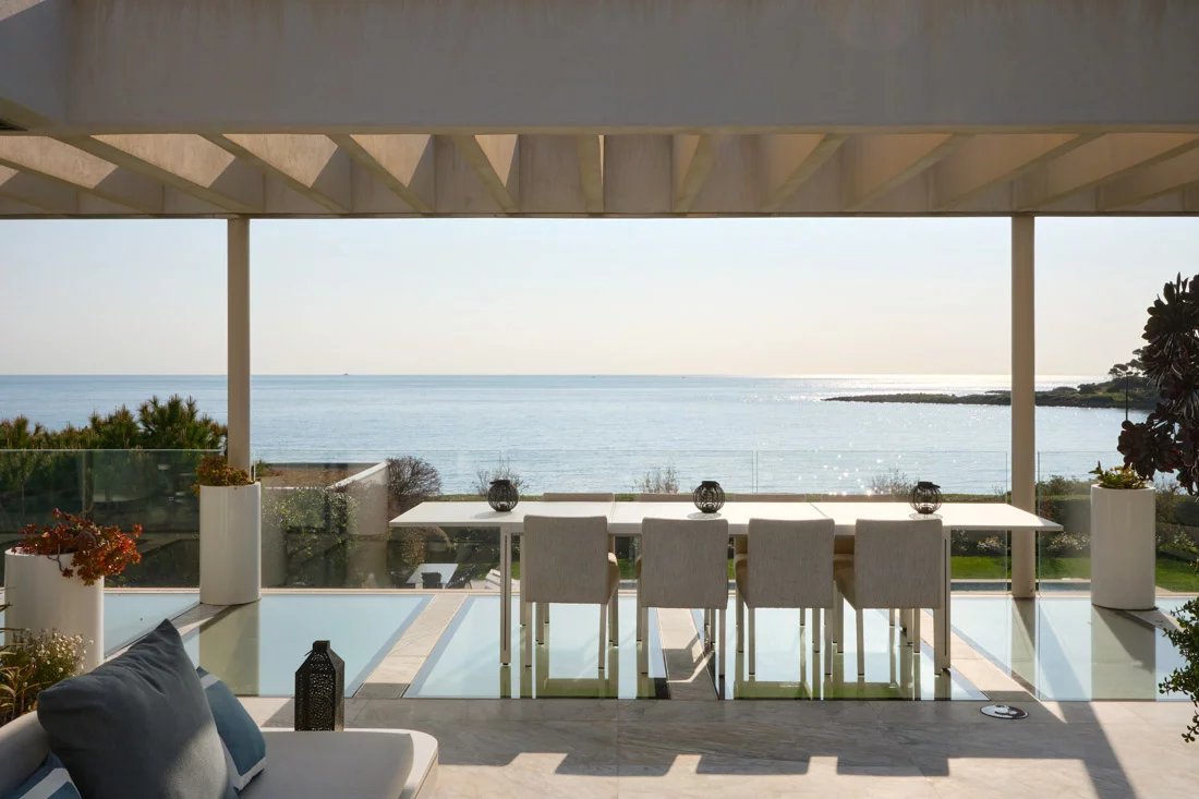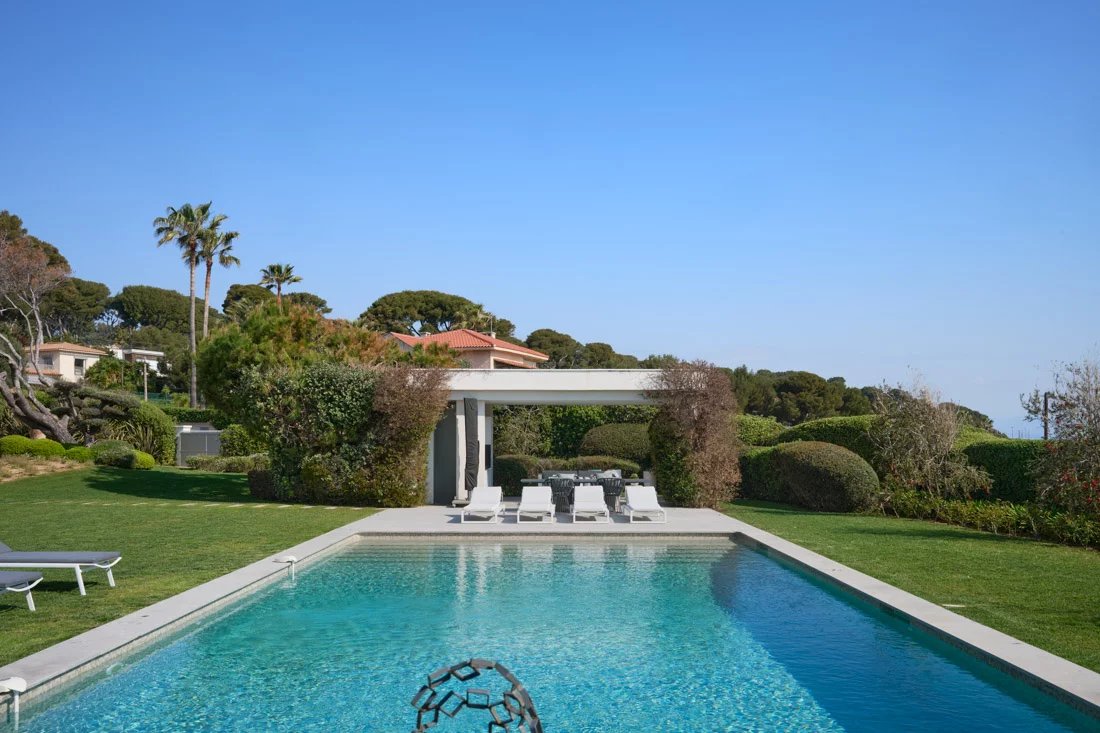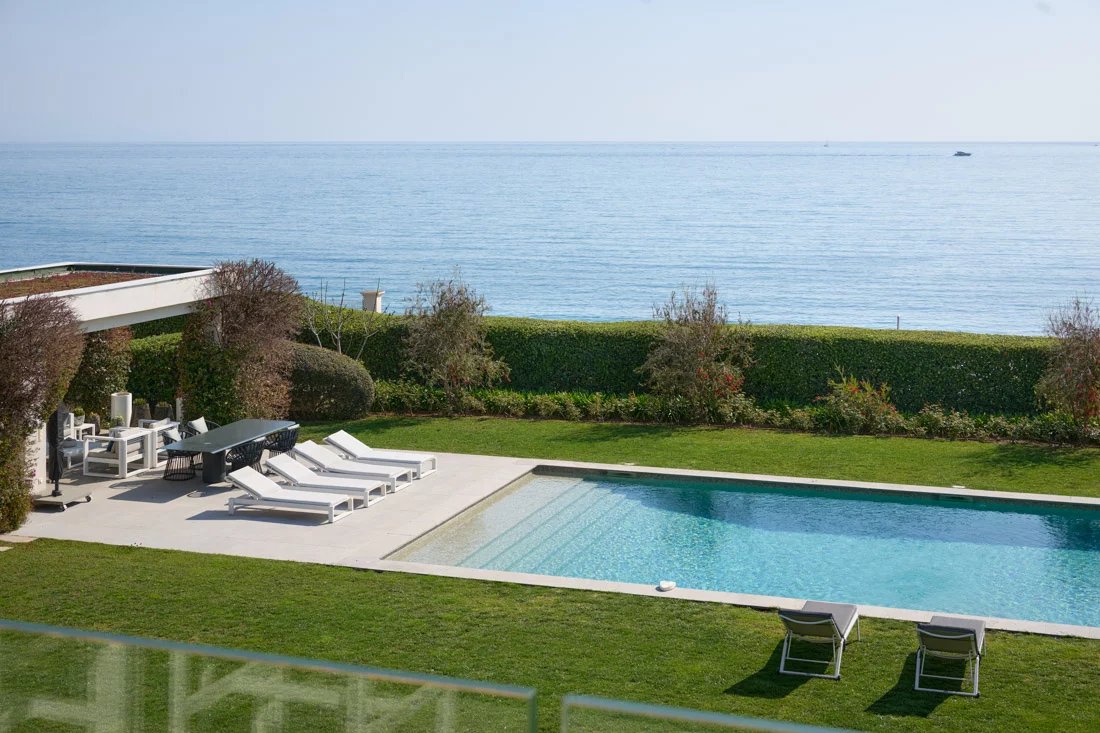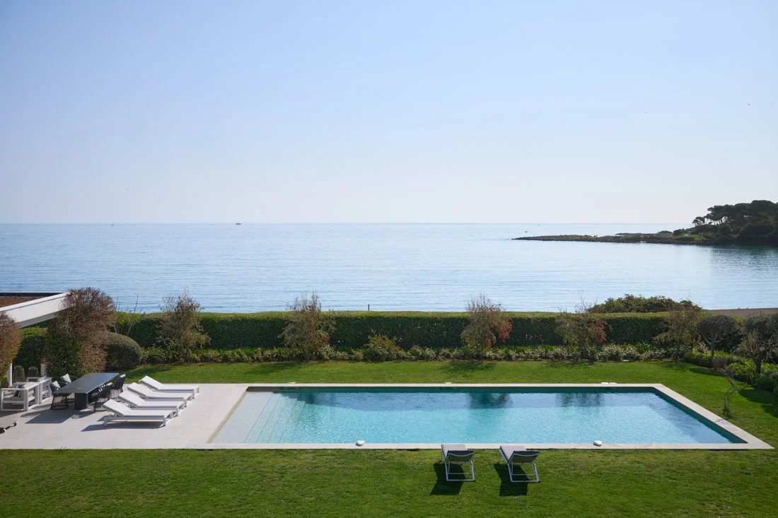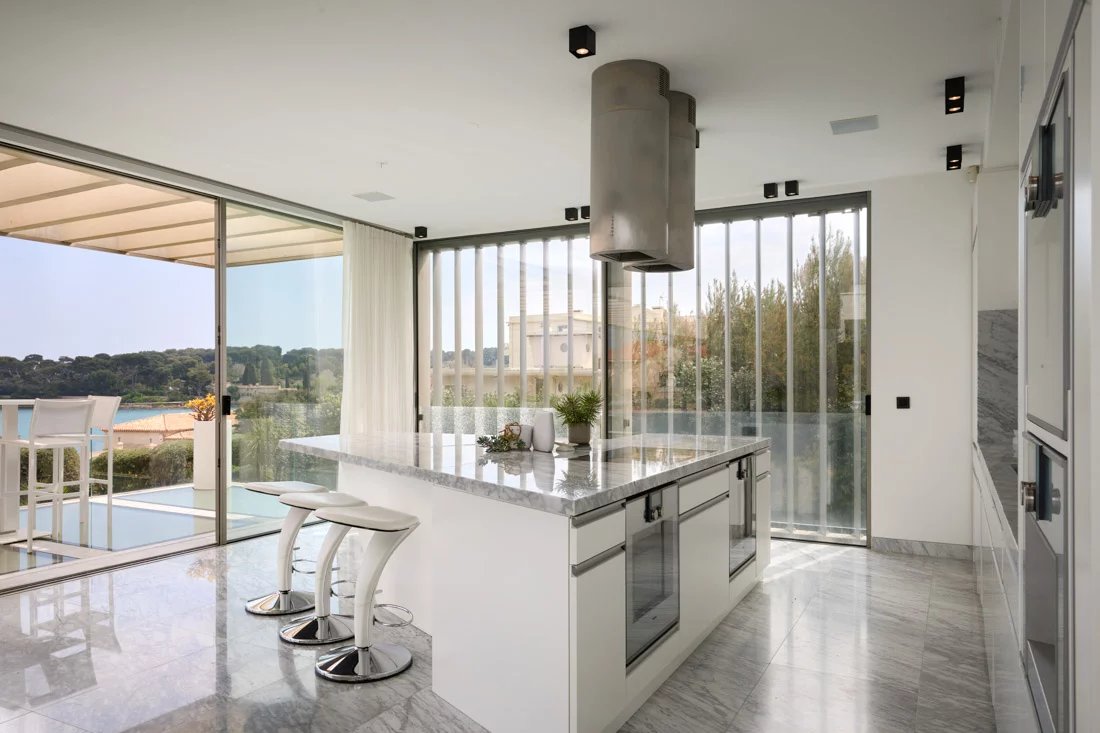 Cette propriété, située dans un emplacement privilégié sur la péninsule, offre une vue panoramique sur la mer et la côte. Elle est implantée sur un magnifique terrain plat, agrémenté d'un jardin tropical.