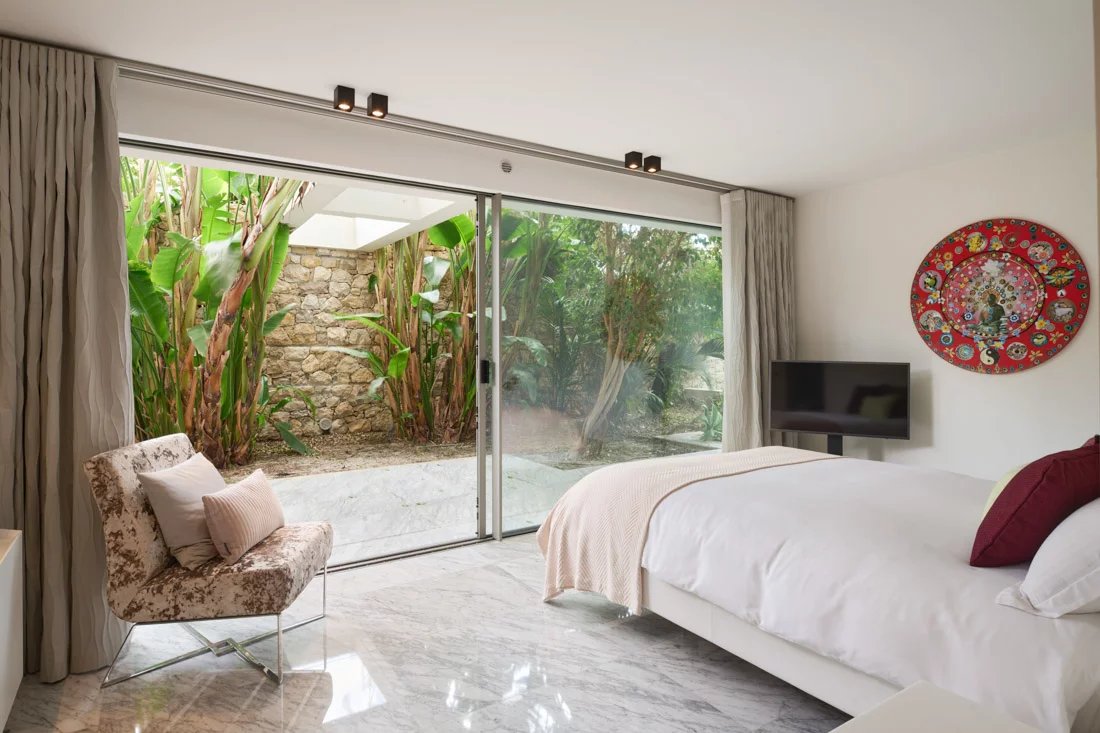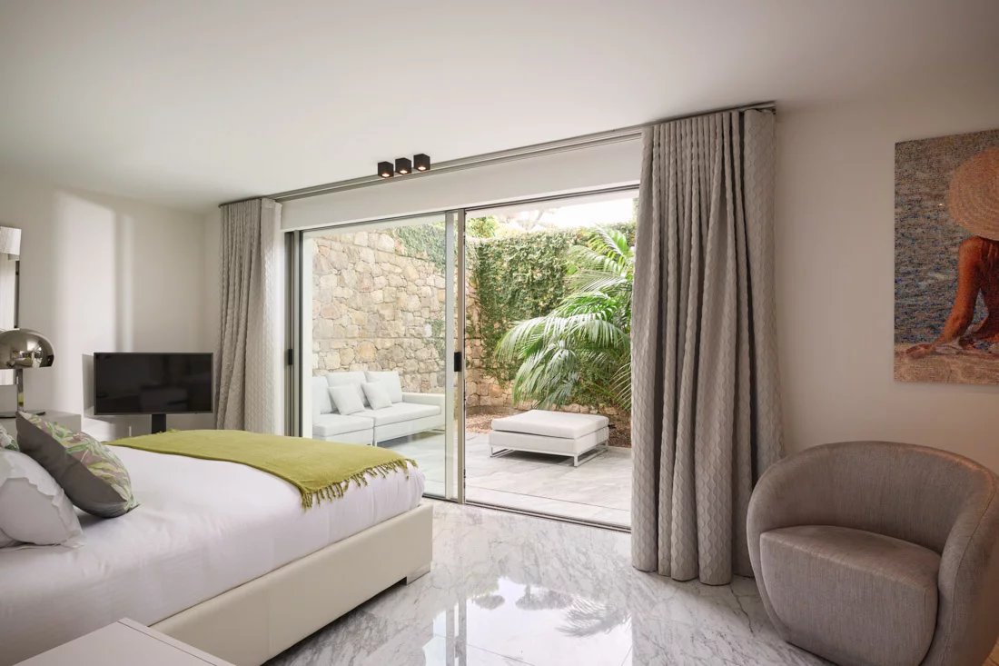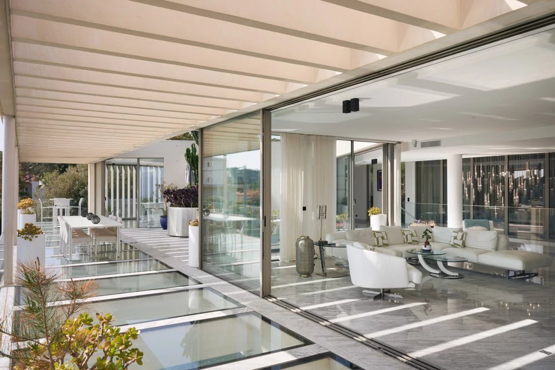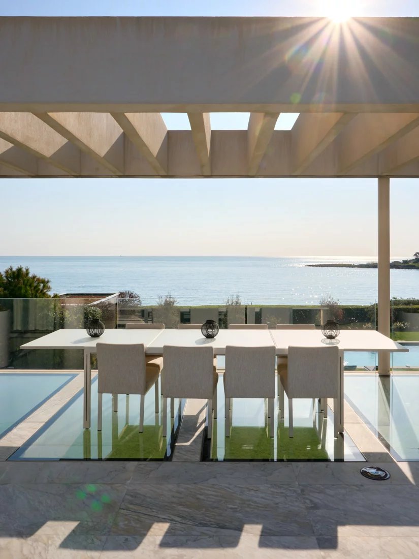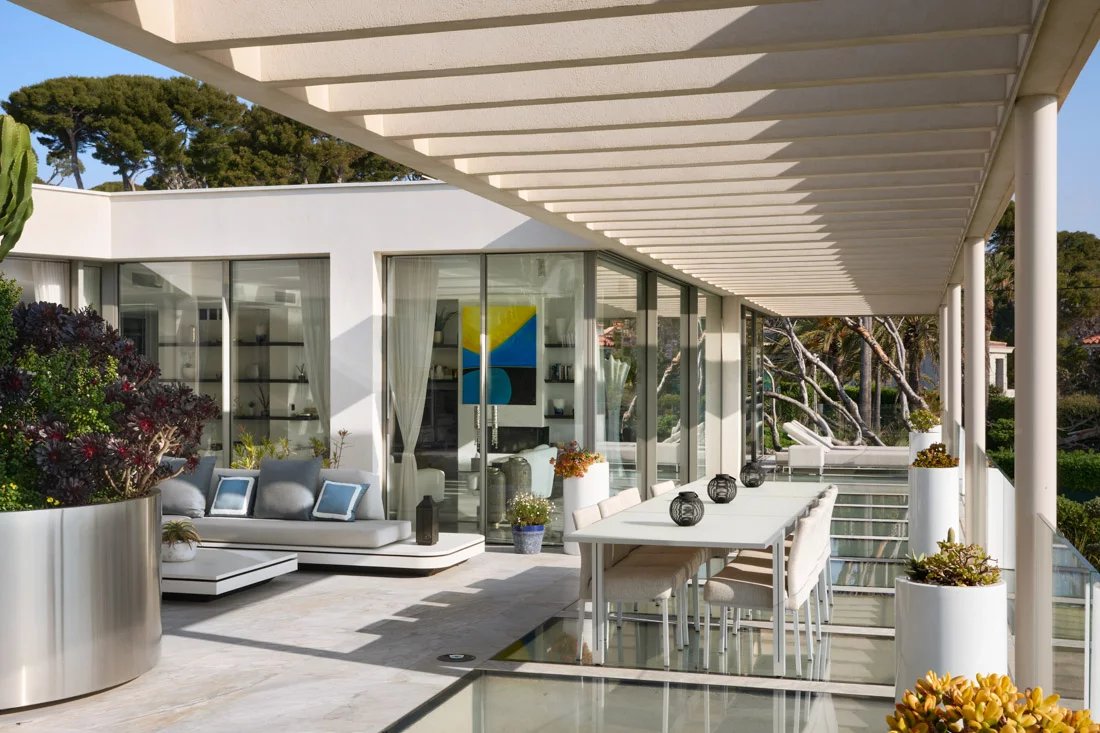 Cette propriété, située dans un emplacement privilégié sur la péninsule, offre une vue panoramique sur la mer et la côte. Elle est implantée sur un magnifique terrain plat, agrémenté d'un jardin tropical.
