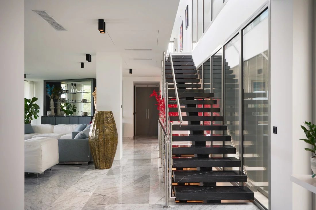 La propriété est dotée de finitions de la plus haute qualité, avec des matériaux haut de gamme, un ascenseur, un système domotique de pointe et un système d'alarme complet pour la propriété et son terrain.