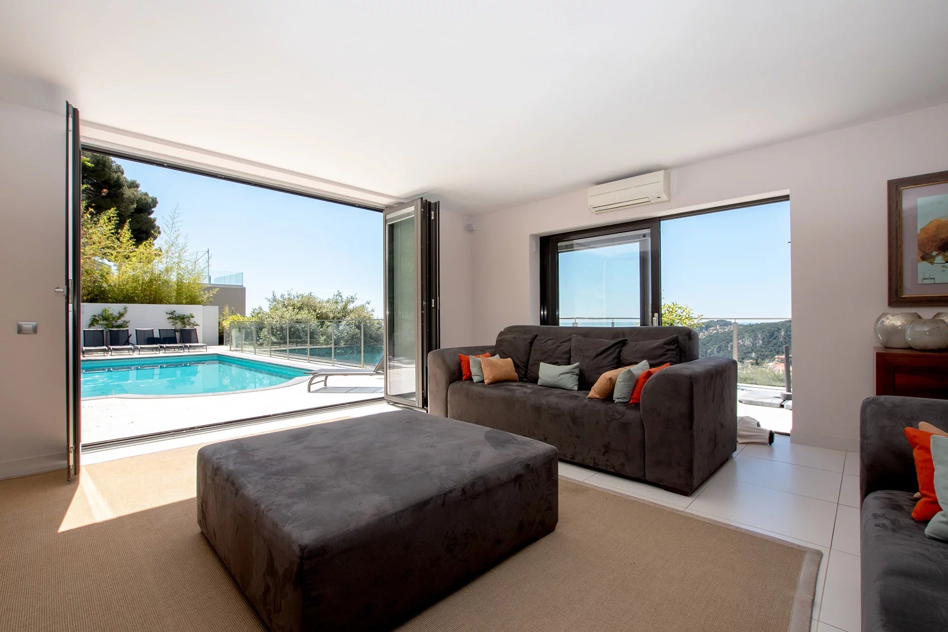 Au sein d’un domaine privé sécurisé, cette propriété d’environ 255 m² bénéficie d’une superbe vue panoramique sur la rade de Villefranche et le Cap Ferrat. La maison est composée au premier étage d’un hall d’entrée, d’une belle et ensoleillée pièce de réception de plus de 50 m² ouvrant sur la piscine et sur une grande terrasse avec une vue imprenable ainsi que d’une cuisine aménagée et équipée. Au rez-de-chaussée, une grande pièce de vie de 72 m², une chambre avec salle d’eau privative et wc ainsi qu’une buanderie. Au deuxième étage, une chambre principale avec une salle de bain privative et deux autres chambres, chacune avec une salle d’eau et des toilettes. Cette propriété en parfait état est complétée par un abri pour deux véhicules.