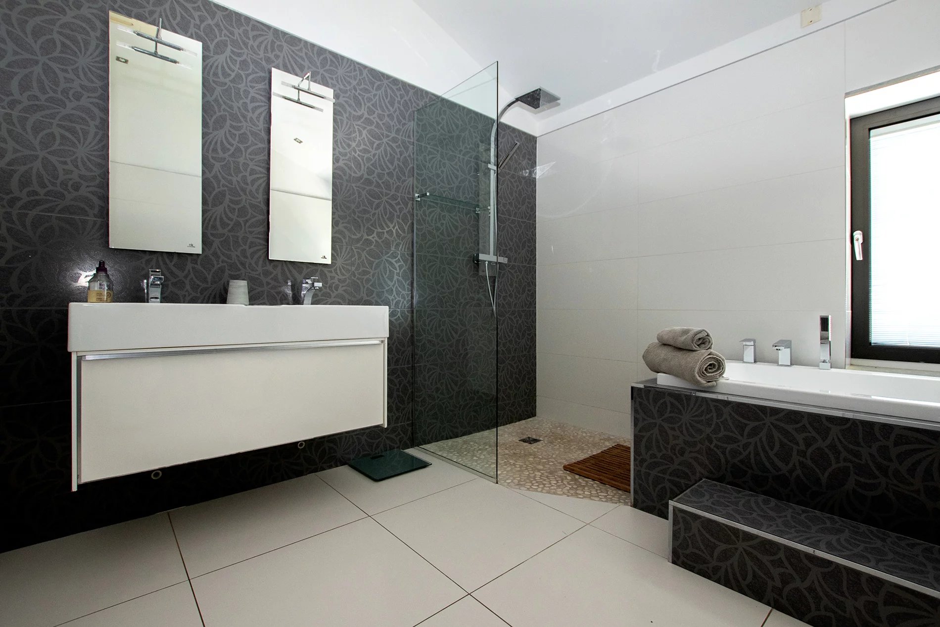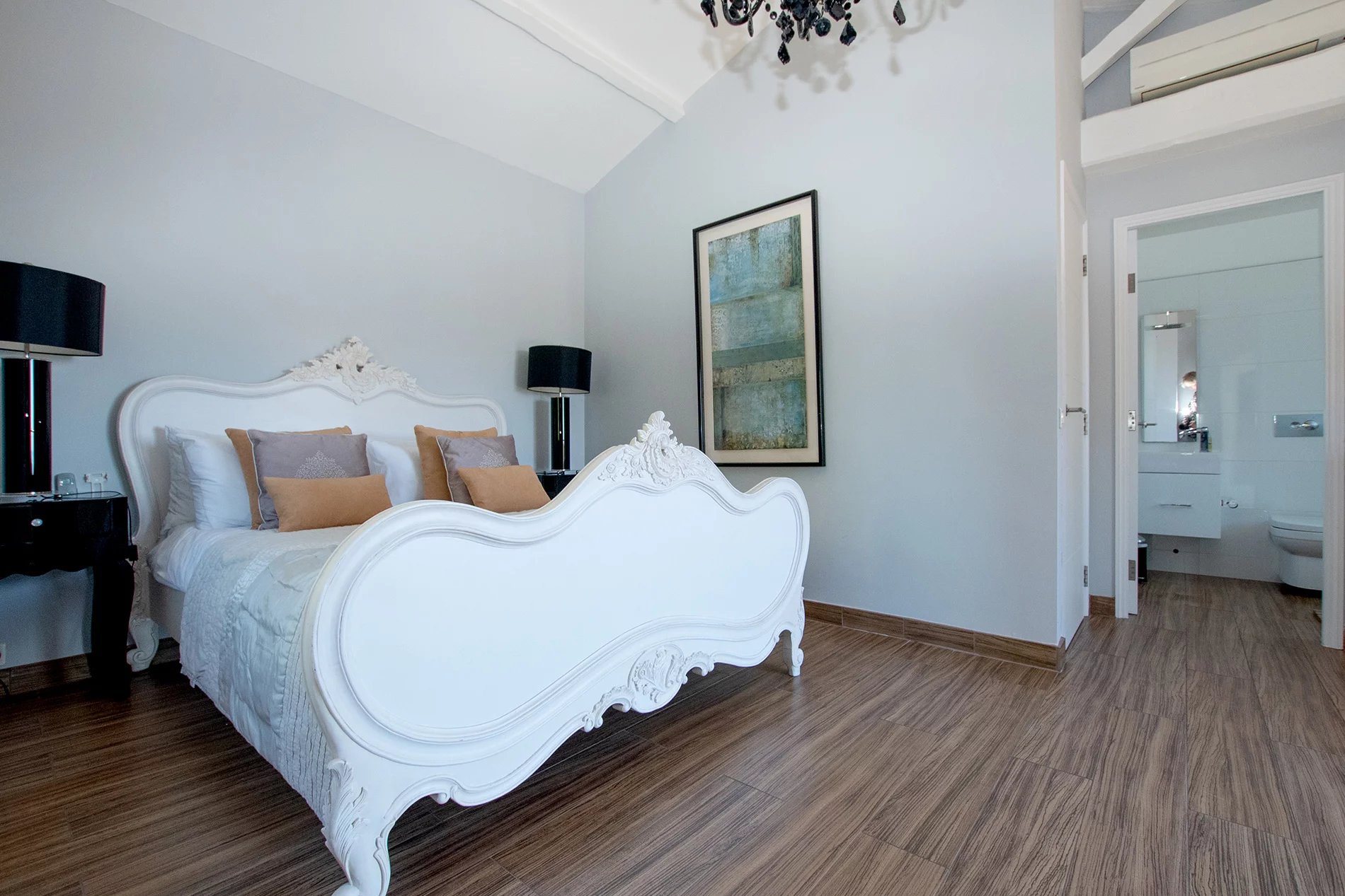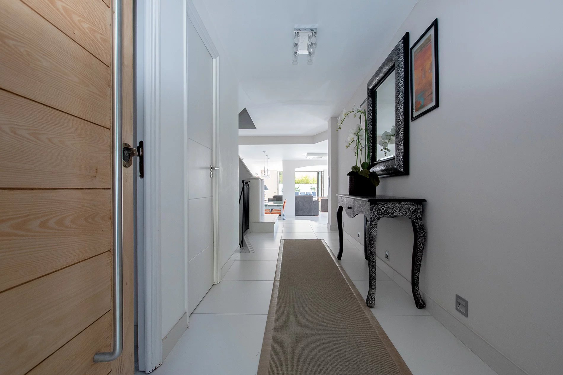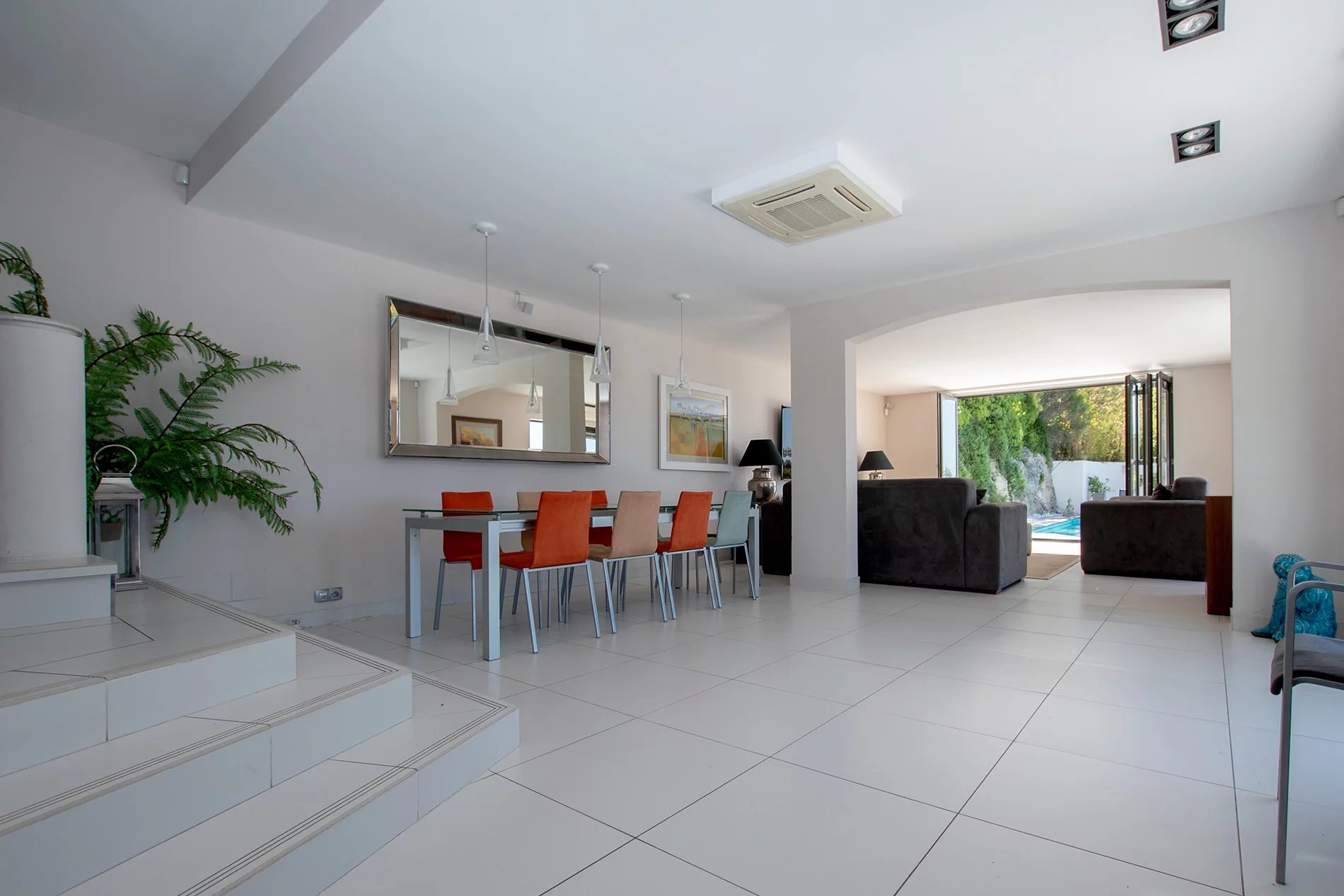 La maison offre 4 chambres, 3 salles de bain, 2 salles de réception, un jardin, une piscine, un rangée de maison, un village, un stationnement privé et une vue sur mer.