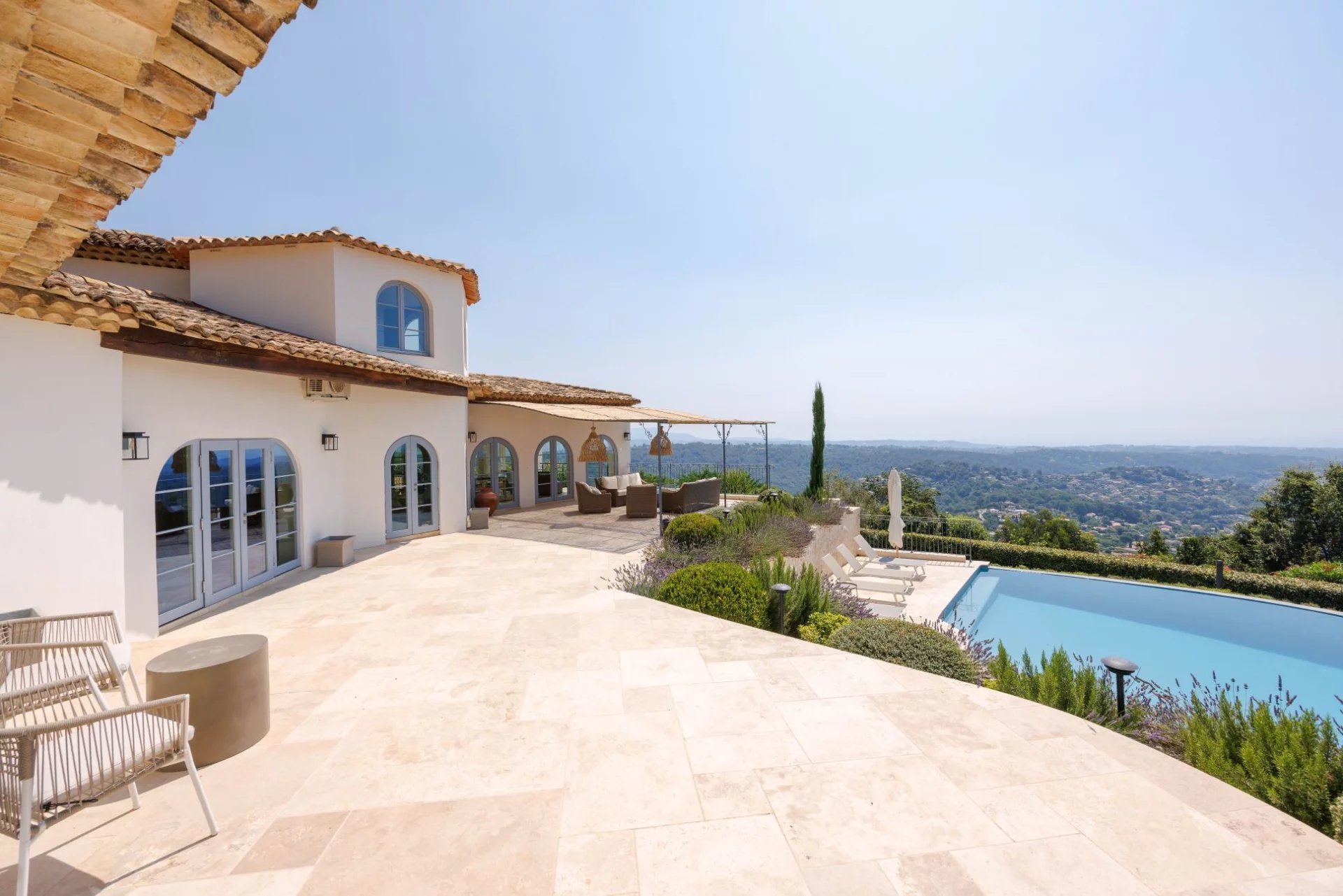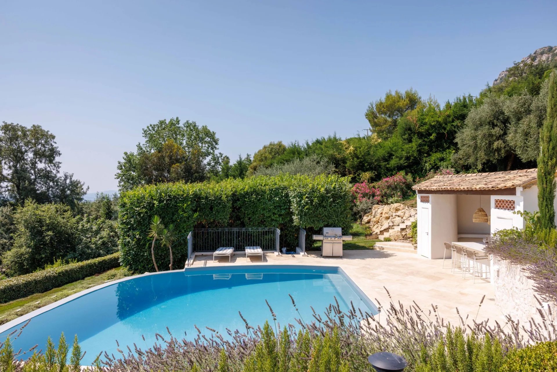 Cette villa de luxe située en surplomb du charmant village de Vence offre une expérience de vie extraordinaire. La villa principale est spacieuse et comprend quatre chambres magnifiquement conçues. Elle dispose également de deux studios indépendants, parfaits pour les invités ou pour plus d'intimité. La villa comprend une cuisine entièrement équipée avec des appareils électroménagers haut de gamme, ainsi qu'une cuisine d'été pour les repas en plein air et les réceptions. Un grand salon et une salle à manger spacieuse avec accès direct à la terrasse et à la piscine.