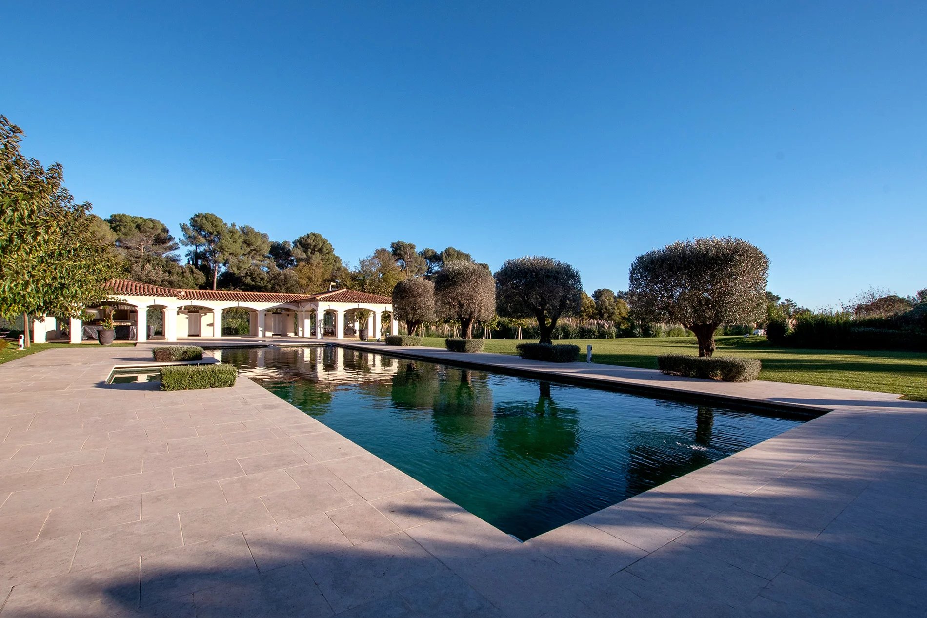 La villa comprend également un pool house entièrement équipé et une cuisine d'été, idéale pour les repas en plein air et les réceptions pendant les mois les plus chauds. Que vous souhaitiez organiser une fête somptueuse ou profiter d'un moment de calme au bord de la piscine, cette villa offre tout ce qu'il faut pour un séjour inoubliable.