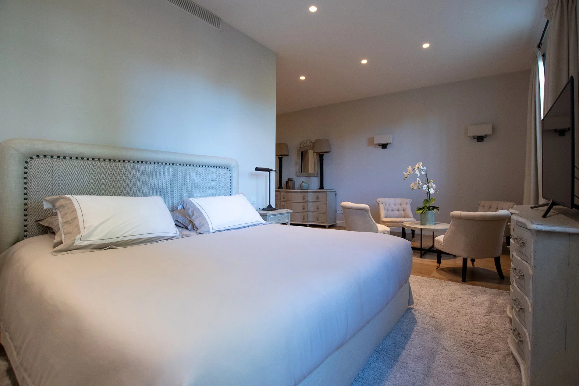 La propriété dispose de sept chambres aux dimensions généreuses, chacune avec sa propre salle de bains, garantissant l'intimité et la commodité de tous les hôtes. La villa est dotée d'équipements haut de gamme qui mettent l'accent sur la qualité et la sophistication. Les intérieurs spacieux offrent beaucoup d'espace pour se détendre et se divertir, chaque détail étant conçu pour un maximum de confort.