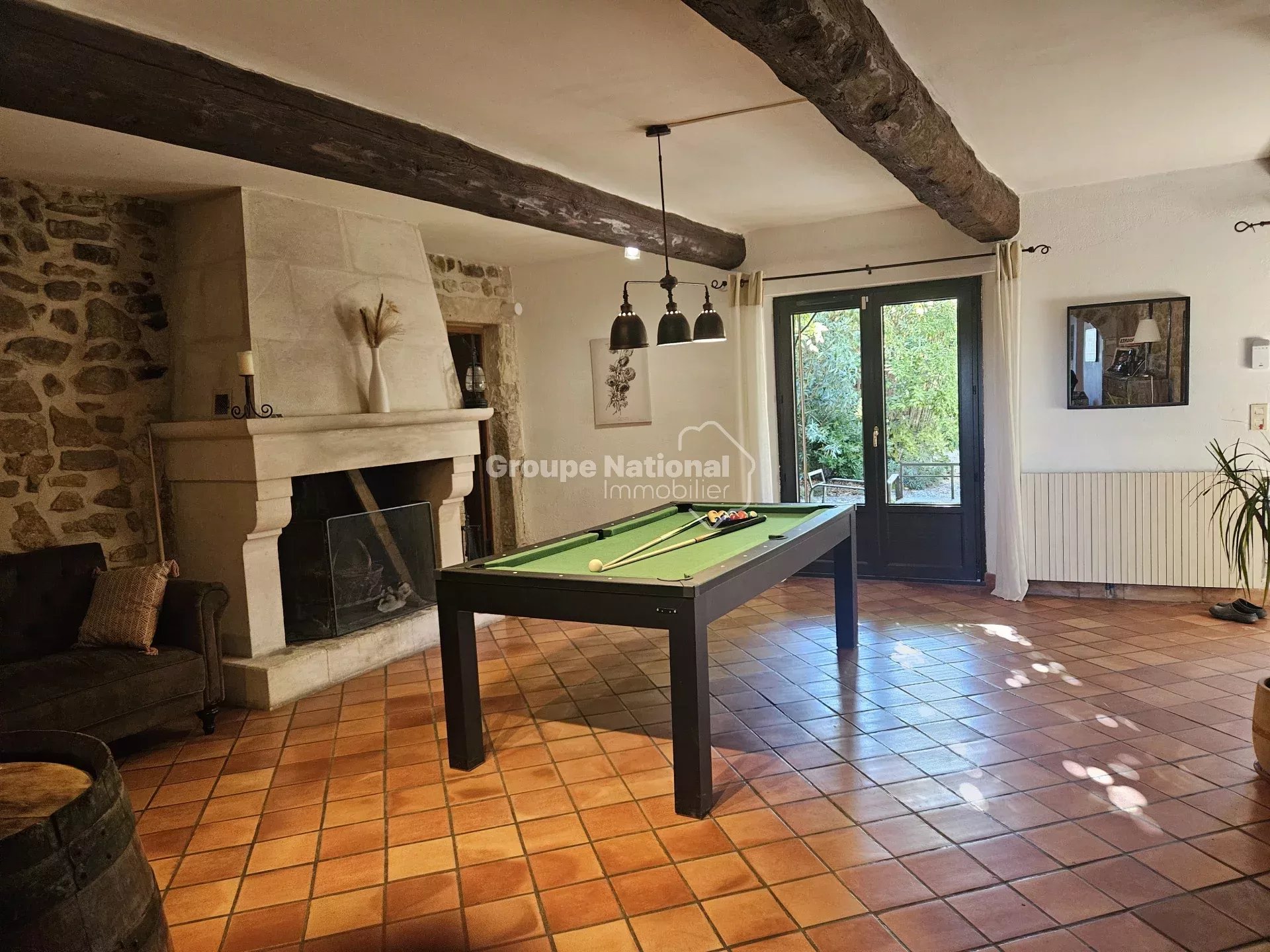 Le charme des pierres apparentes, des poutres en bois et l’agencement soigné font de ce mas une propriété pleine de cachet, idéale pour un projet d’accueil touristique ou une résidence familiale de caractère.