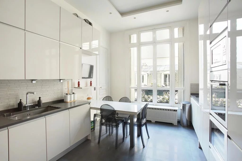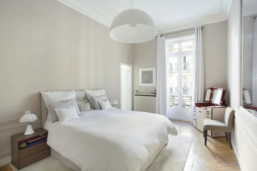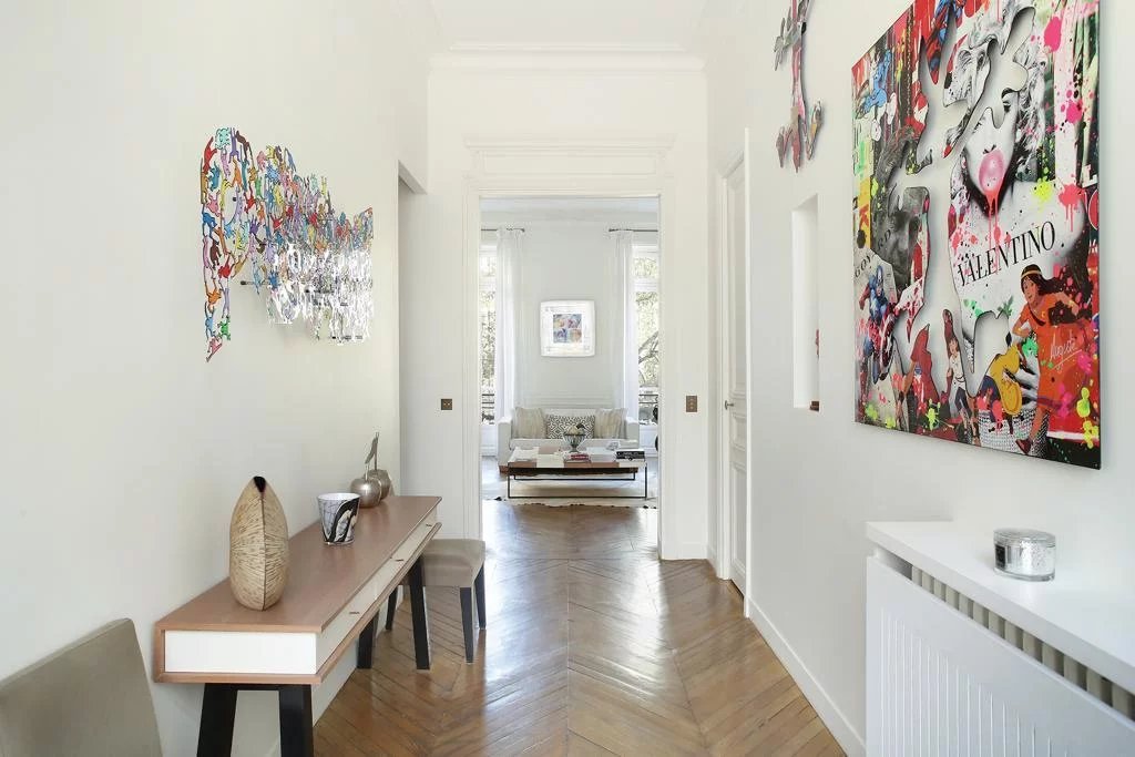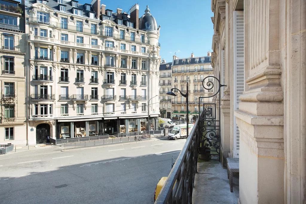 Proche du Parc Monceau et des Champs Elysées, appartement familial en parfait état de 157 m2, 3 chambres, lumineux avec balcons, dans un immeuble haussmannien de grand standing au 2ème étage avec gardien.