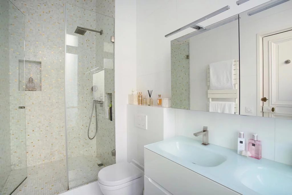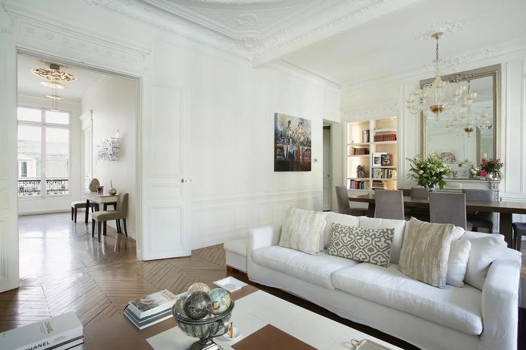 L'appartement est lumineux, traversant et bénéficie de prestations de qualité : parquets pointe de Hongrie, moulures, cheminées, belle hauteur sous plafond (3m60).