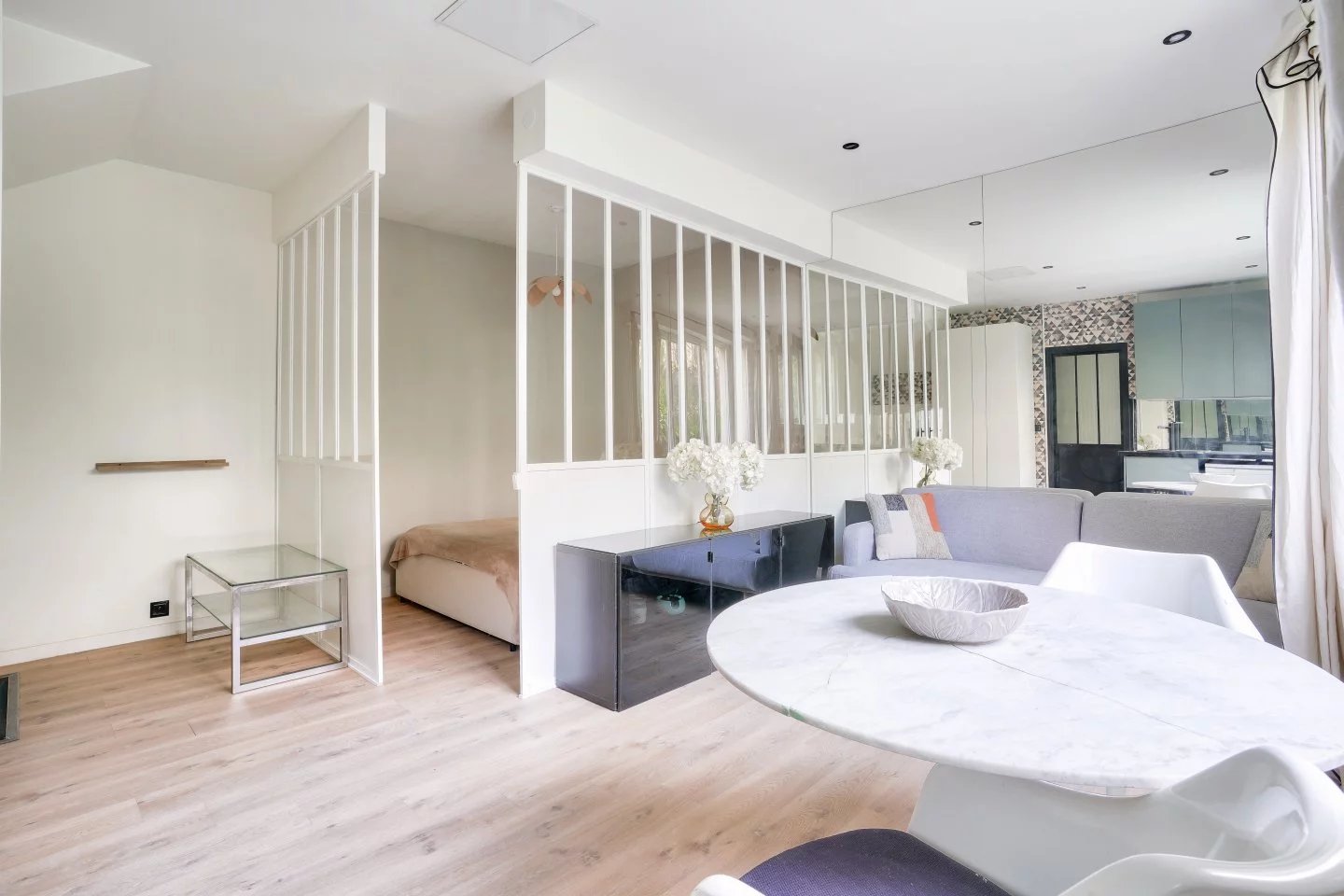 Découvrez ce magnifique studio de 28 m² (avec une pièce supplémentaire au sous sol de 12m2), idéalement situé à Neuilly dans le quartier de Longchamp à 7 min du métro Pont de Neuilly, récemment rénové dans un immeuble pierre de taille sécurisé sur jardin avec gardien.