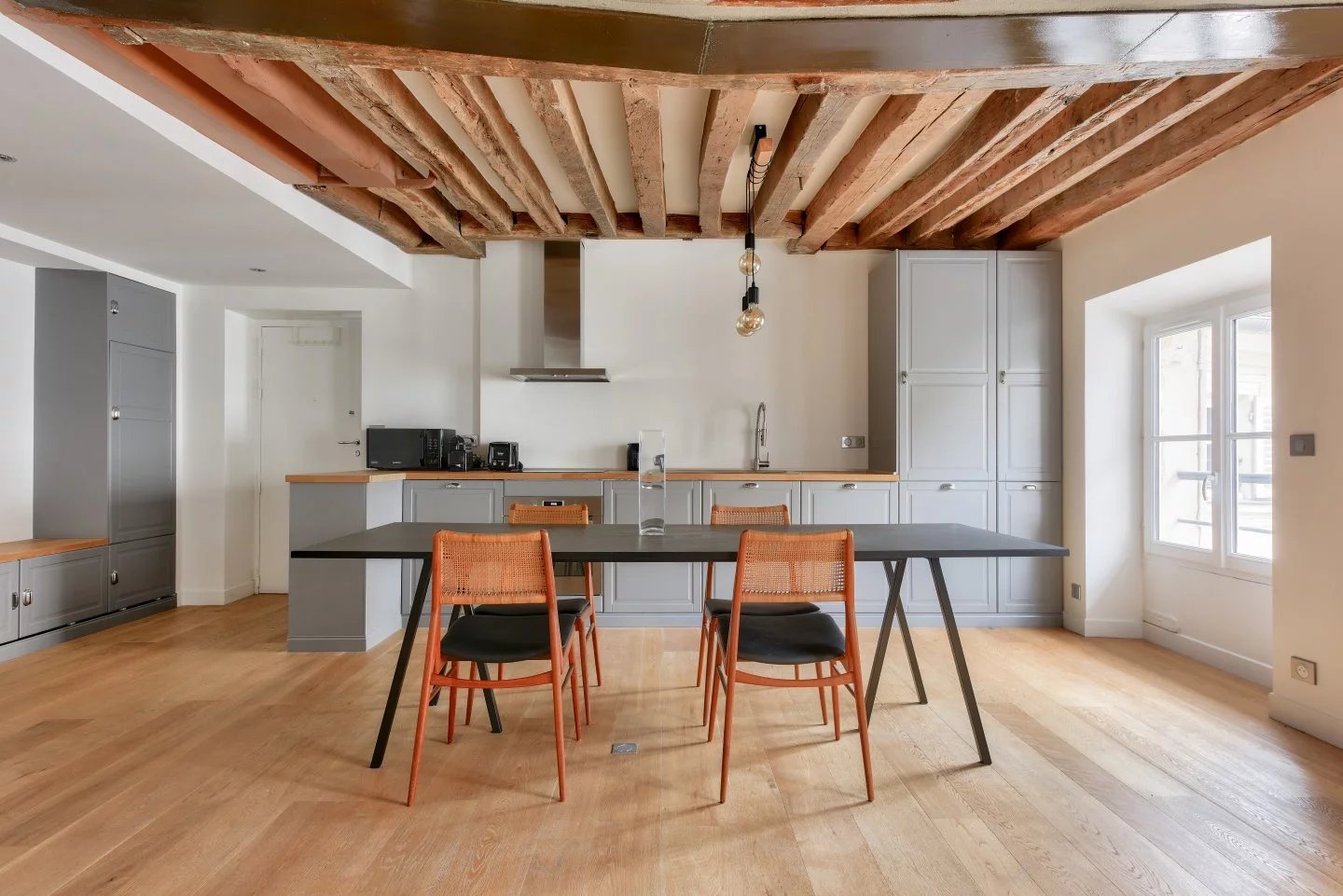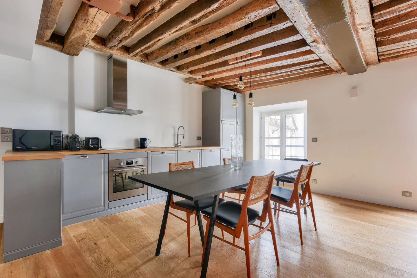 A deux pas de la prestigieuse Place Vendôme, venez découvrir ce superbe appartement meublé de 81m2 situé au 5ème étage d'un bel immeuble ancien offrant de belles parties communes avec ascenseur et gardien. L'appartement se compose comme suit: une entrée, une grande pièce à vivre avec exposition Sud Ouest, dotée de poutres apparentes, comprenant une cuisine ouverte entièrement équipée et un espace dinatoire convivial, une belle chambre avec salle de douche et WC, une seconde salle de douche avec WC, idéale pour les invités. Ce bien rare allie charme de l'ancien et confort moderne.