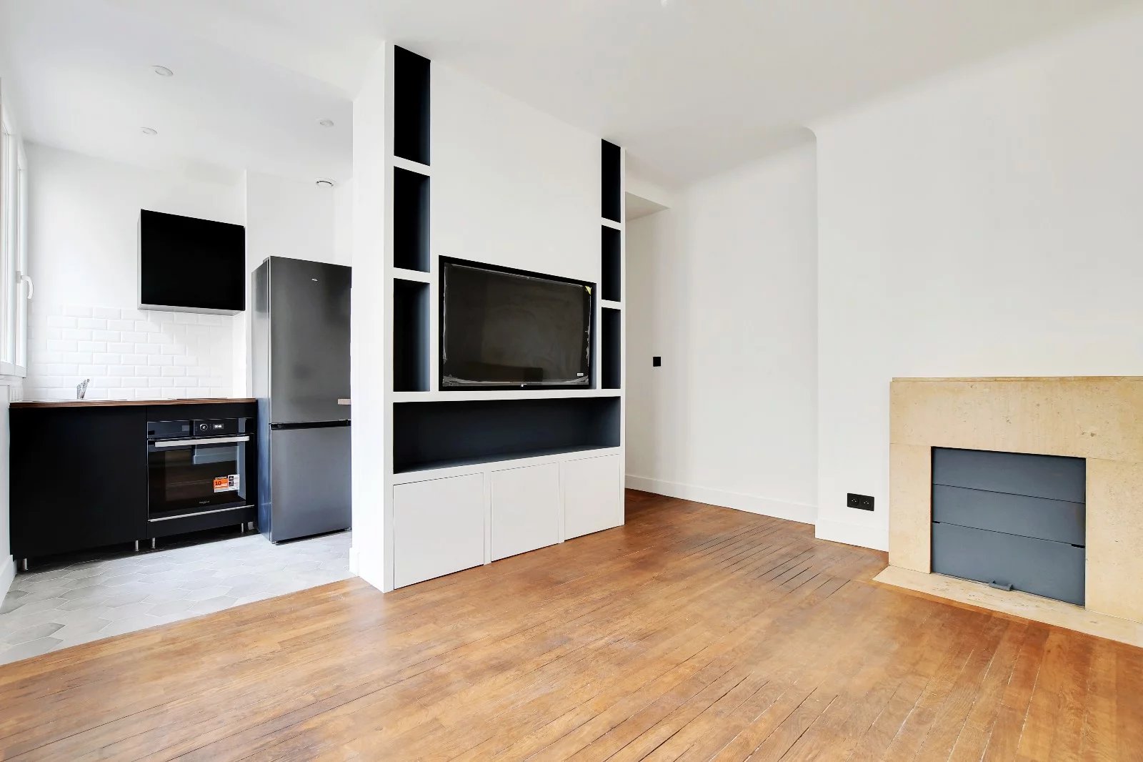 JULES JOFFRIN, Dans un immeuble ancien, appartement 2 pièces de 35,38m2 situé au deuxième étage. L'appartement est optimisé et vient d'être complètement rénové. Il se compose d'une entrée, d'un séjour avec cuisine ouverte équipée, d'une chambre avec dressing, d'une salle d'eau et d'une buanderie. Vendu équipé comme sur les photos: cuisine équipée, télé, sèche-linge, lave-linge.