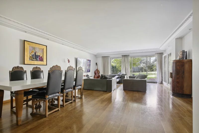REZ DE JARDIN - NEUILLY SABLONS. Nous vous invitons à venir découvrir cet appartement familial de 4 chambres avec jardin et terrasse, au calme, situé à deux pas du Bois de Boulogne. Il se compose d'une entrée, d'une grande cuisine dinatoire ,d'un séjour salle à manger de 55m2 donnant sur un magnifique jardin de 226 m2 ensoleillé et au calme. Pour la partie nuit, une chambre parentale avec salle d'eau et ces toilettes séparés et trois autres chambres avec salle de bains et WC. Proximité immédiate du métro Sablons (ligne 1) et du Bois de Boulogne et de la Fondation Louis Vuitton. Une cave complète ce bien. Possibilité d'acheter deux places de parking en sus.