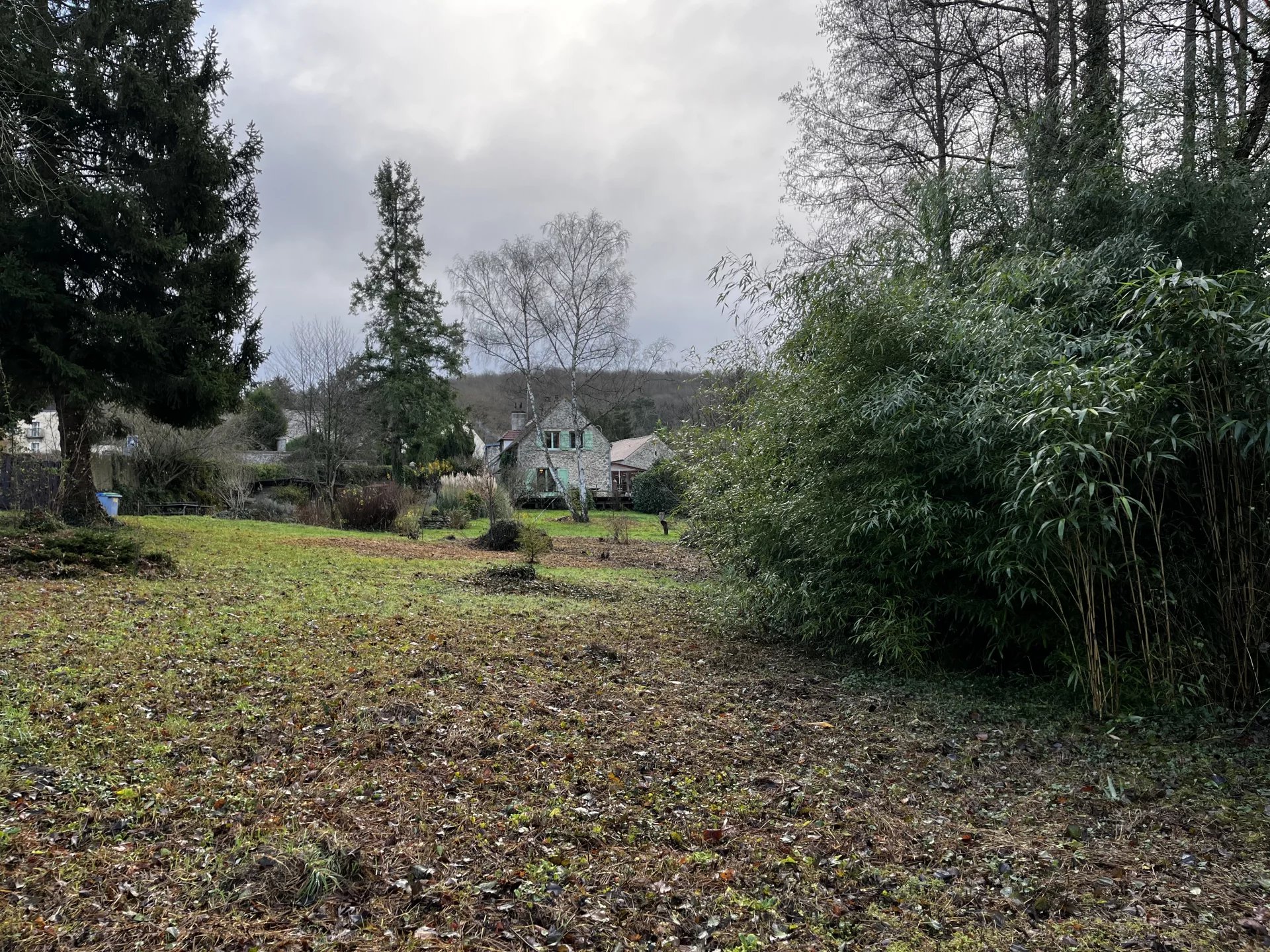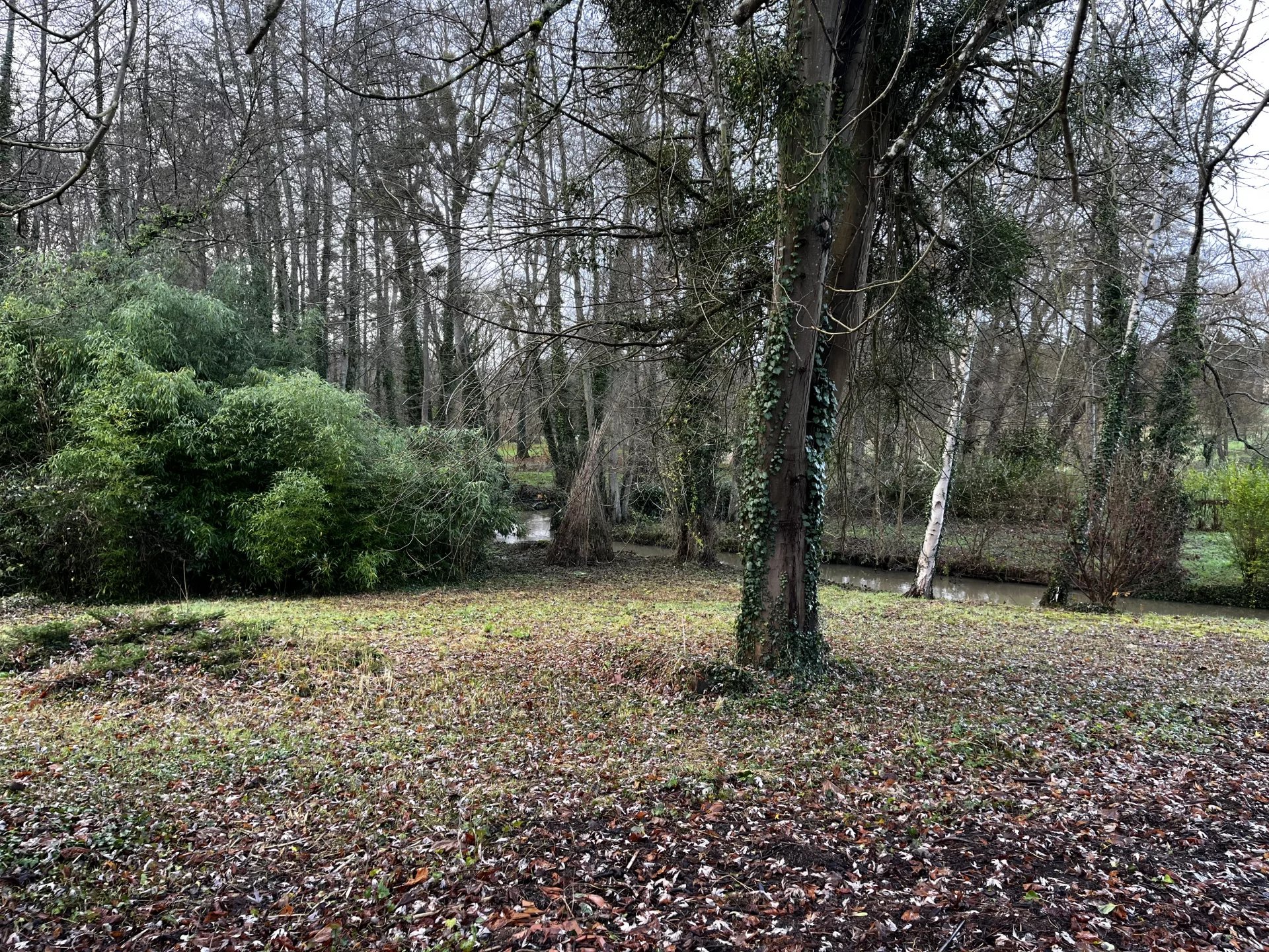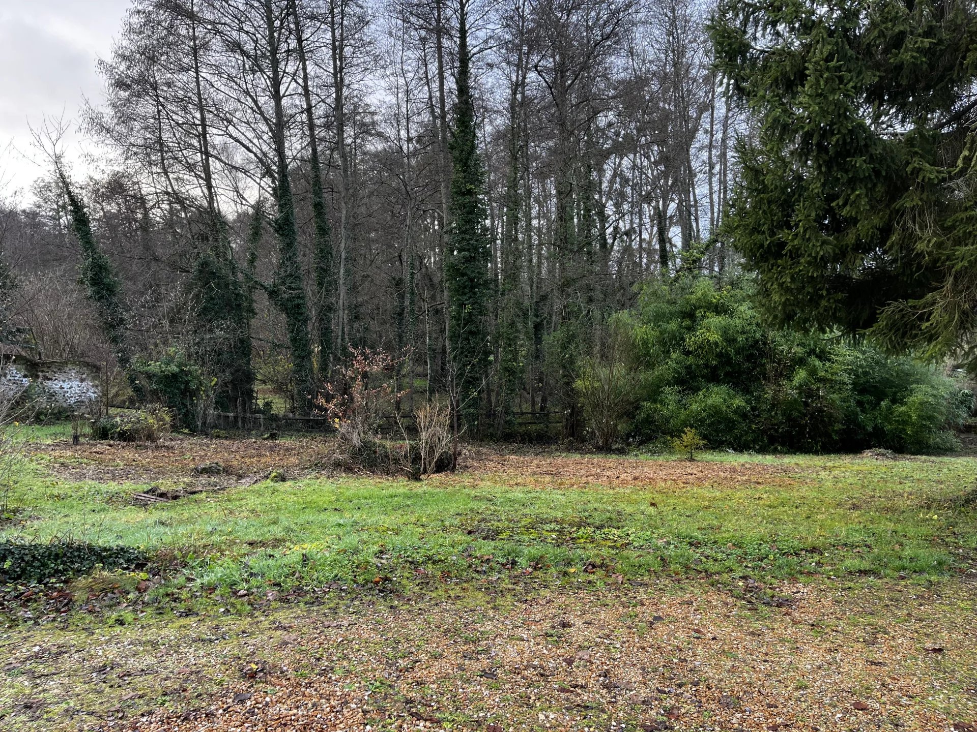 Terrain arboré, exposé sud-ouest avec un accès direct au rû des vaux.
