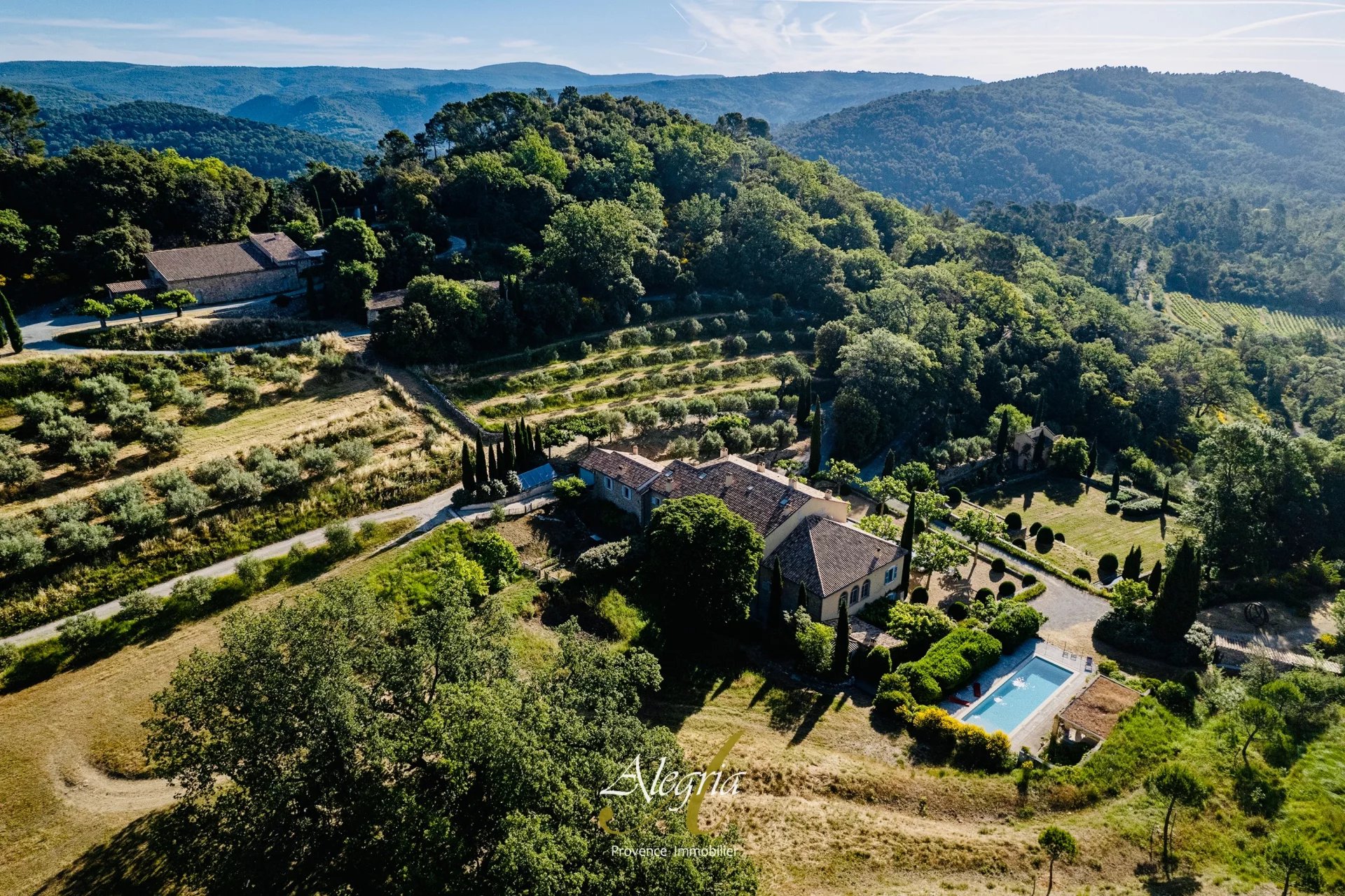 Le domaine comprend également une oliveraie biologique de 10 hectares, plusieurs sources naturelles, un fort potentiel agricole, ainsi que des forages et un raccordement aux réseaux publics.