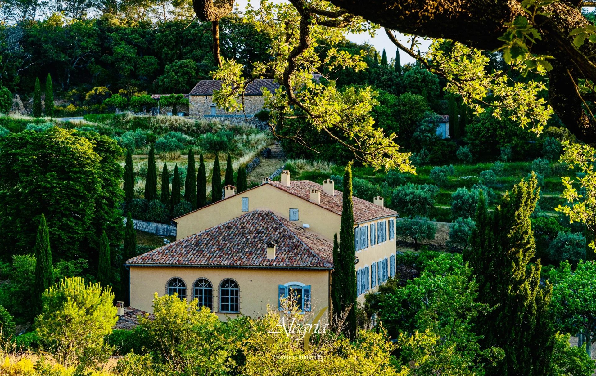Entourée de collines douces, d’oliveraies et de vallons boisés riches en biodiversité, la propriété bénéficie d’une intimité totale, à l’abri de toute nuisance visuelle ou sonore. En son centre se dresse une bastide provençale du XVIIIe siècle, magnifiquement restaurée par un architecte de renom, mariant le raffinement des éléments d’époque à un confort contemporain exigeant. Jardins sculptés, platanes centenaires et terrasses en restanques composent un décor de sérénité maîtrisée.