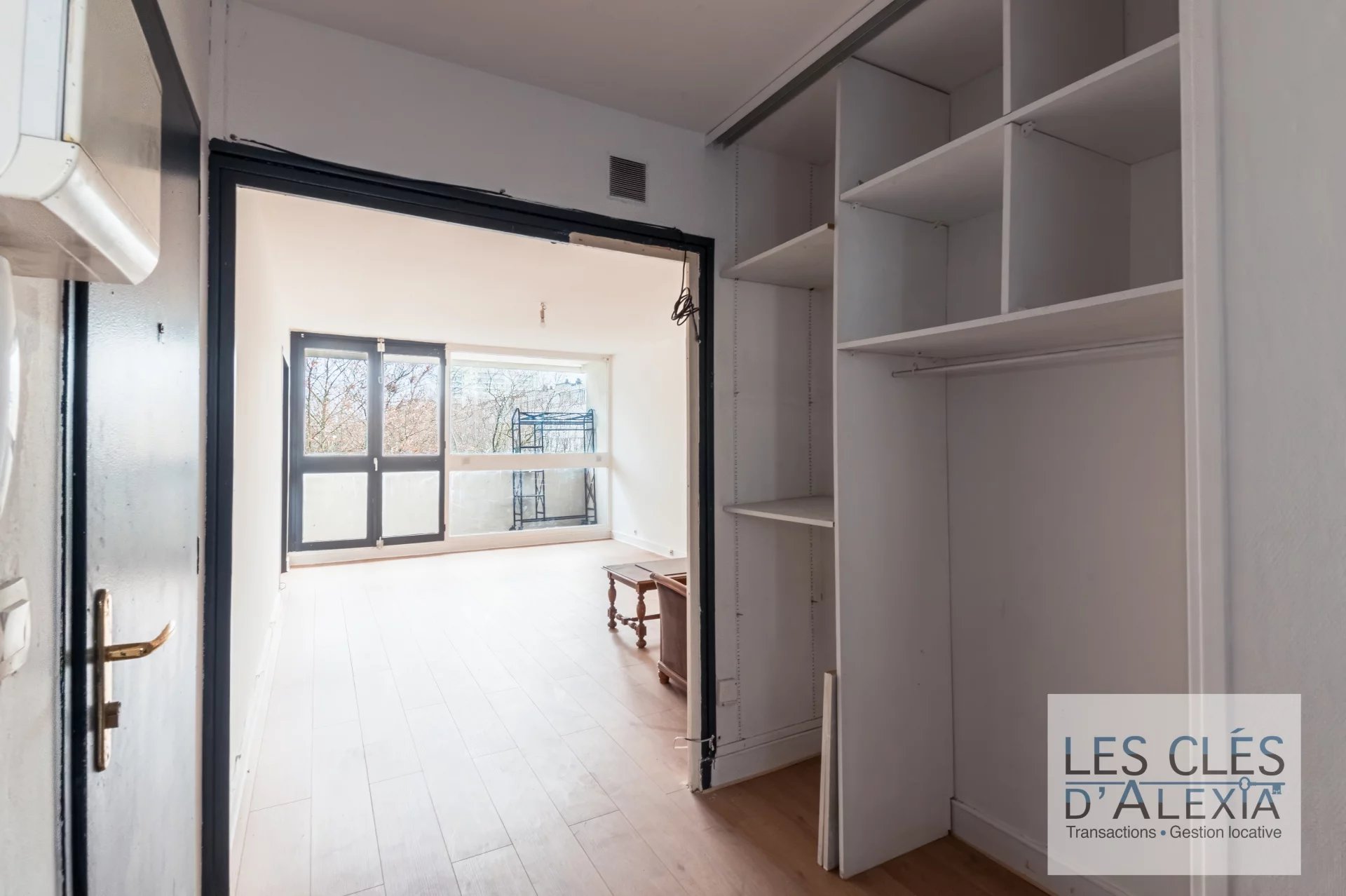 Dès l’entrée, un grand hall équipé d’un placard mène à un séjour lumineux, sans vis-à-vis, orienté à l’ouest, avec accès à un balcon. La cuisine, également lumineuse.