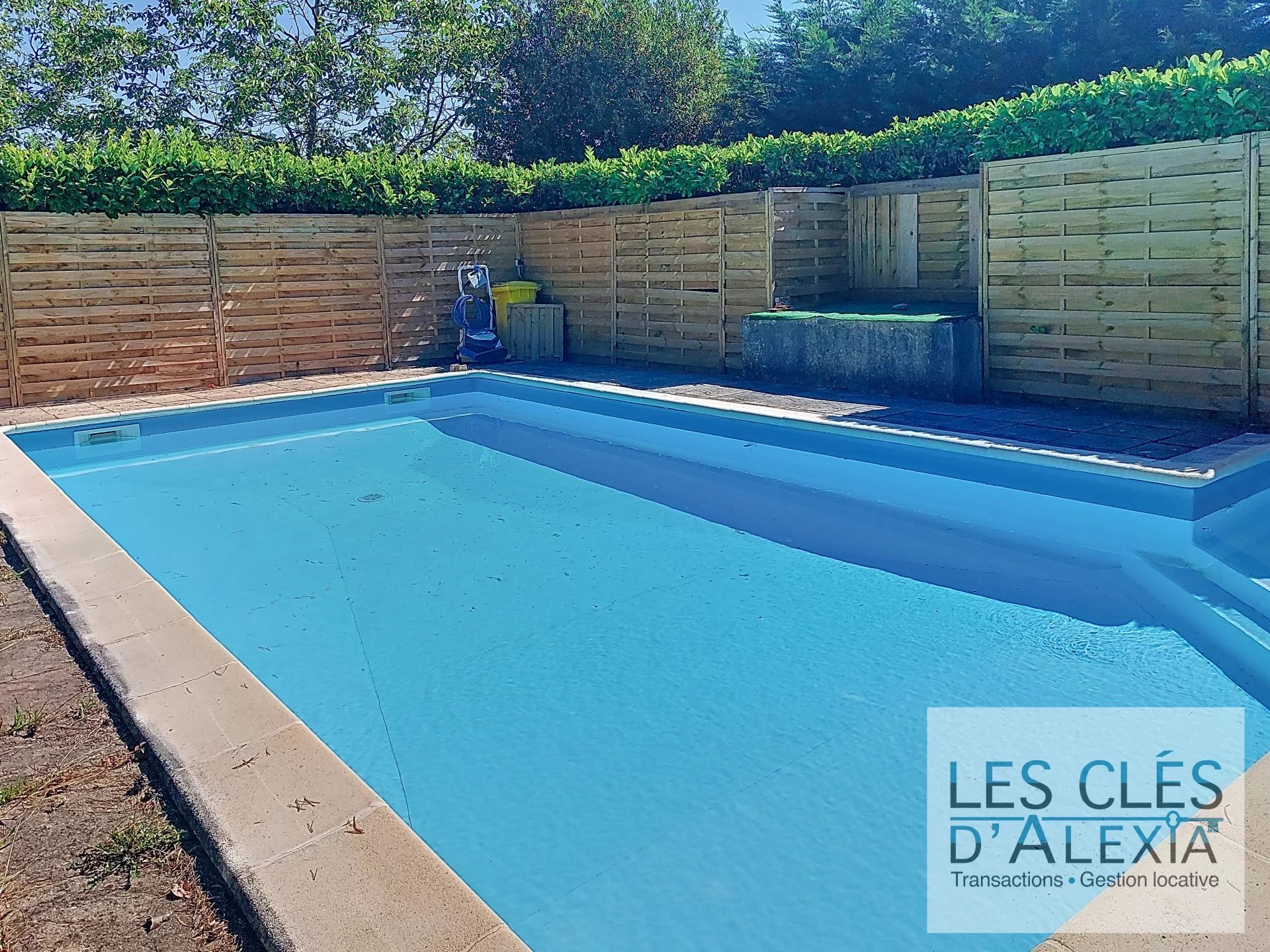 À l’extérieur, les prestations continuent d’impressionner : une piscine, parfaitement intégrée dans l’environnement, invite à la détente dès les beaux jours. Un grand atelier avec son propre coin douche constitue un espace rêvé pour les bricoleurs ou les créatifs. Un spacieux garage permet de stationner plusieurs véhicules ou d’y stocker du matériel en toute sécurité.