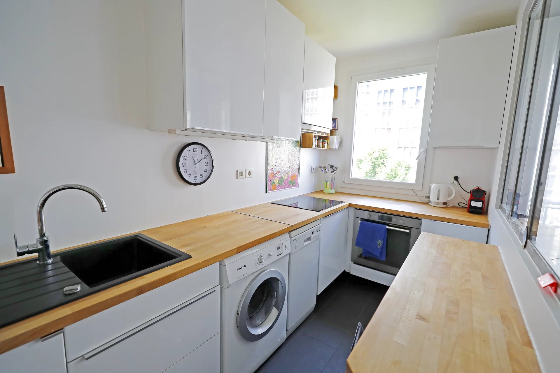 Profitez d'un appartement calme et lumineux avec vue sur un jardin.