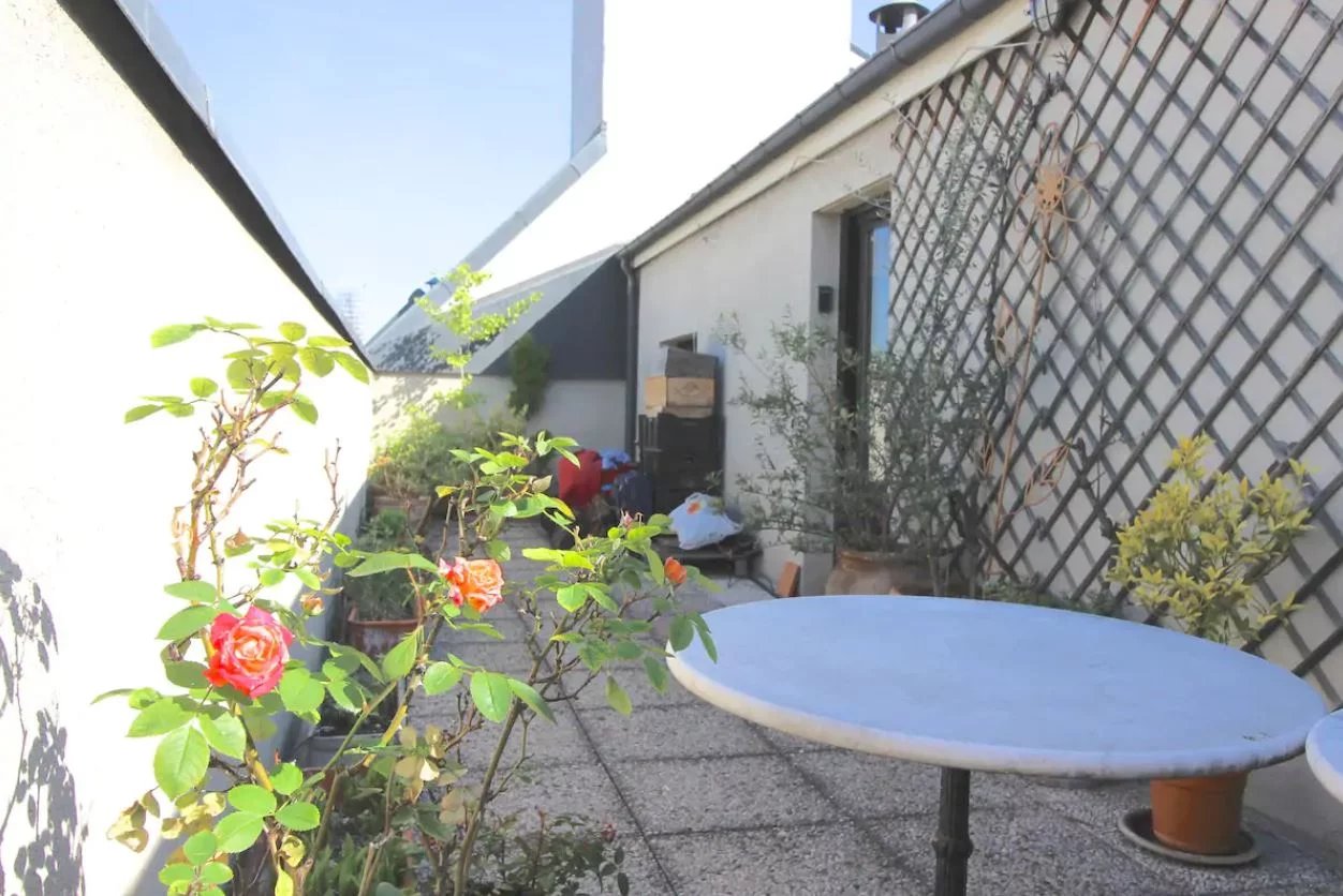La visite révèle un appartement chaleureux et traversant. L’accès se fait par l’étage supérieur. On découvre d’abord un bel espace de vie d’environ 40m², ainsi qu’une cuisine et des WC séparés. Deux portes vitrées donnent sur une grande terrasse exposée Ouest. A l’étage inférieur, au calme, sur cour, deux chambres en enfilade sont suivies d’une salle de bain.