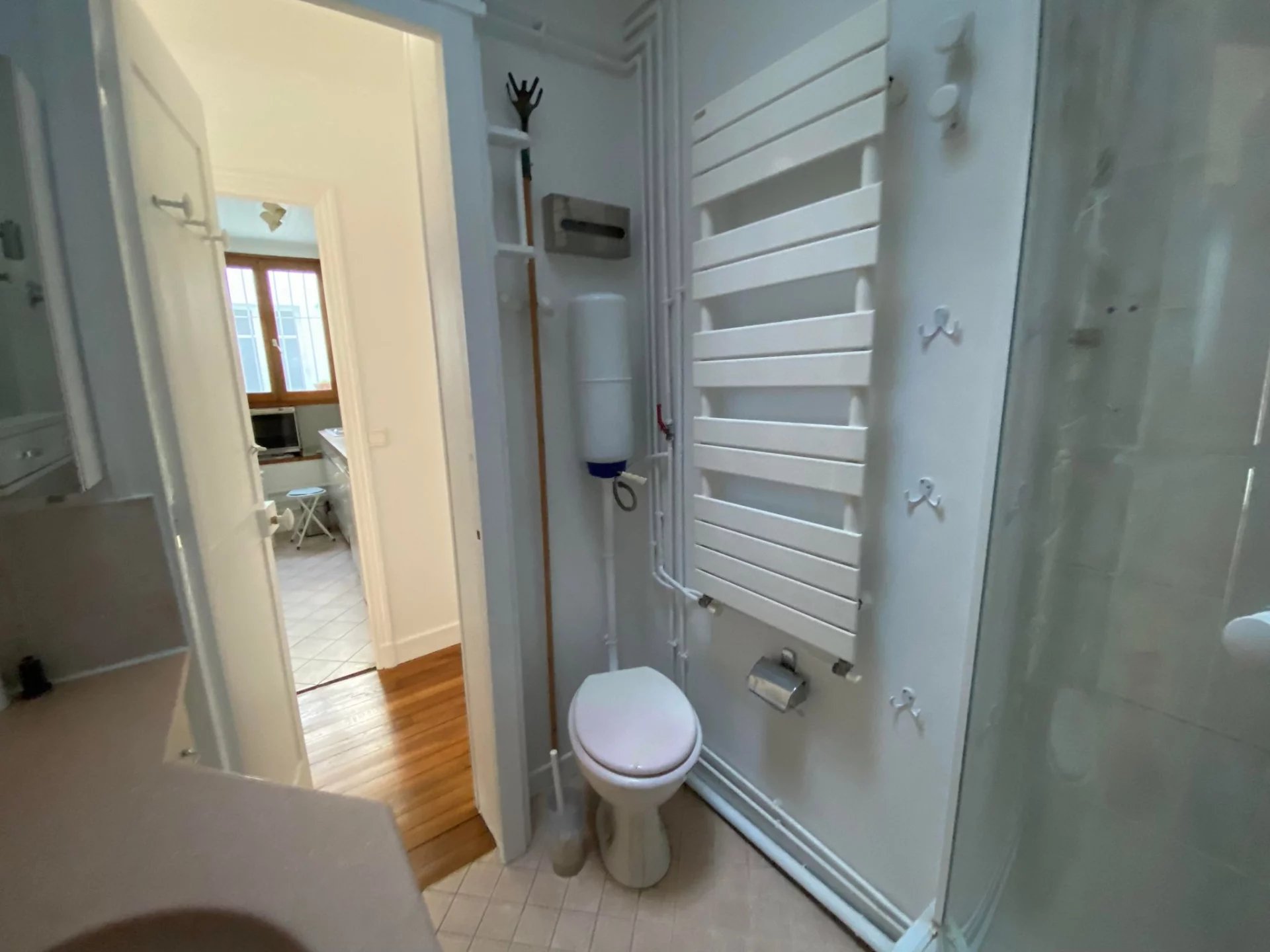 La visite révèle un grand séjour, une cuisine équipée, une chambre avec deux expositions, une salle d’eau avec WC et de nombreux rangements.