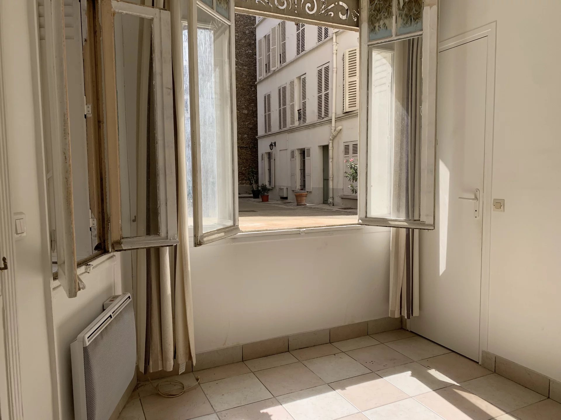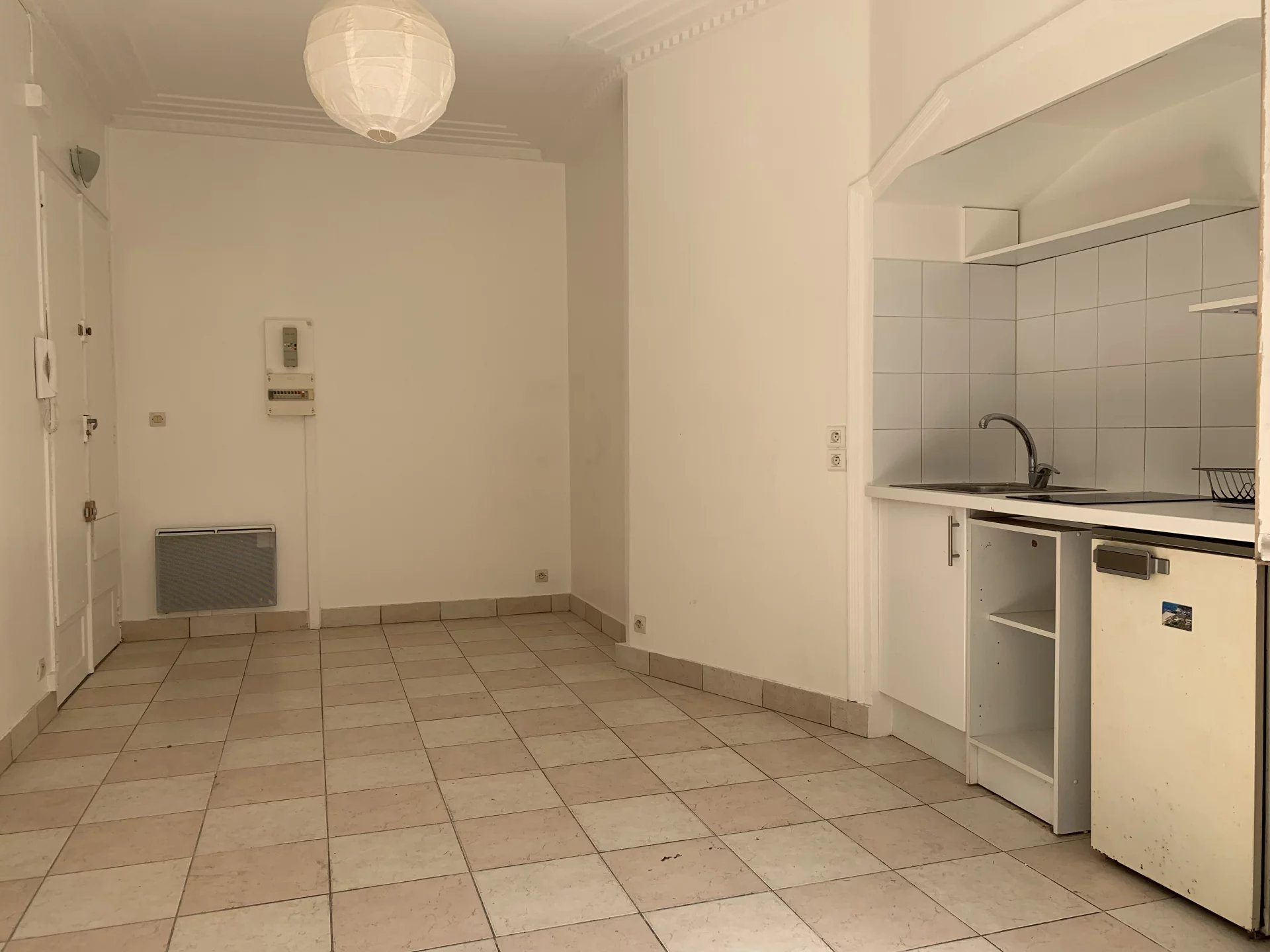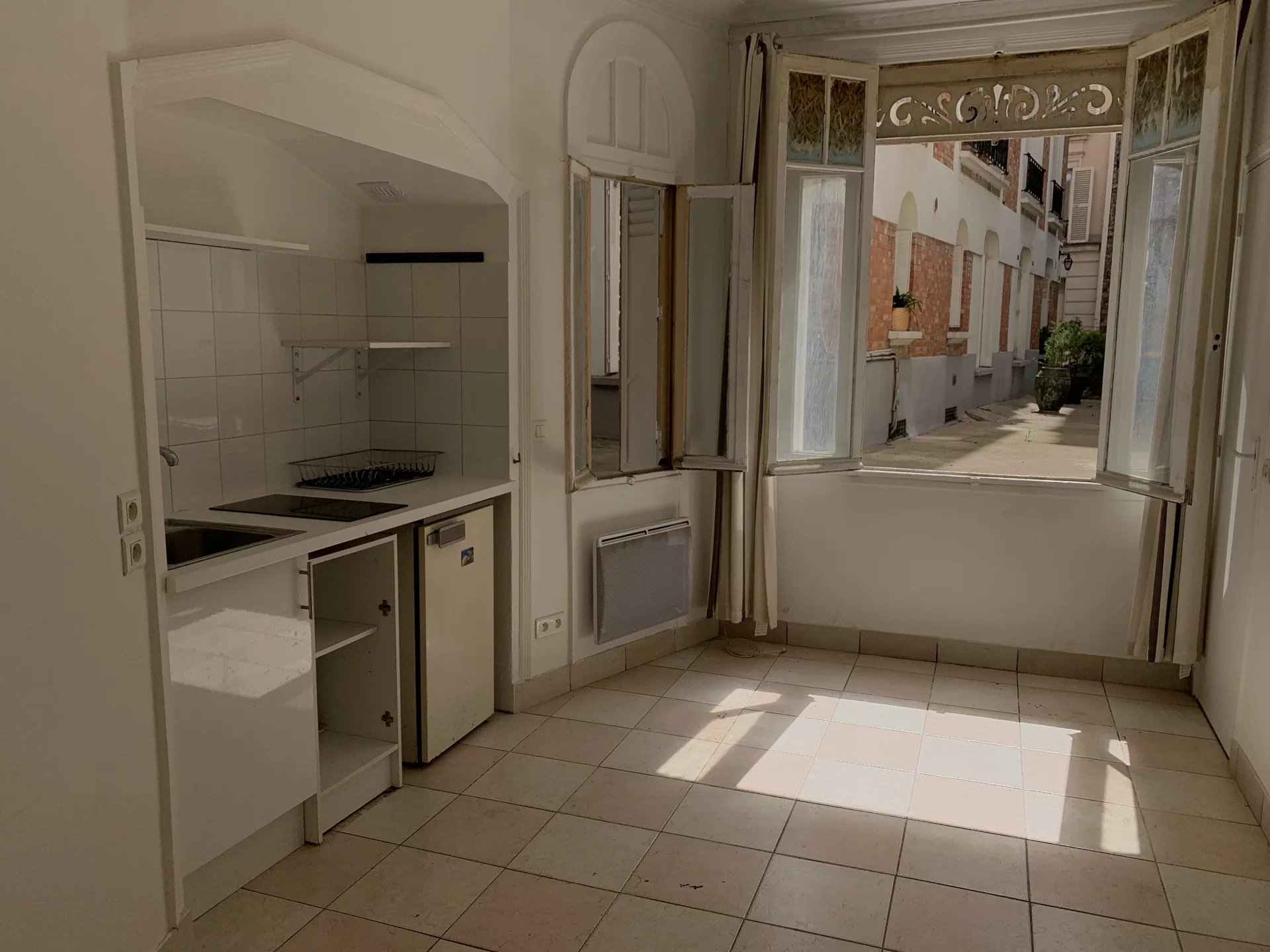 Le studio révèle un beau volume et dispose d'un coin cuisine et d'une salle de douche compacte avec WC. La pièce à vivre est exposée Sud-Ouest et jouit de grandes fenêtres sur une cour spacieuse et bien entretenue.