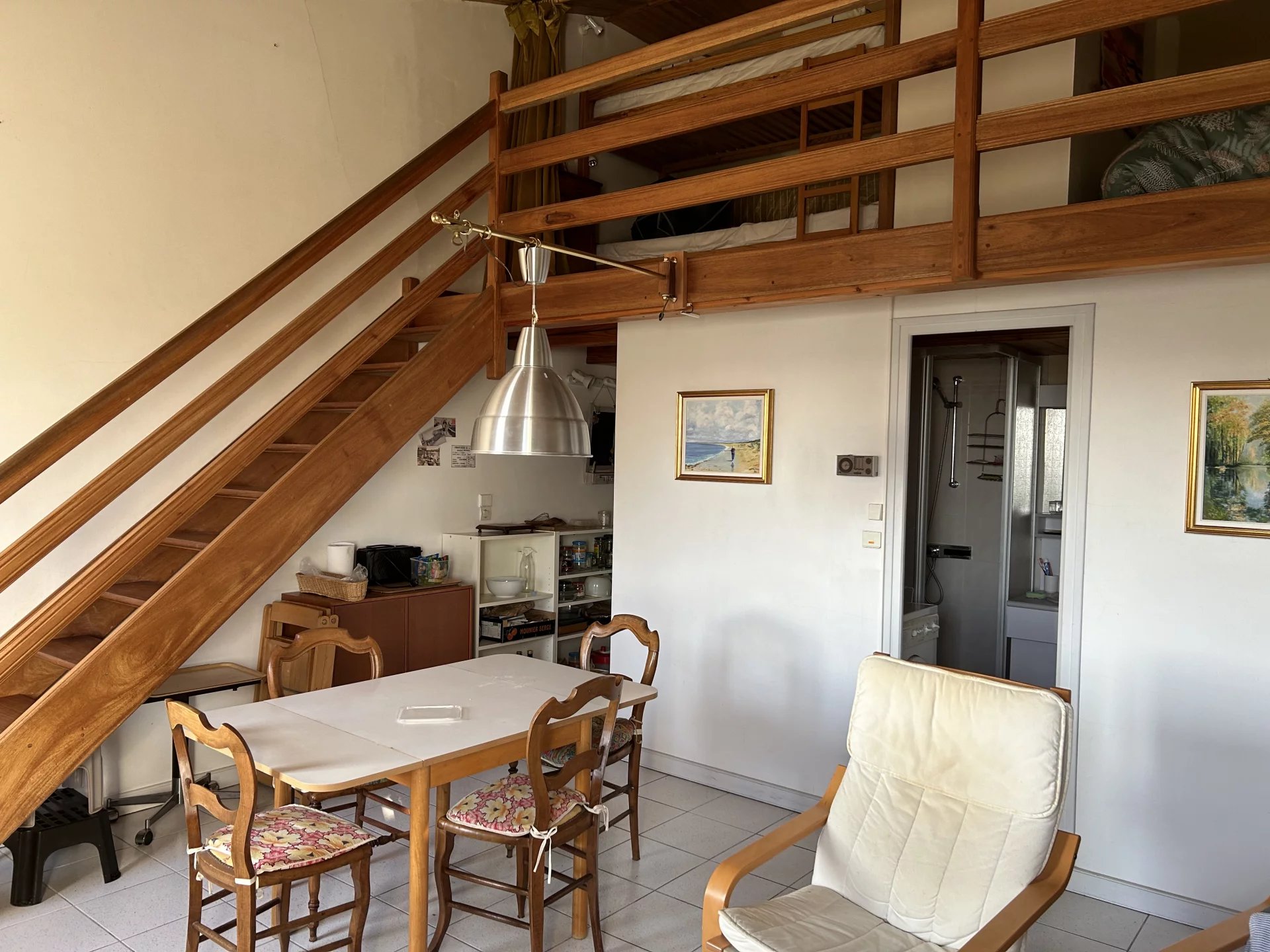 Dans une résidence sécurisée intra muros, à deux pas de toutes commodités, au calme situé au deuxième étage un appartement comprenant une entrée, un wc, une salle d'au, une pièce de vie avec kitchenette exposée Est, une mezzanine. Un garage fermé en sous sol. Nombre de lots : 166
