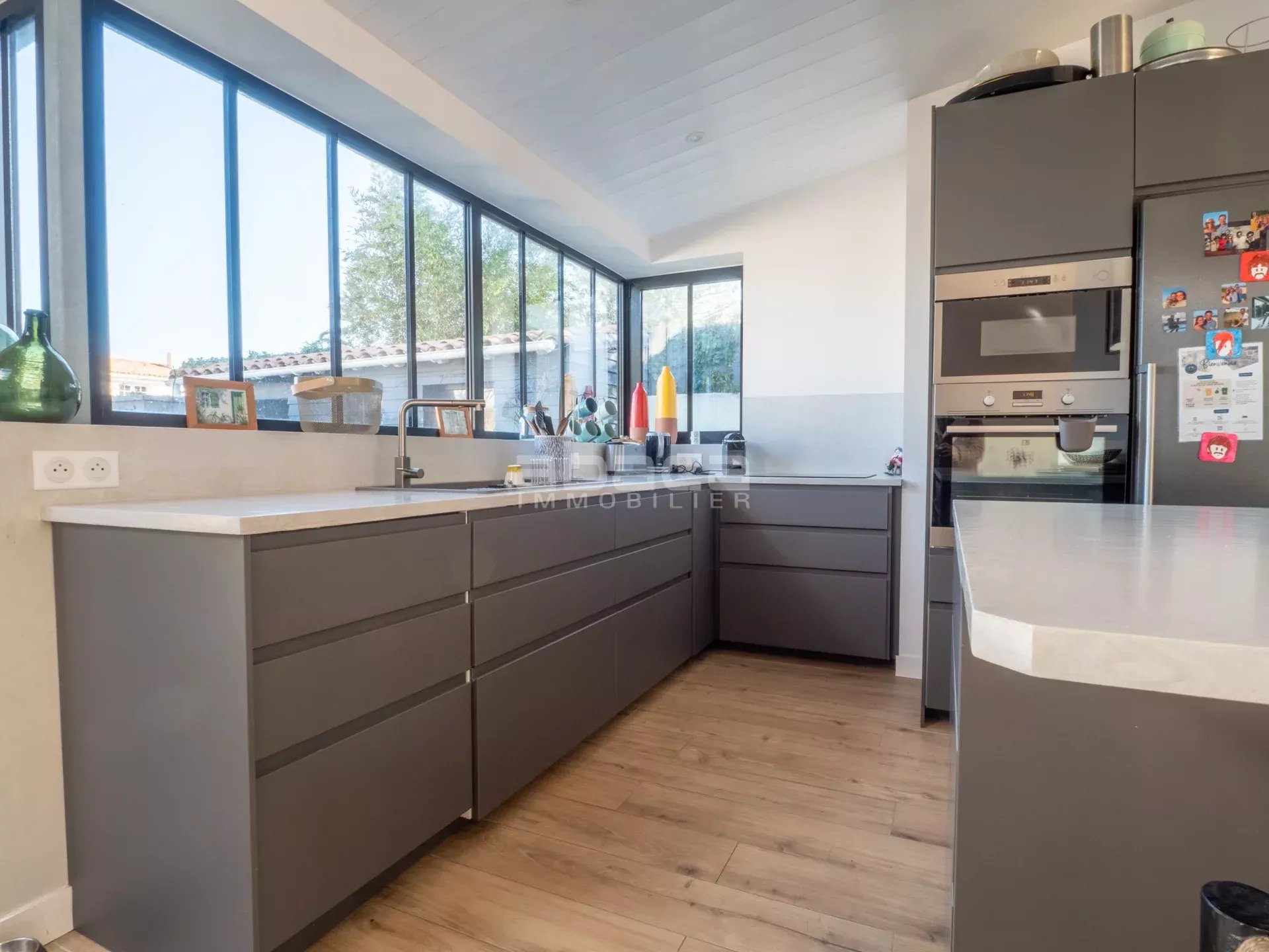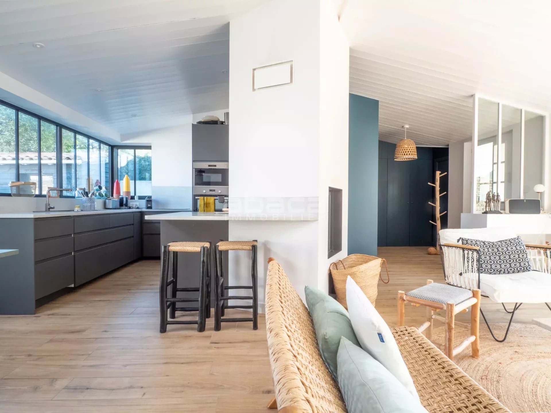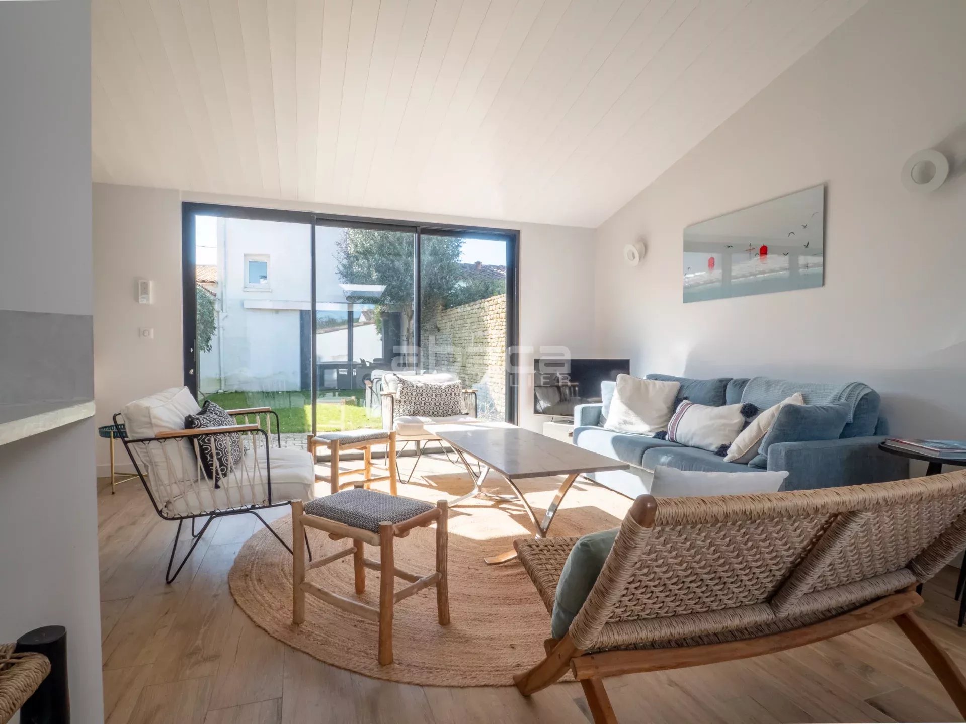 Proximité plages et commerces, belle maison rénovée d'environ 130 m². Elle se compose d'une entrée, pièce de vie lumineuse avec cheminée et cuisine ouverte, 2 chambres et 2 salles d'eau/bains. En annexe: 3 chambres et une salle d'eau. Cuisine d'été, buanderie, garage à vélos. Jardin paysager et terrasses Les informations sur les risques auxquels ce bien est exposé sont disponibles sur le site Géorisques : www.georisques.gouv.fr