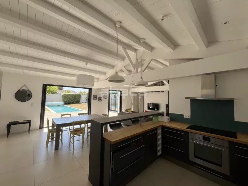 Découvrez cette magnifique maison d'une surface de 120 m² sur un terrain de plus de 400 m². Ce bien d'exception, construit en 2014, se trouve en excellent état et offre un grand standing. Il comprend 4 pièces, dont 3 chambres et 3 salles d'eau/wc. La cuisine américaine aménagée et équipée s'ouvre sur un spacieux séjour de 53 m² exposé sud-ouest, idéal pour profiter de la lumière naturelle. Avec un système de chauffage au sol pour maitriser la température de chaque pièces, garantissant un confort optimal. Vous apprécierez également le calme de ce quartier.