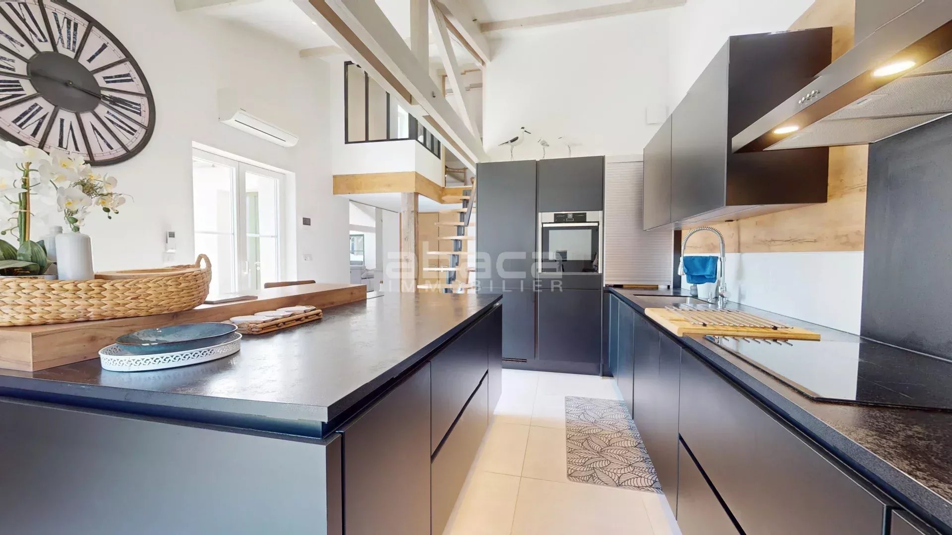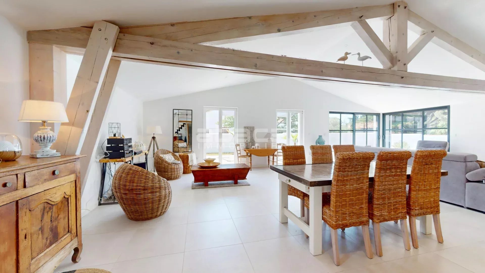 Découvrez cette magnifique maison à vendre, située à Sainte-Marie-de-Ré, de 199 m² habitable sur un terrain de 2400 m². Maison à usage d'habitation surélevé se composant comme suit : Au rez-de-chaussée : un vaste séjour, une cuisine aménagée et entièrement équipée, un WC indépendant, ainsi qu'une suite parentale avec dressing et salle de bains. A l'étage : une chambre mansardée disposant de sa propre salle d'eau. A un demi niveau inférieur : une troisième chambre avec mezzanine, salle d'eau et WC, ainsi qu'une quatrième chambre avec placard, salle d'eau et WC. Au sous-sol : une grande salle de jeux, un garage, un atelier et une buanderie.