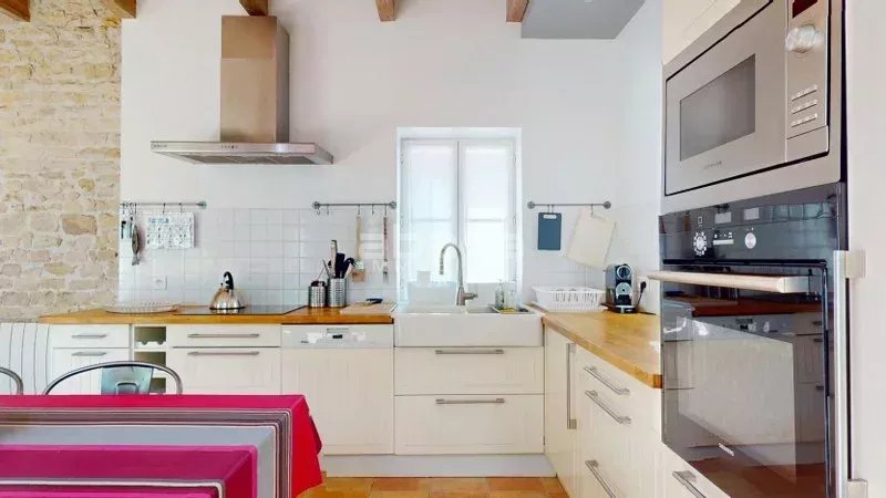 Découvrez cette charmante maison à vendre, Maison d'habitation de 86 m² composée : Au rez de chaussée d'une pièce de vie avec une cuisine équipée, des toilettes indépendants, une cour clos de murs dont l'accès s'effectue par une baie vitrée ou une porte donnant sur une venelle, un garage à vélos. Un escalier dessert à l'étage une salle de bain avec toilettes et trois chambres dont une avec salle d'eau