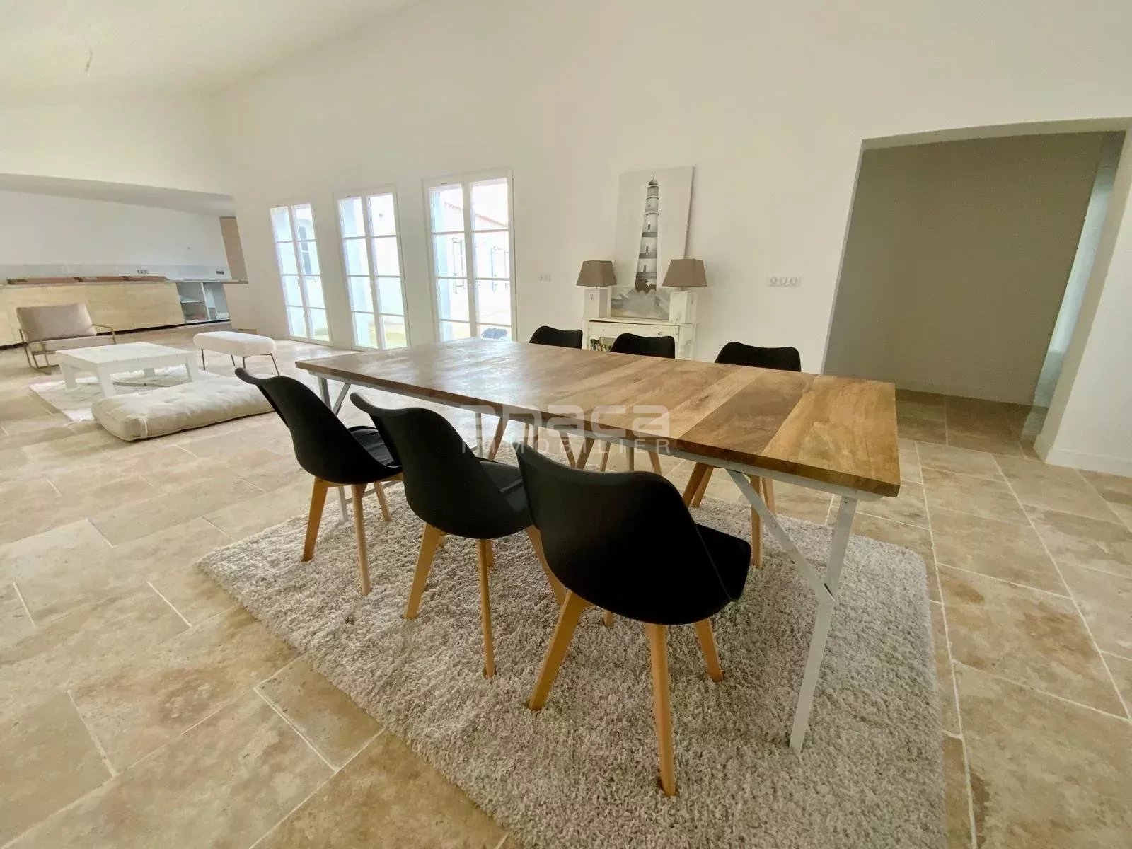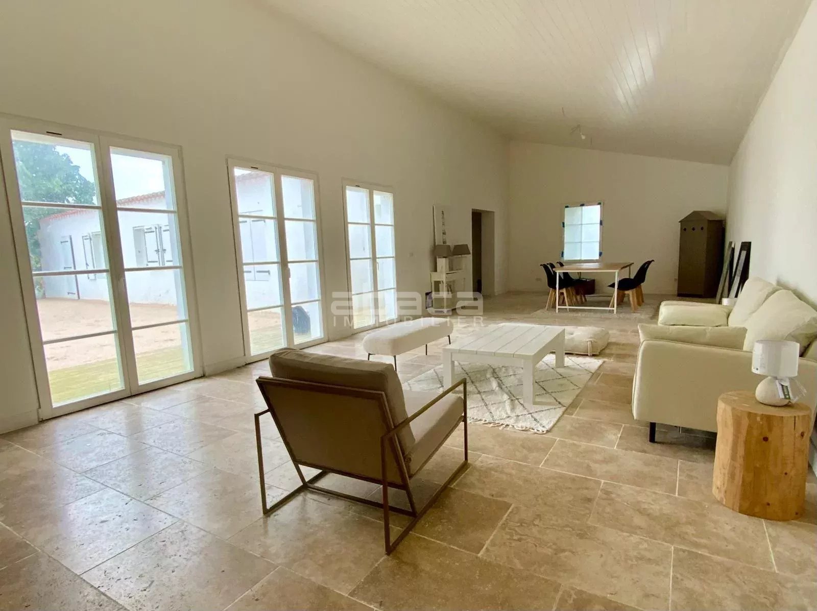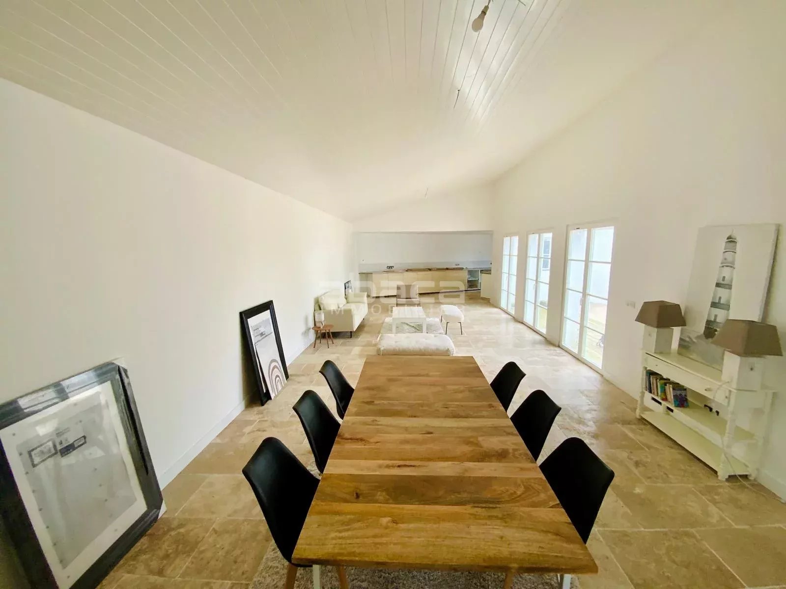 Entre plage et forêt - Maison de plain pied entièrement rénovée, offrant 164 m² habitables, vaste réception de près de 70m² ouverte sur cuisine aménagée, 4 chambres spacieuses, 3 salles d'eau/bains, lingerie, cellier. L'ensemble est entièrement ouvert sur un jardin avec terrasse, stationnement sur la parcelle. C'est un bien à découvrir avec l'agence Abaca des Portes en Ré.
