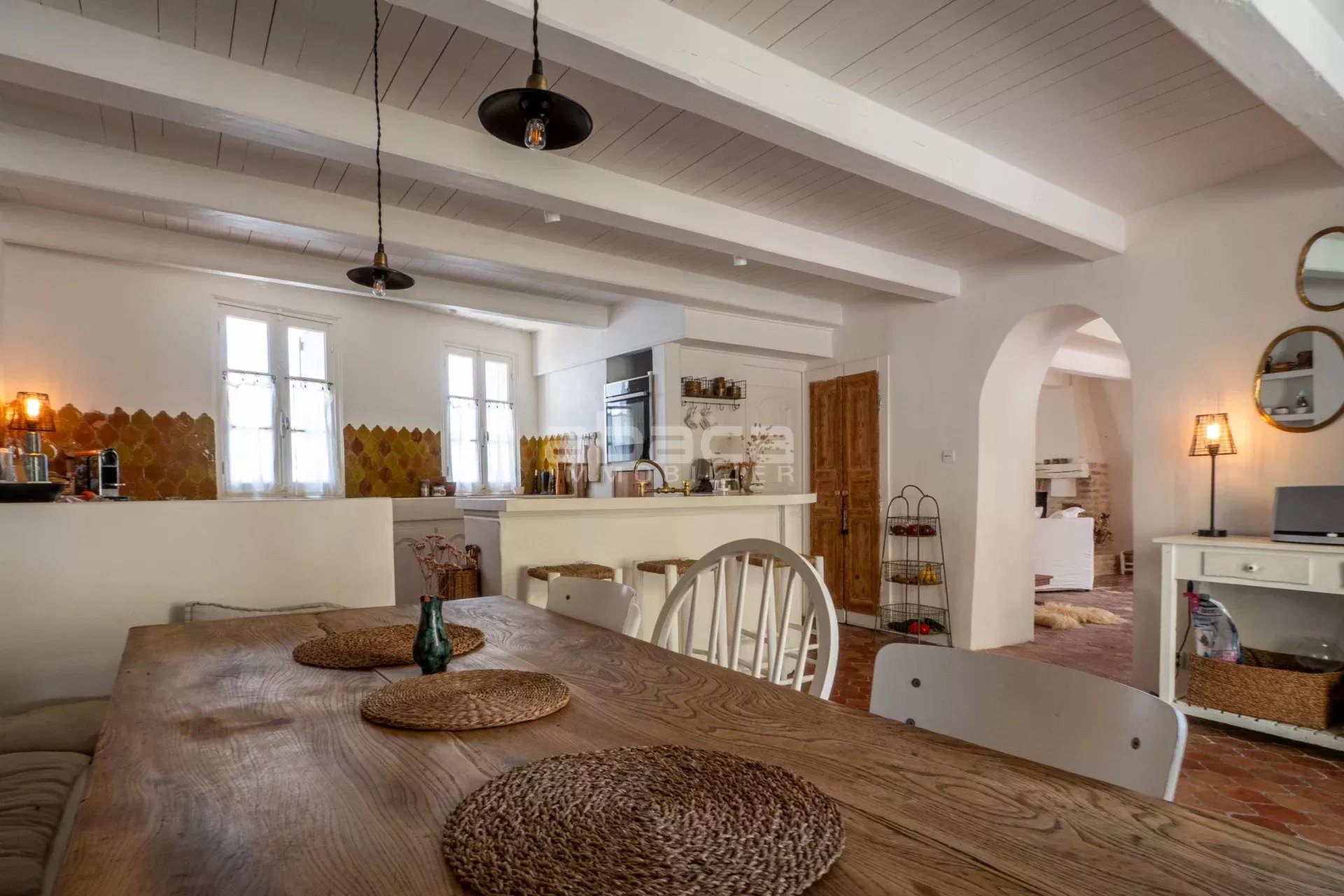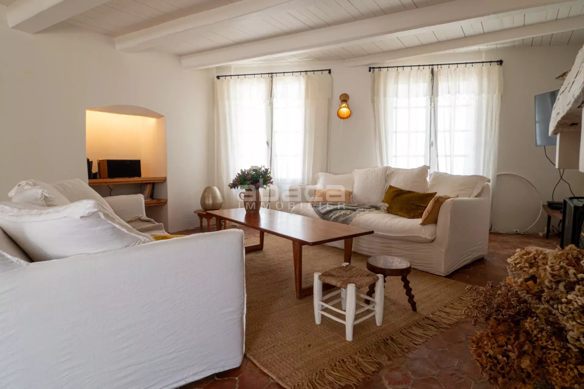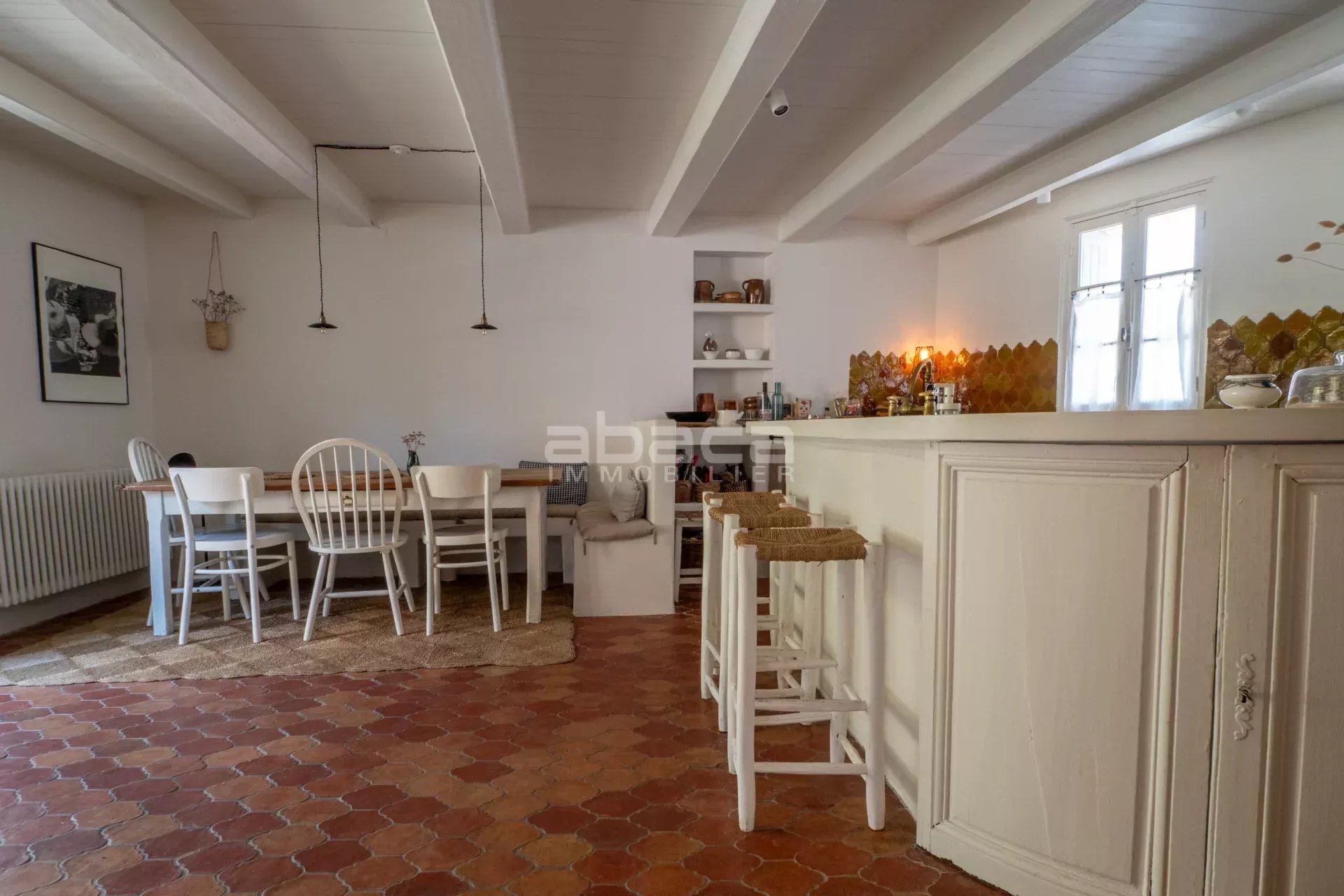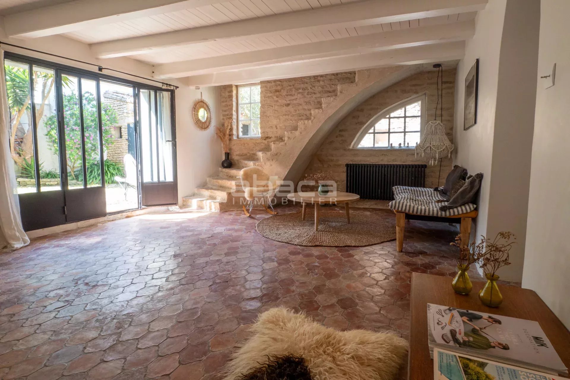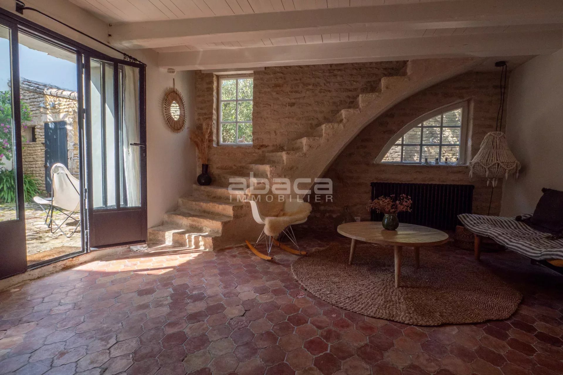 Au coeur du village, à quelques pas du marché, jolie maison de village traditionnelle élevée sur deux niveaux et comprenant : entrée, séjour avec cheminée, cuisine équipée et aménagée ouverte sur salle à manger. A l'étage, grand palier, suite parentale avec salle d'eau et toilettes, 2 chambres, salle d'eau et toilettes. La maison est entièrement ouverte sur une magnifique cour arborée, fermée de murs en pierre, l'ambiance est unique et confère au lieu tous les atouts d'une parfaite maison de vacances. C'est un bien rare à découvrir avec l'agence Abaca des Portes en Ré