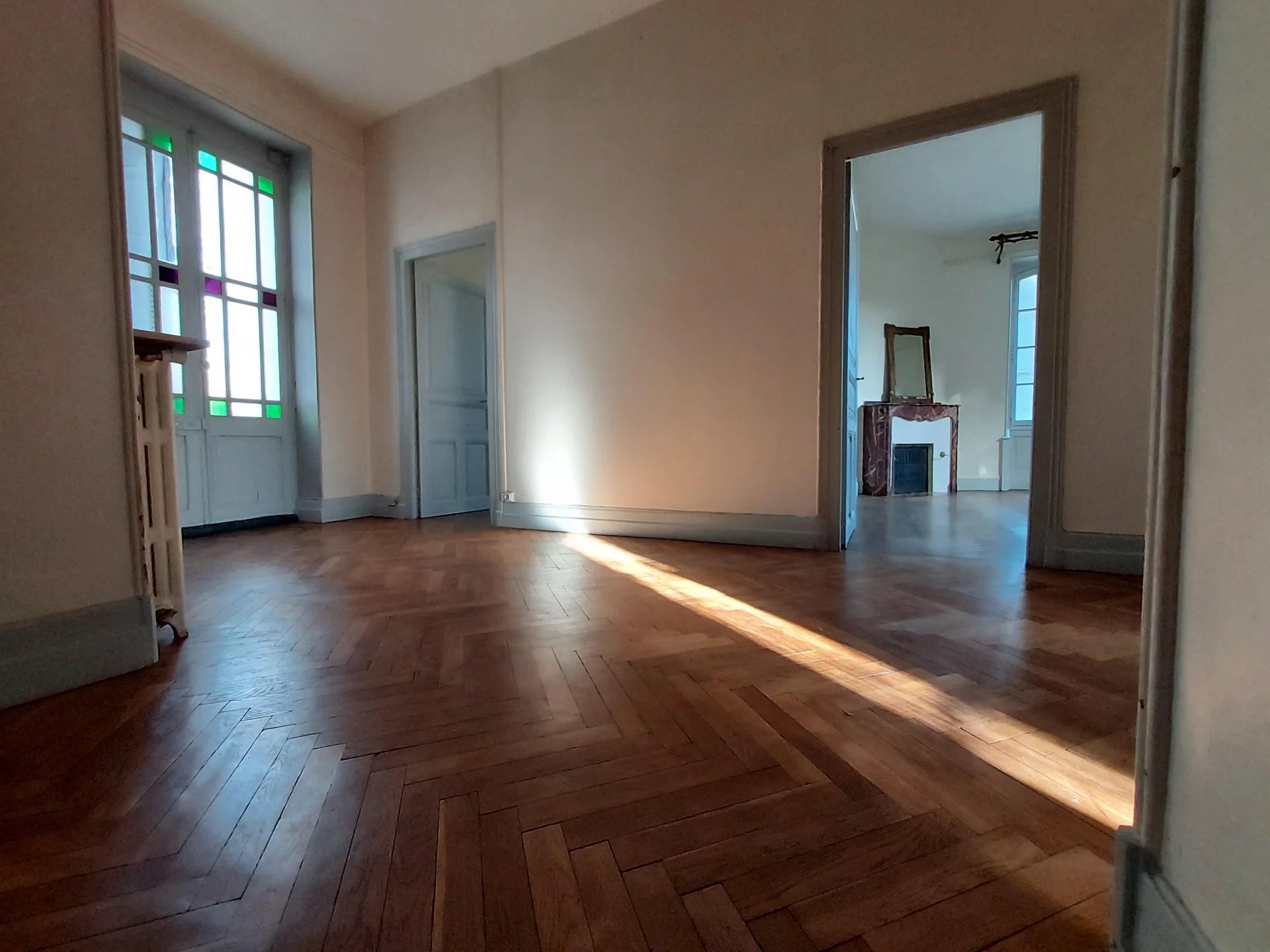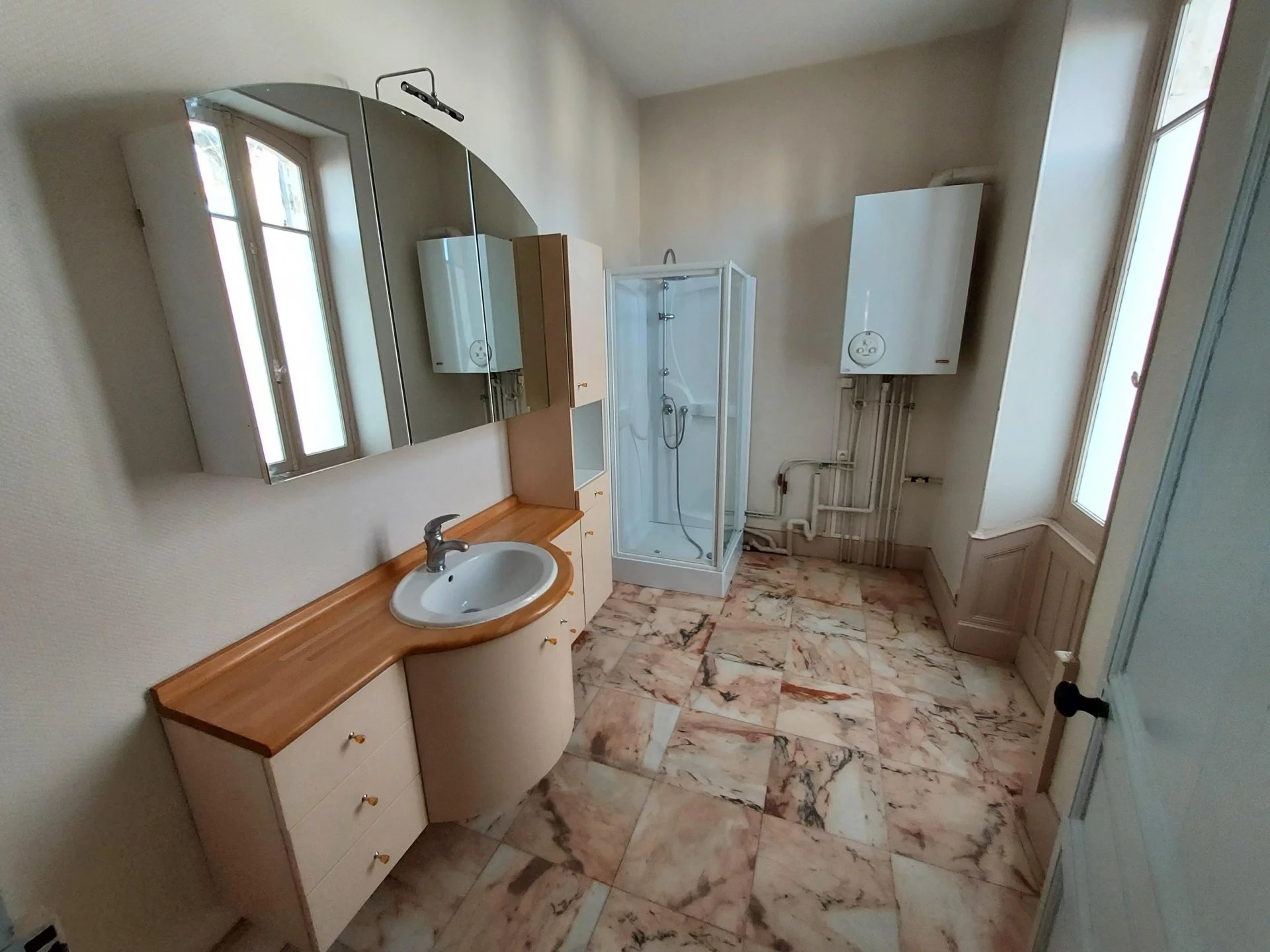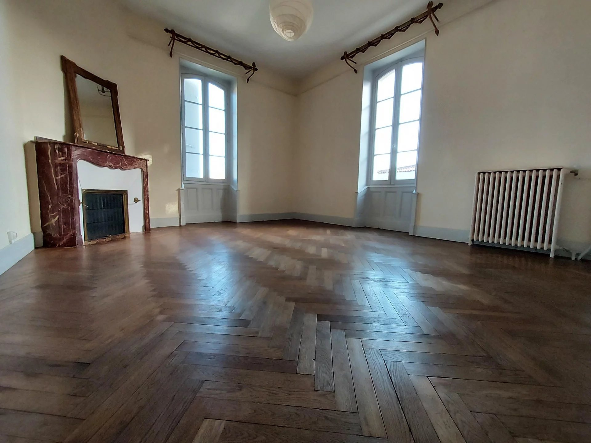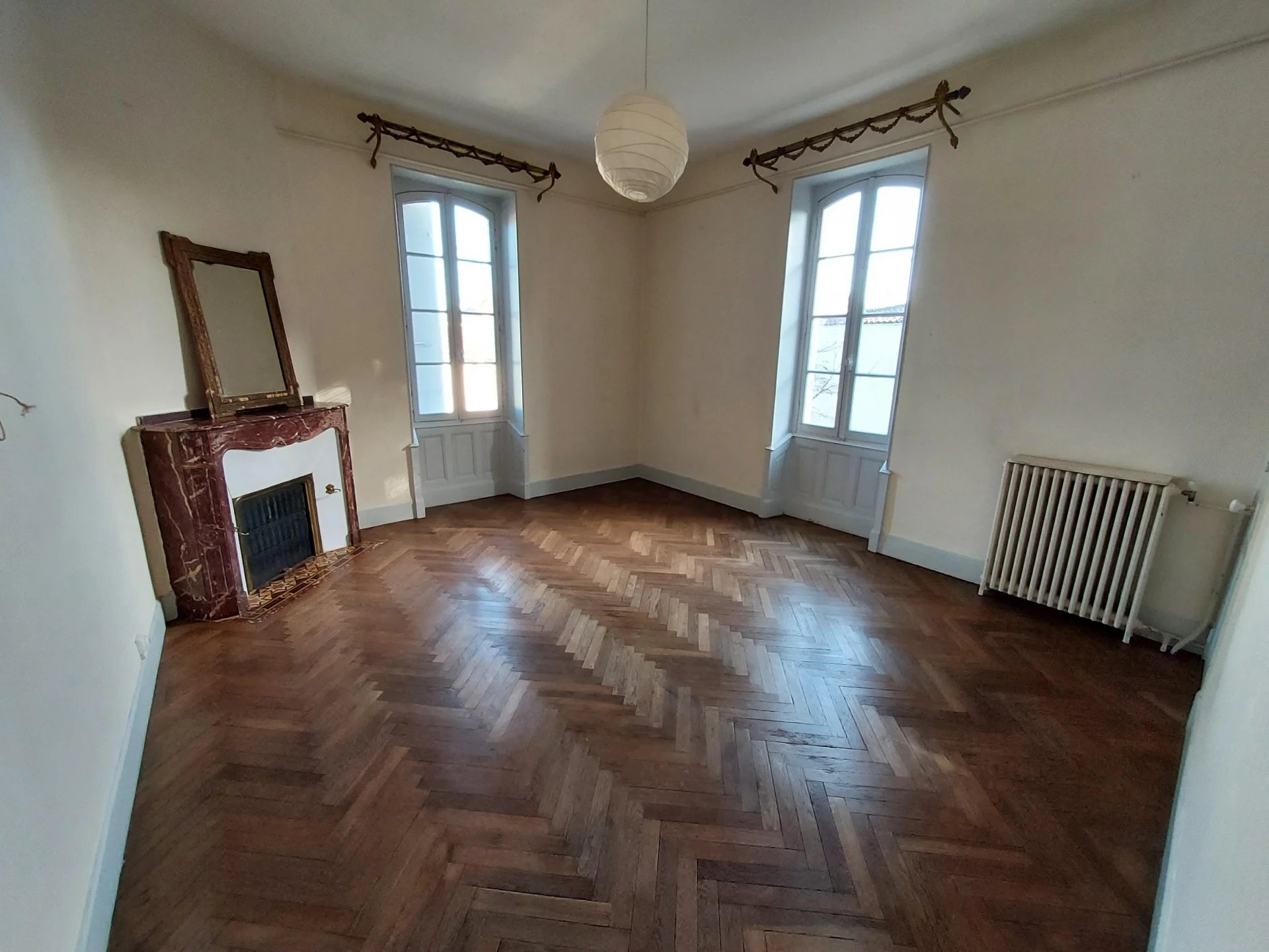 AUCH - Centre Basse Ville Maison de caractère en pierre de Type 6 Belle entrée, salon-séjour, cuisine-coin repas, salle d'eau, wc; A l'étage : un palier desservant 3 chambres, un bureau, une salle de bains. Jardin avec charmante serre Cave Chauffage central au gaz Beaux éléments anciens ( planchers anciens, cheminées...)