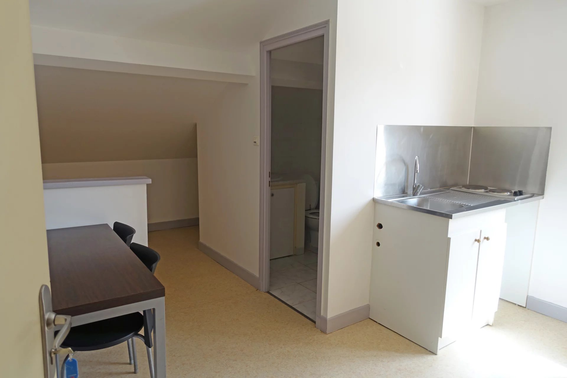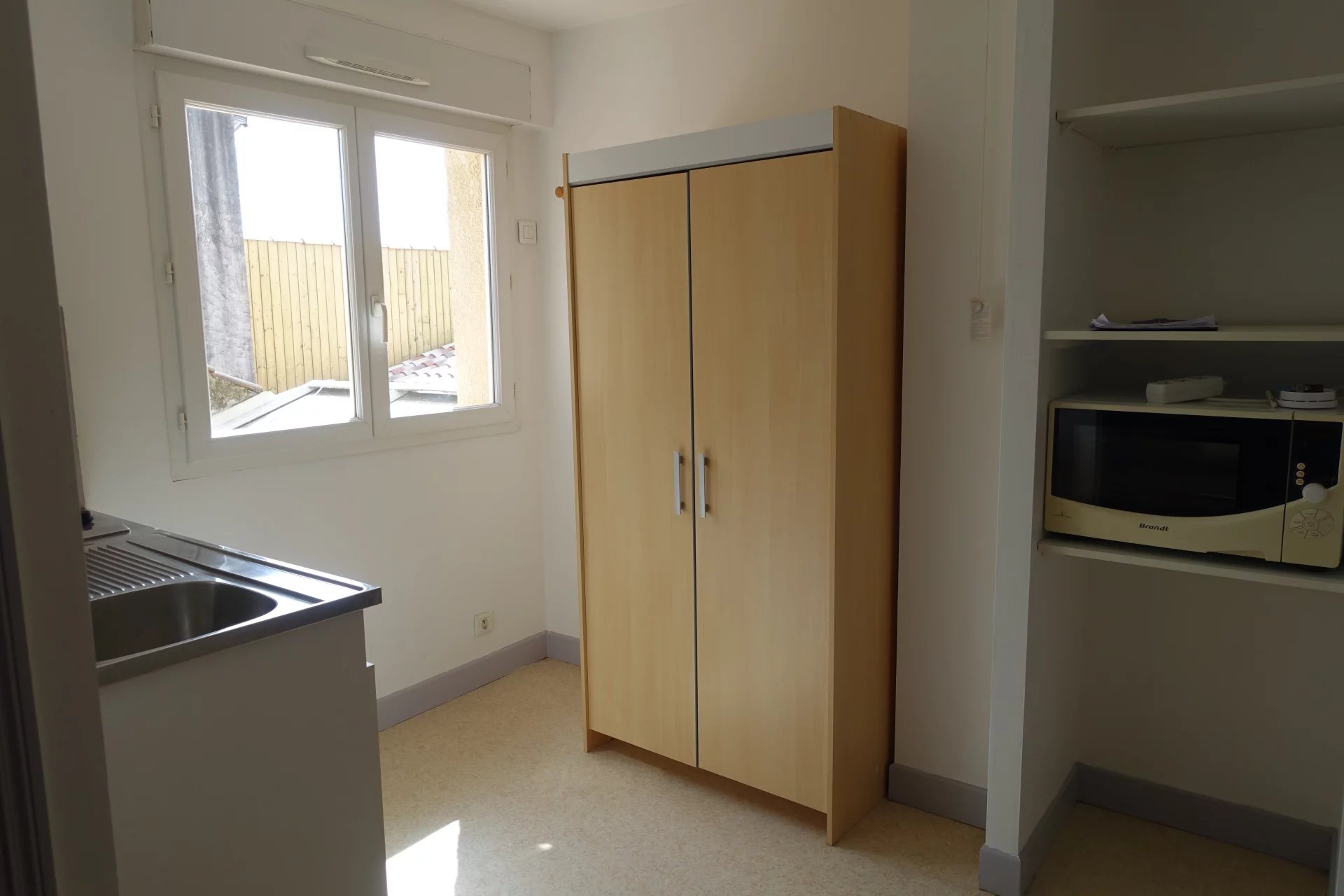 Dans petite copropriété de 6 lots Studio meublé – 2ème étage Environ 12 m² habitables Pièce à vivre avec coin cuisine équipée, Salle d’eau avec WC.