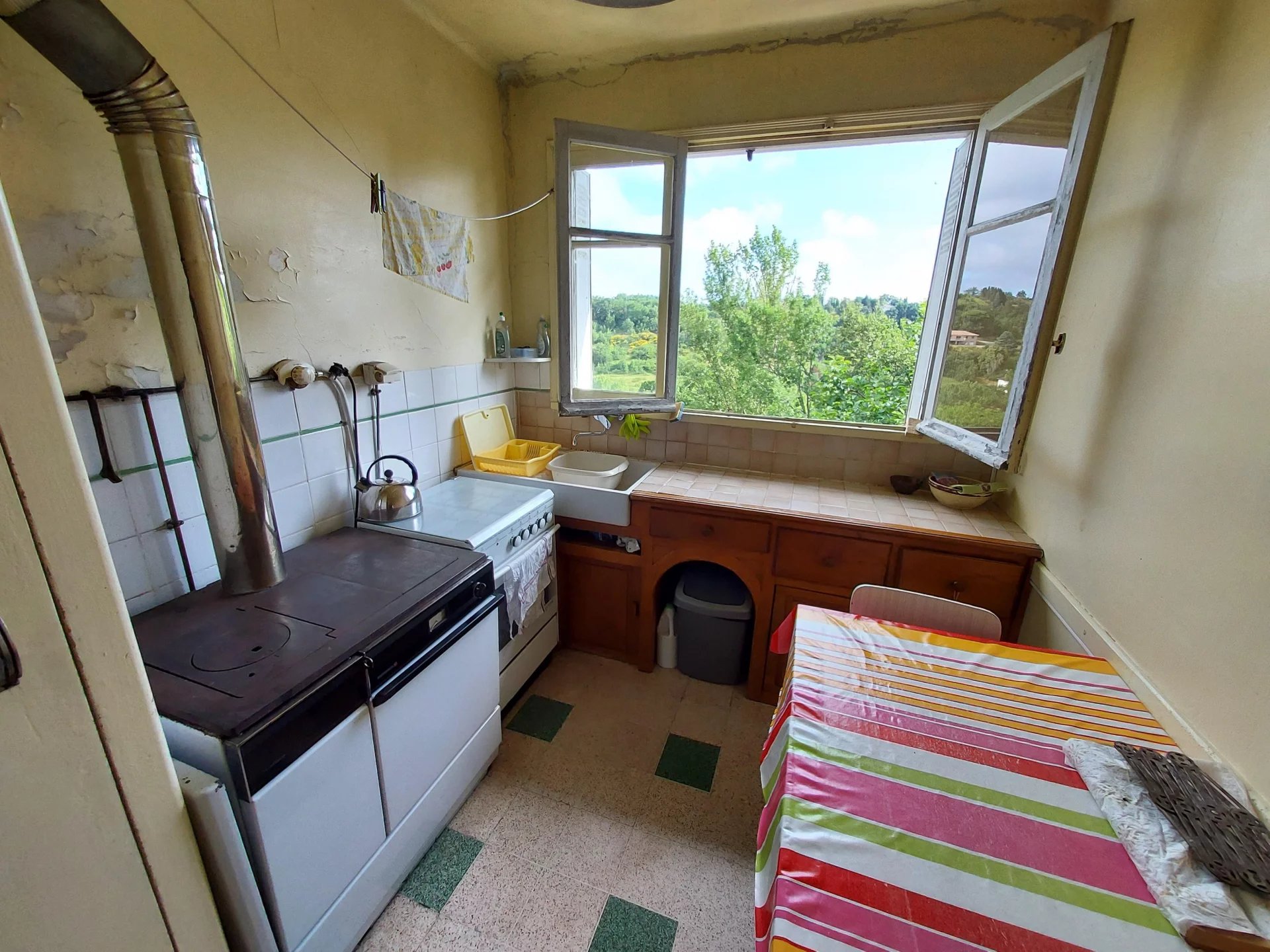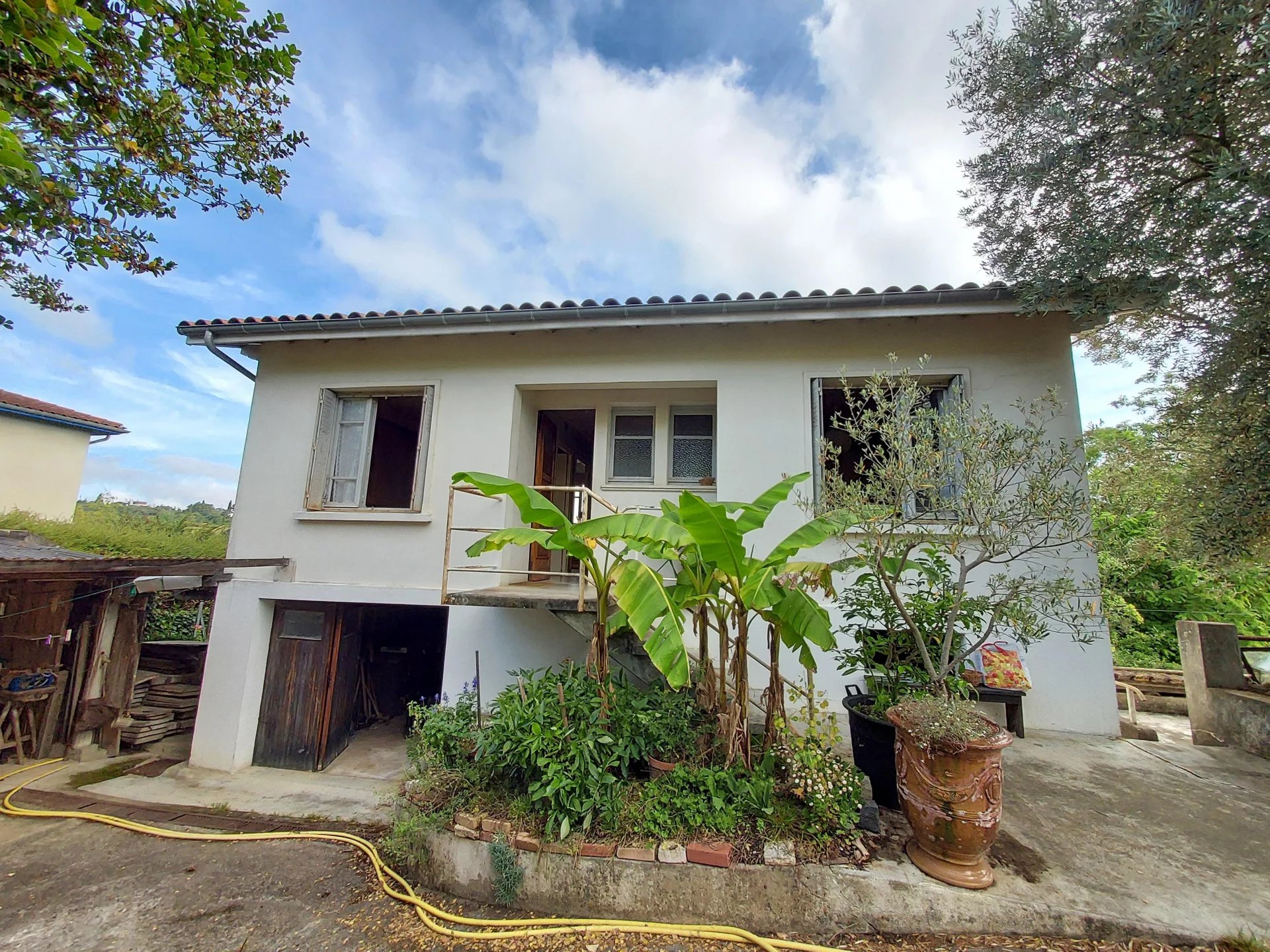 SOUS COMPROMIS DE VENTE En exclusivité AUCH - Maison Type 4 d'environ 61m² à rénover et comprenant une entrée, un salon avec cheminée, une cuisine, 3 chambres, une salle d'eau, un wc indépendant, système de chauffage central au gaz de ville (à revoir). Agréable jardin avec abri bois Grand garage en sous sol avec 2 caves Toiture récente Prévoir travaux (électricité, isolation...)