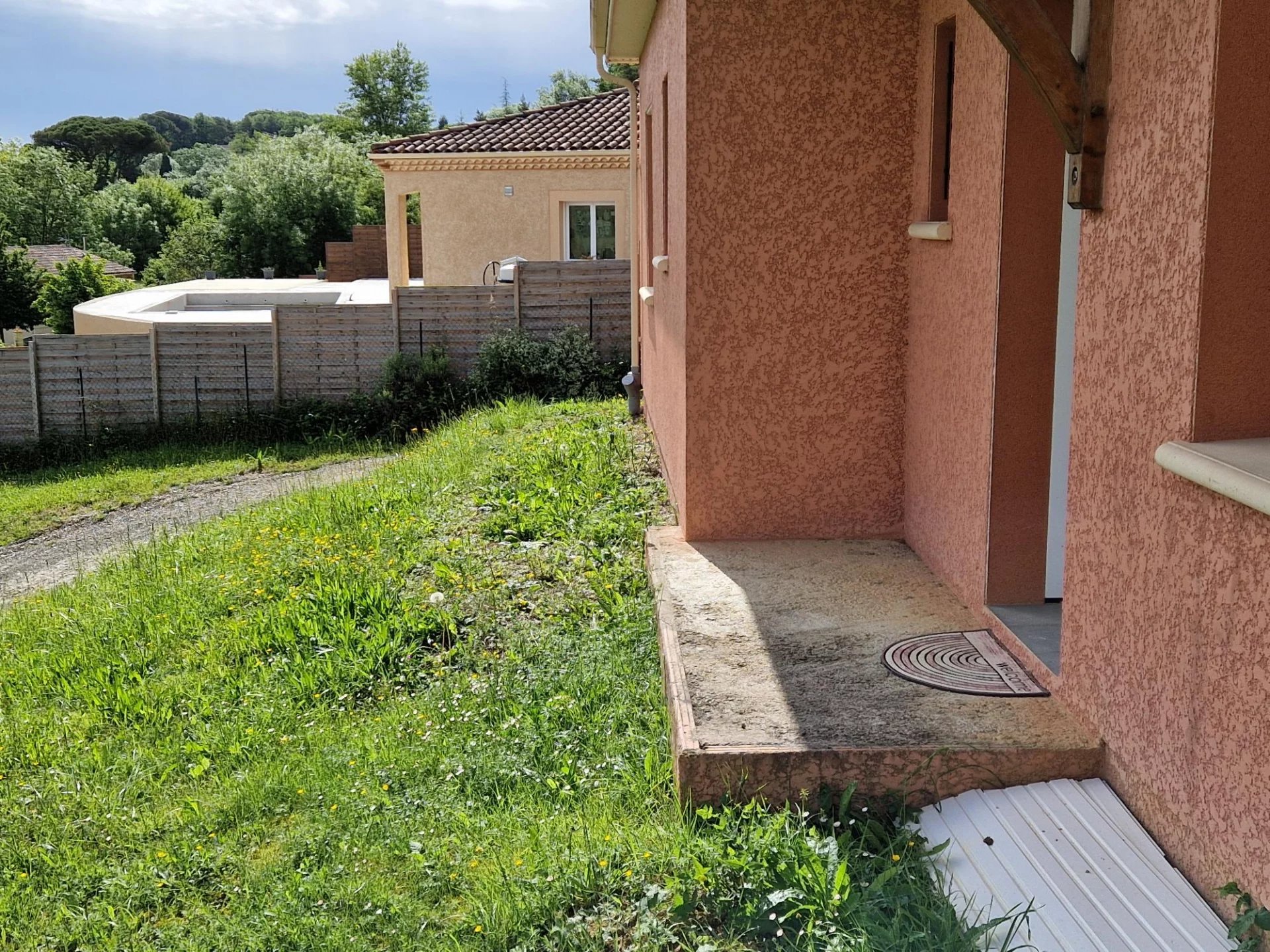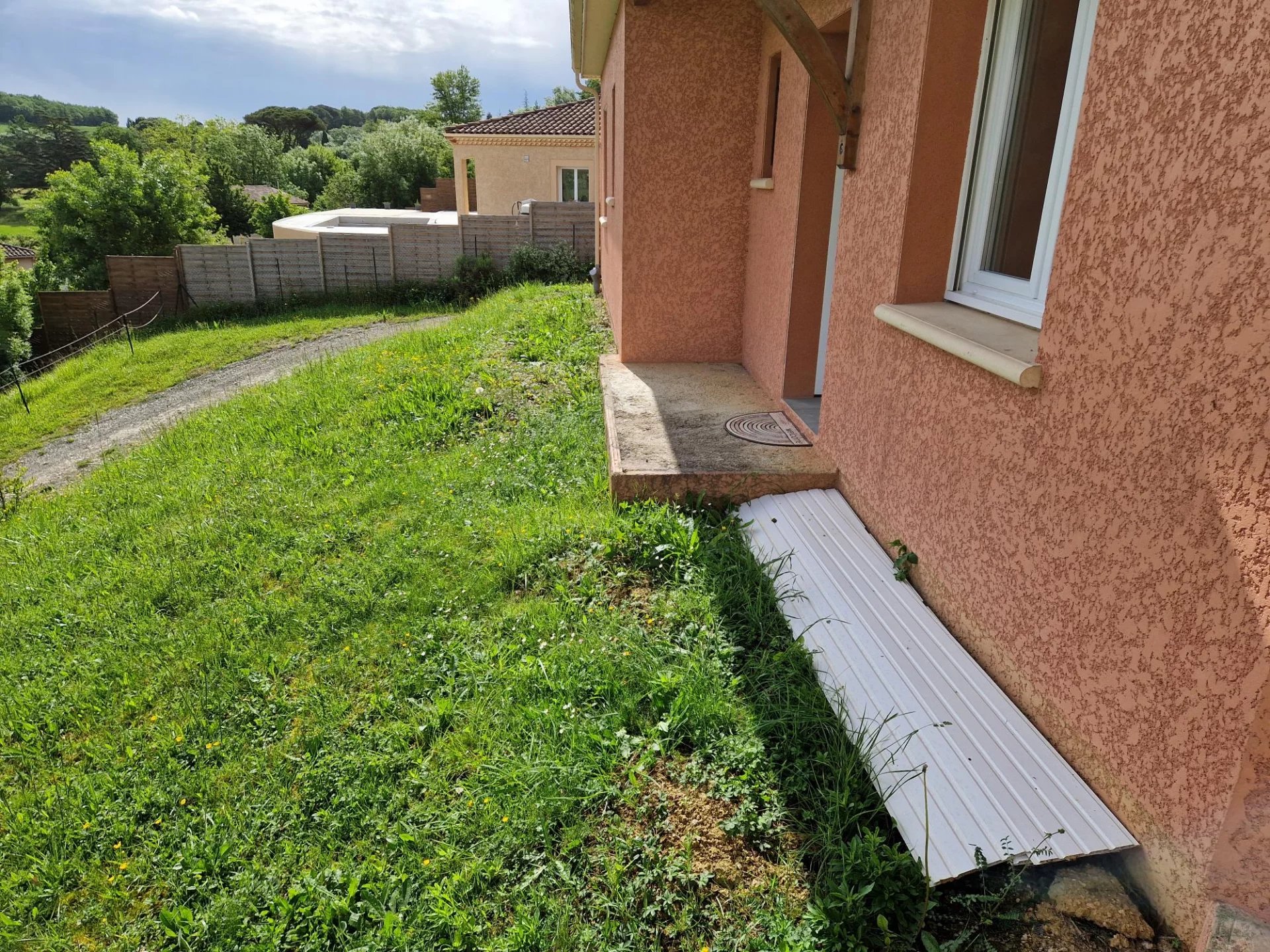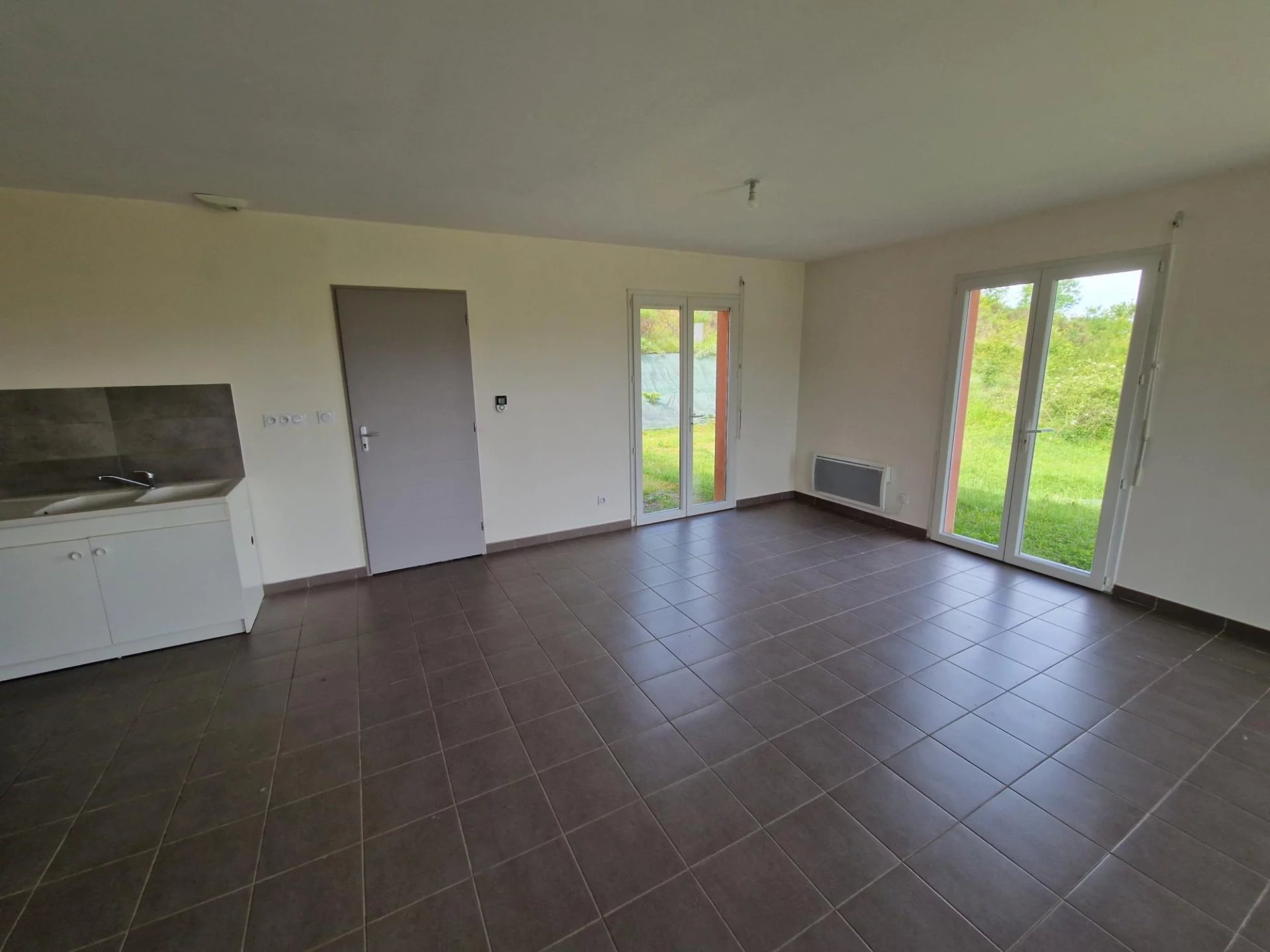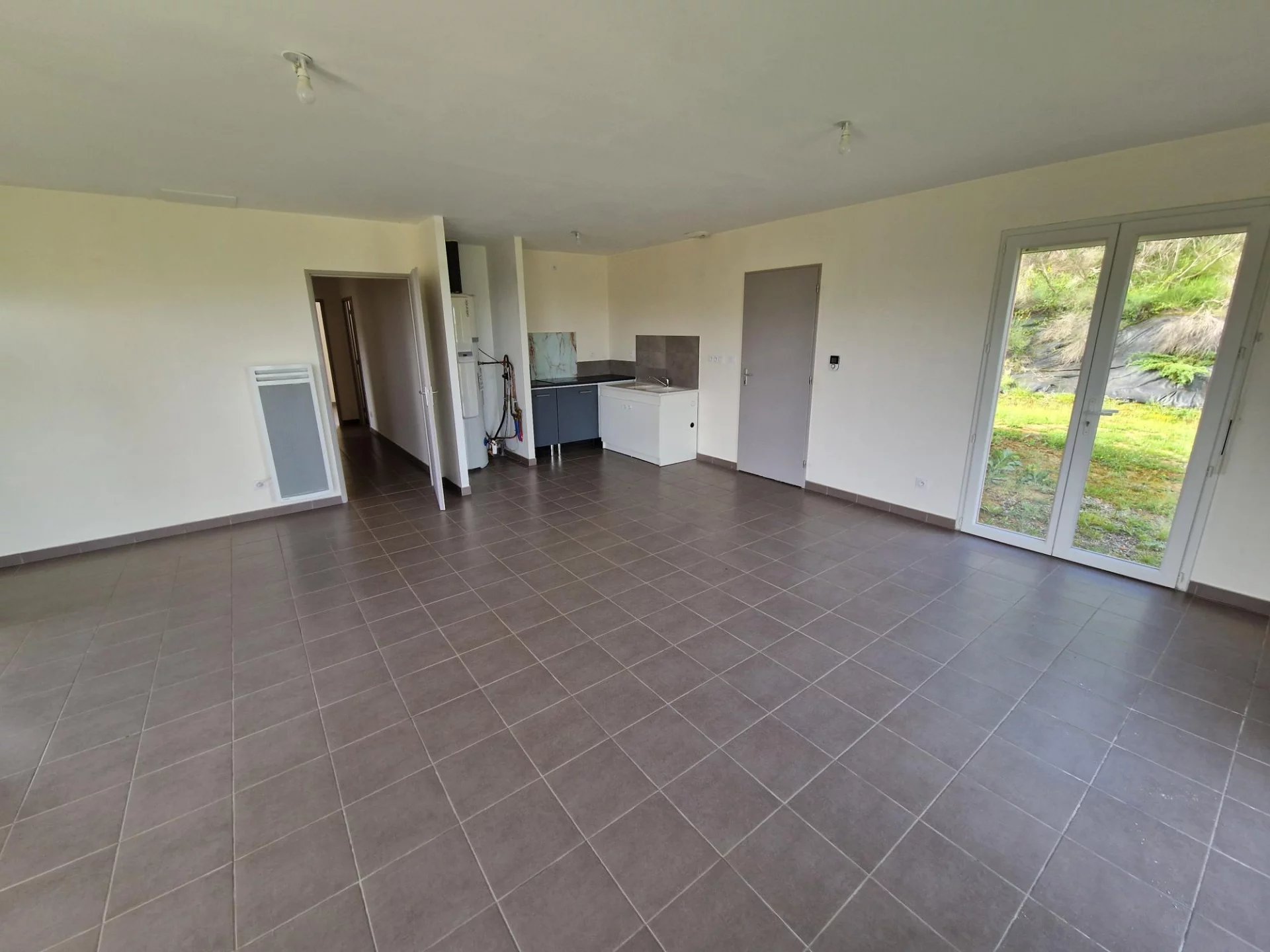 A louer, AUCH Sur les hauteurs avec vue dégagée sur la cathédrale Maison Type 4 de plain pied d'environ 85m² Très lumineuse! Grande pièce à vivre avec cuisine semi équipée ouvrant sur Terrasse. Couloir desservant 3 chambres, wc indépendant, salle de douche avec douche à l'italienne. Garage attenant Système de chauffage électrique (DPE C149) Jardin d'environ 1400m²