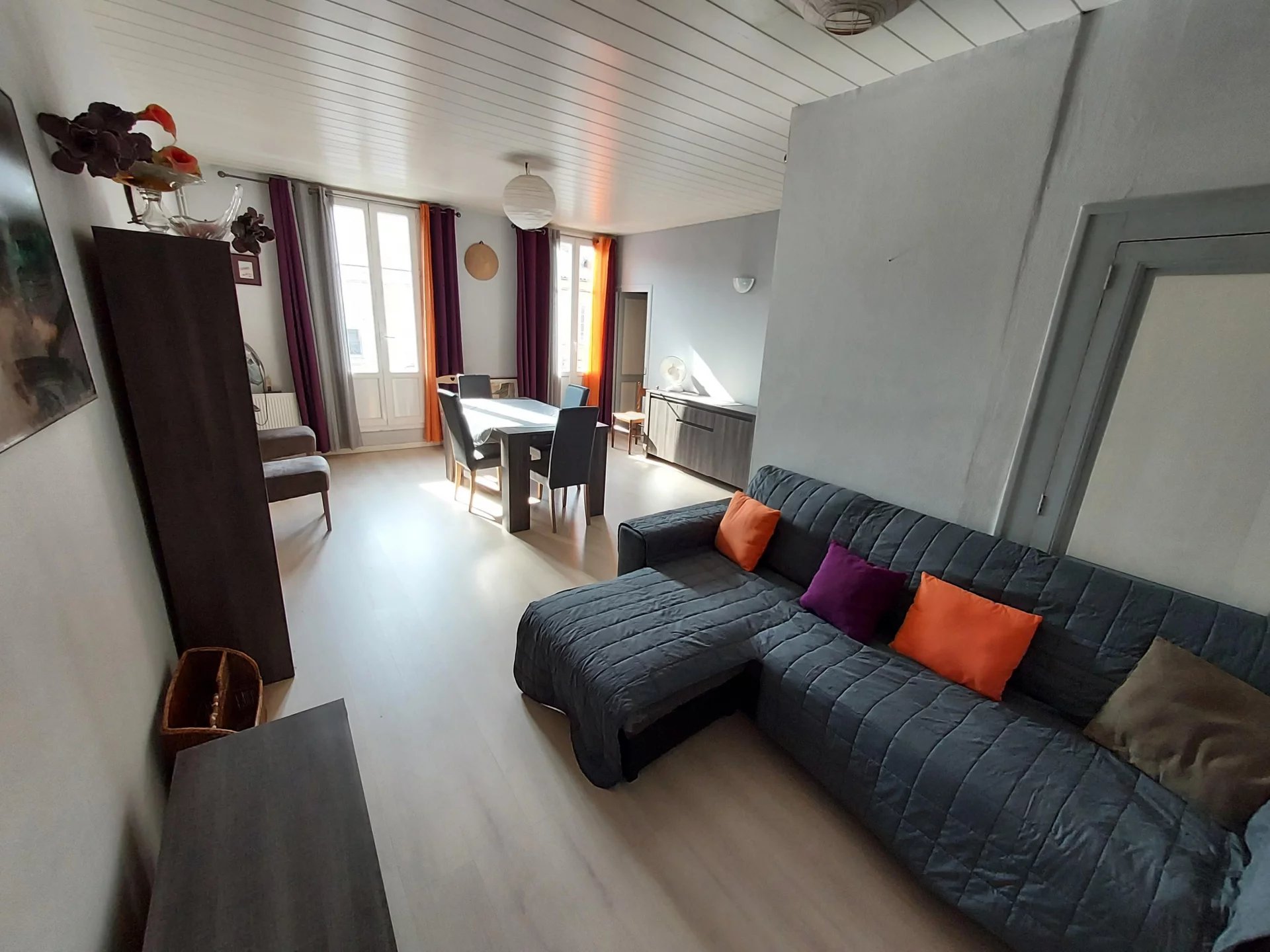 A louer en centre basse ville agréable appartement entièremment meublé d'environ 78m² comprenant: une entrée, un salon, une cuisine équipée avec coin repas, 2 chambres, une salle de bains avec coin buanderie, un wc indépednant + pièces d'appoints (salle de jeux, bureau) sous combles. Chauffage central au gaz de ville Cour commune avec possibilité de stocker vélos.