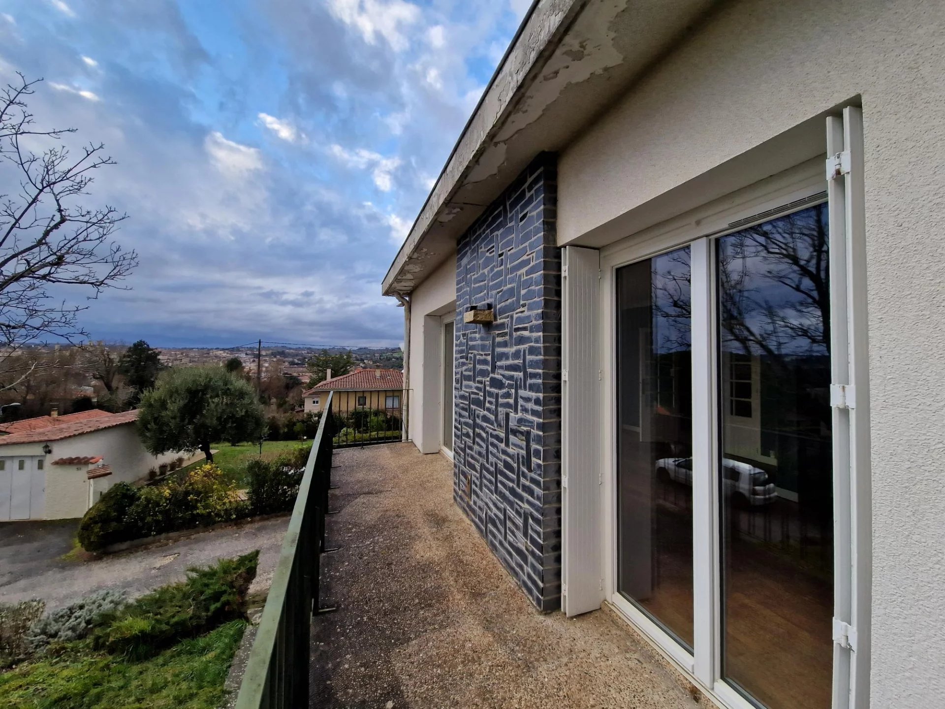 Libre mi-Février Auch Maison Type 5 d'environ 114m² Comprenant entrée, grande pièce à vivre ouvrant sur terrasse avec vue sur les Pyrénées et la cathédrale, cuisine équipée avec coin repas, véranda, bureau, 3 chambres, salle de bains, wc indépendant. Grand garage en sous-sol. Chauffage central au gaz de ville avec chaudière à condensation neuve. Agréable jardin d'environ 500m². DPE:D228