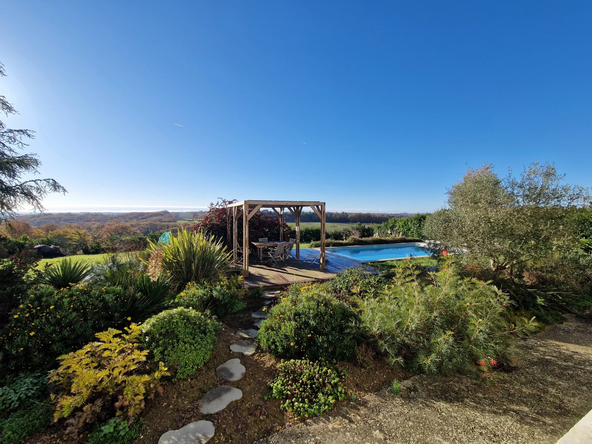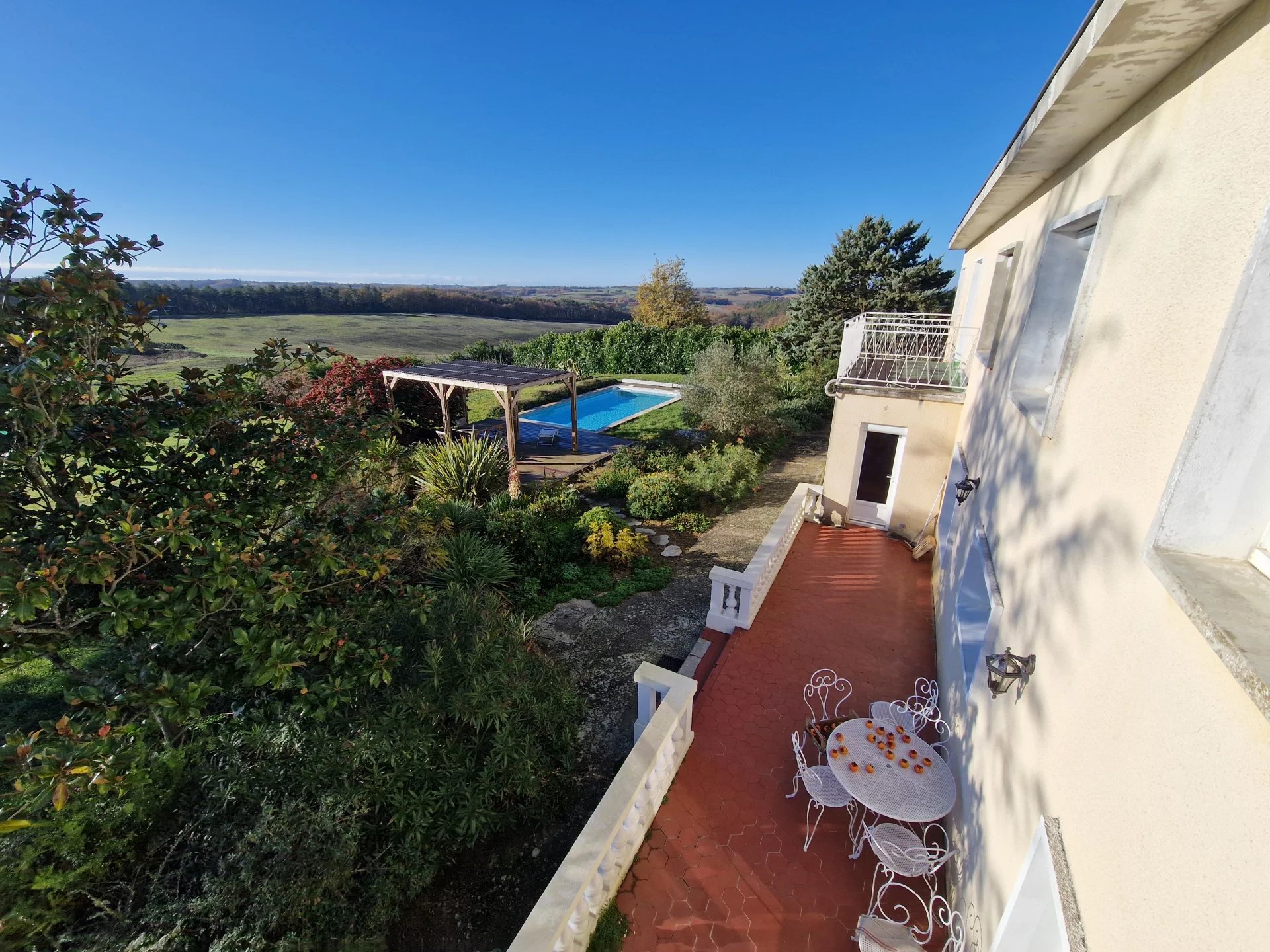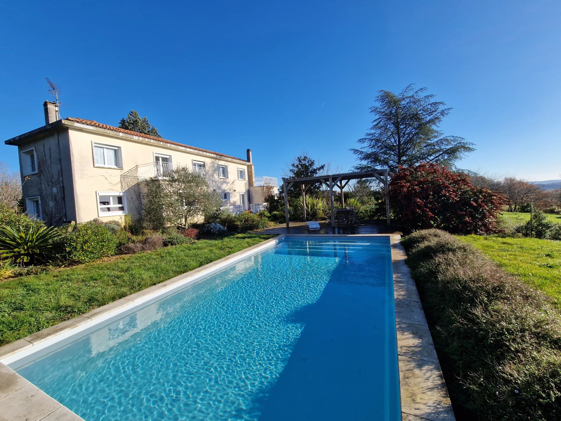 Cette maison d'environ 190m² comprend, au rez-de-chaussée une grande et agréable pièce à vivre, cuisine équipée, une chambre, une salle d'eau avec douche italienne, un wc indépendant ainsi qu'une grande buanderie. A l'étage un couloir desservant 4 chambres dont 2 avec terrasses, une salle d'eau, wc indépendant, dressing. A l’extérieur, un terrain arboré d'environ 4380m² avec une terrasse, une piscine et un garage indépendant.