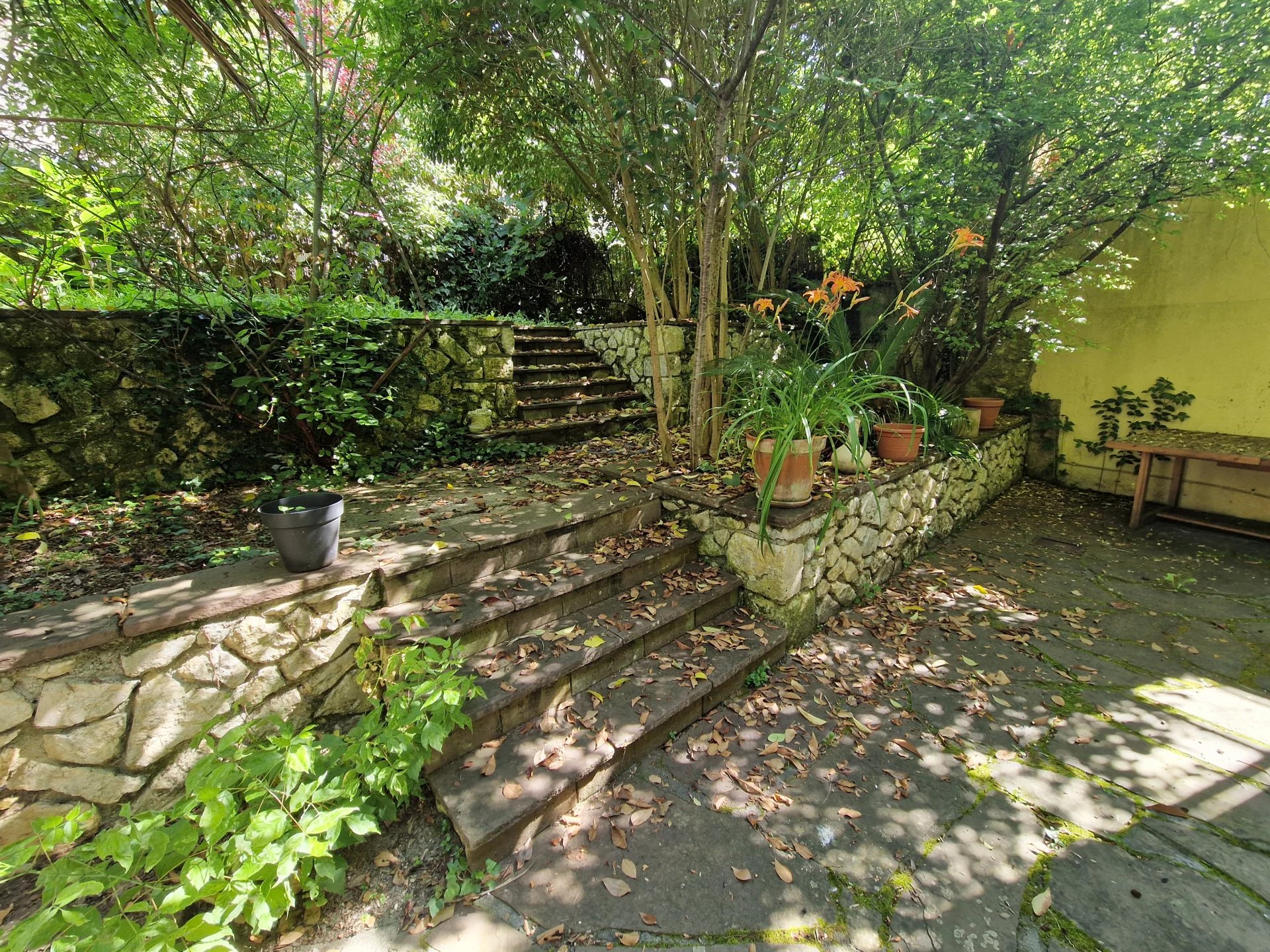 -Un palier desservant une agréable pièce de vie avec cheminée, une cuisine équipée, une buanderie, un WC indépendant, Une terrasse donnant accès à un jardinet privatif, parfait pour les beaux jours