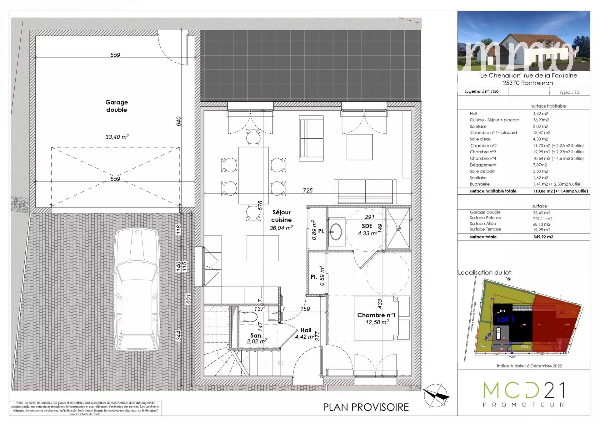 ROCHEJEAN, à 16 km de la douane de vallorbe et 9km de la frontière de Mouthe, sur un terrain plat de 410 m², maison neuve jumelée d'environ 120m² au sol, 4 chambres, terrasse, jardin, double garage. Assurance DO. Plan en agence. Pour plus de renseignements contacter IVAN au 06 85 19 47 53. IMMOLIAISON DOMMARTIN 25. Montant estimé des dépenses annuelles d'énergie pour un usage standard :néant. Les honoraires sont à la charge du vendeur. ERNT les informations sur les risques auxquels ce bien est exposé sont disponibles sur le site GEORISQUES www.georisques.gouv.fr Honoraires à la charge du vendeur - Ivan BEILLACOU - Agent commercial - EI - RSAC BESANCON 447635525 - RCS 40834475202127 - Caisse de garantie QBE transaction 500000 EUR