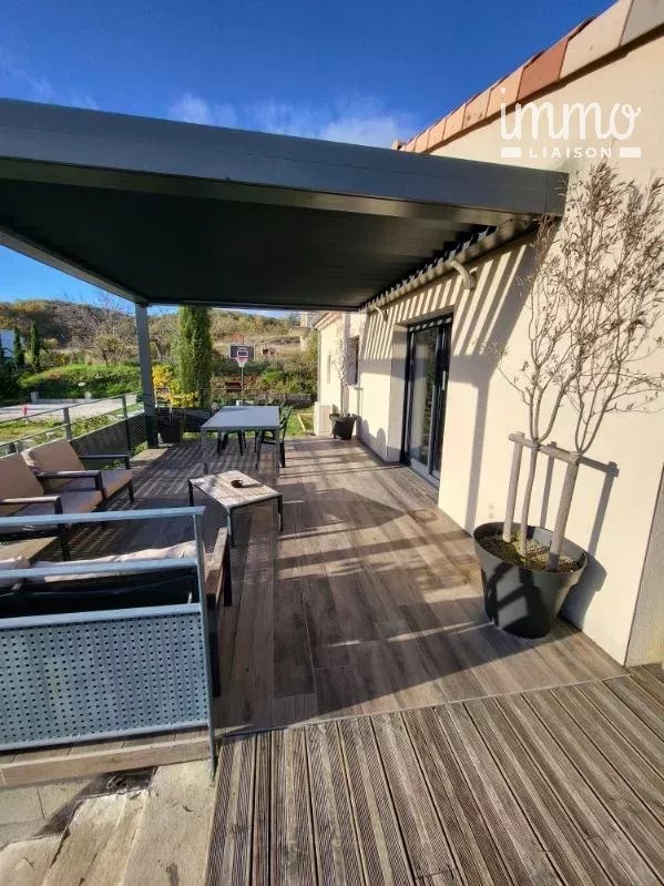La maison est composée d'un hall d'entrée équipé d'un placard donnant sur une pièce à vivre spacieuse de 46 m², d'une cuisine aménagée ouverte sur la pièce de vie, avec de grandes baies vitrées donnant sur deux terrasses dont une équipée d'une pergola bioclimatique, une suite parentale avec son dressing aménagé, deux autres chambres avec placards, une salle d'eau, d'un toilette séparé, un cellier/buanderie, un garage avec une porte intérieure donnant directement dans la maison. Pompe à chaleur plancher chauffant rafraichissant, volets électriques. Terrain piscinable, sur le terrain une dalle de 32 m² pour un futur abri. À proximité des commodités. Honoraires à la charge du vendeur - Les informations sur les risques auxquels ce bien est exposé sont disponibles sur le site Géorisques : www.georisques.gouv.fr - Sonia TOURNIE - Agent commercial - EI - RSAC Aubenas 492834205 - RCS 40834475202127 - Caisse de garantie QBE transaction 500000 EUR