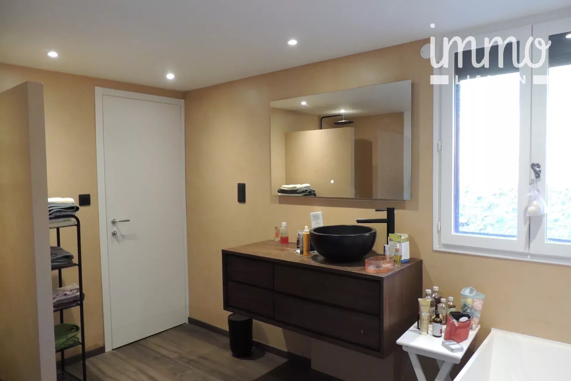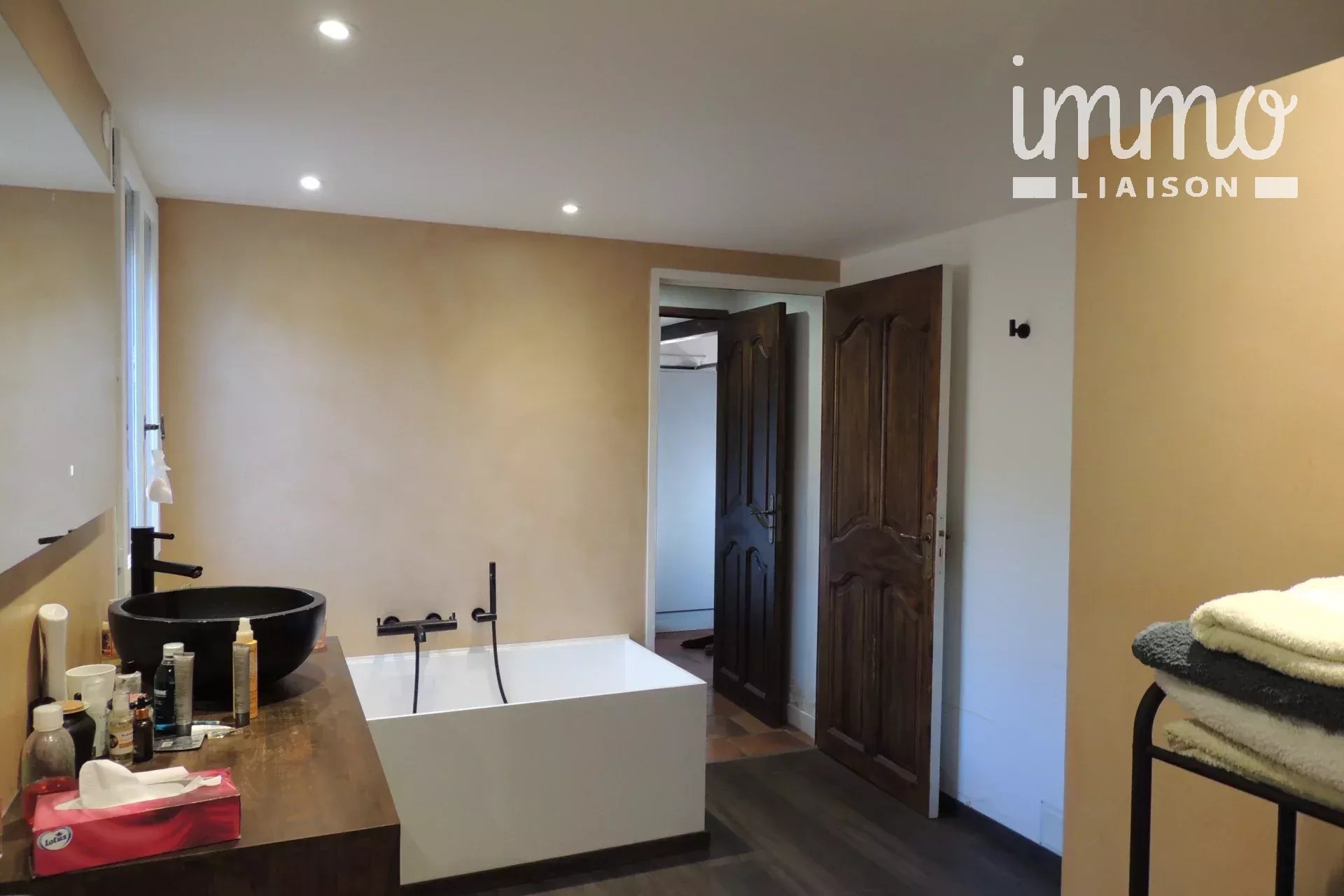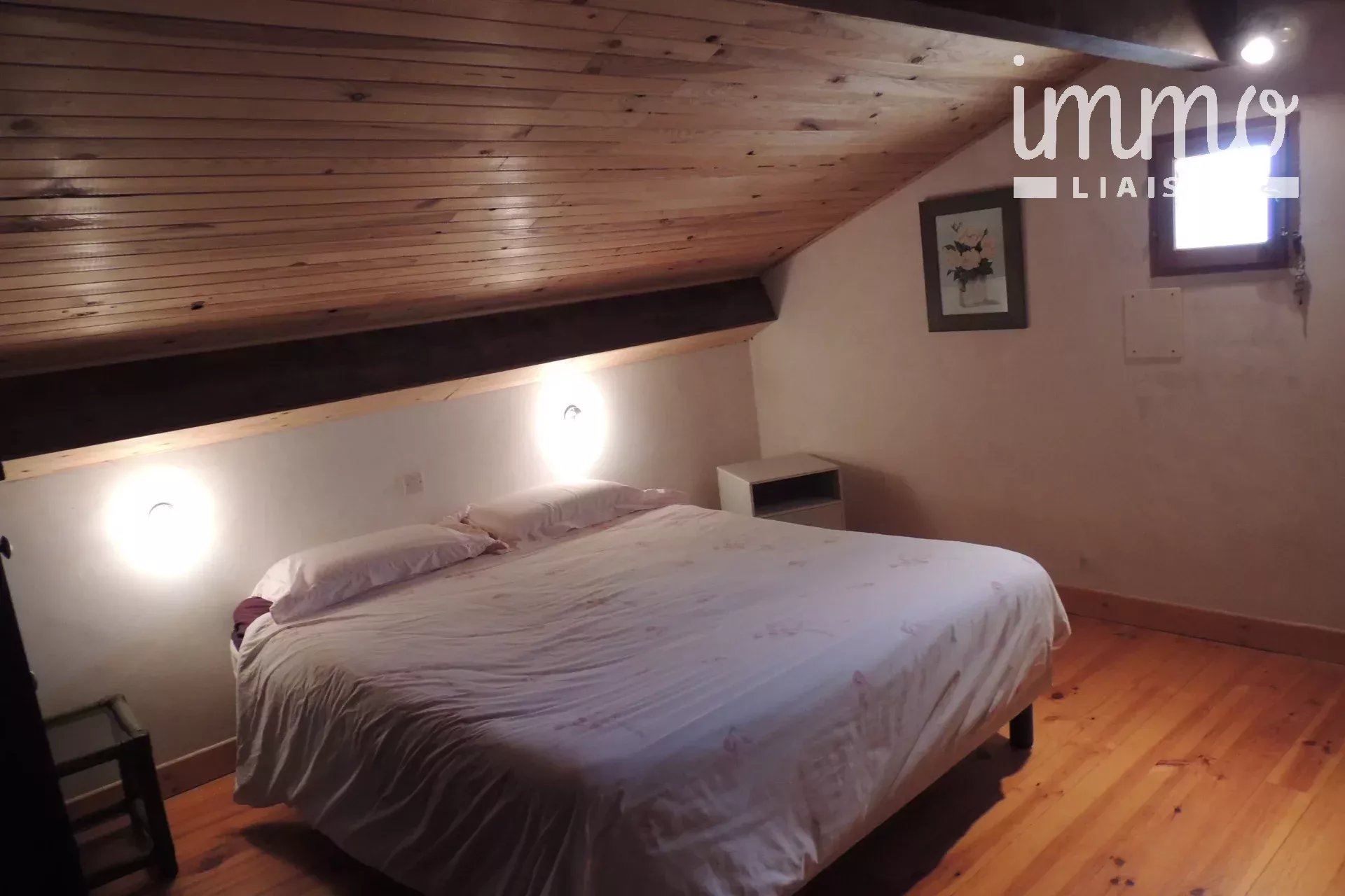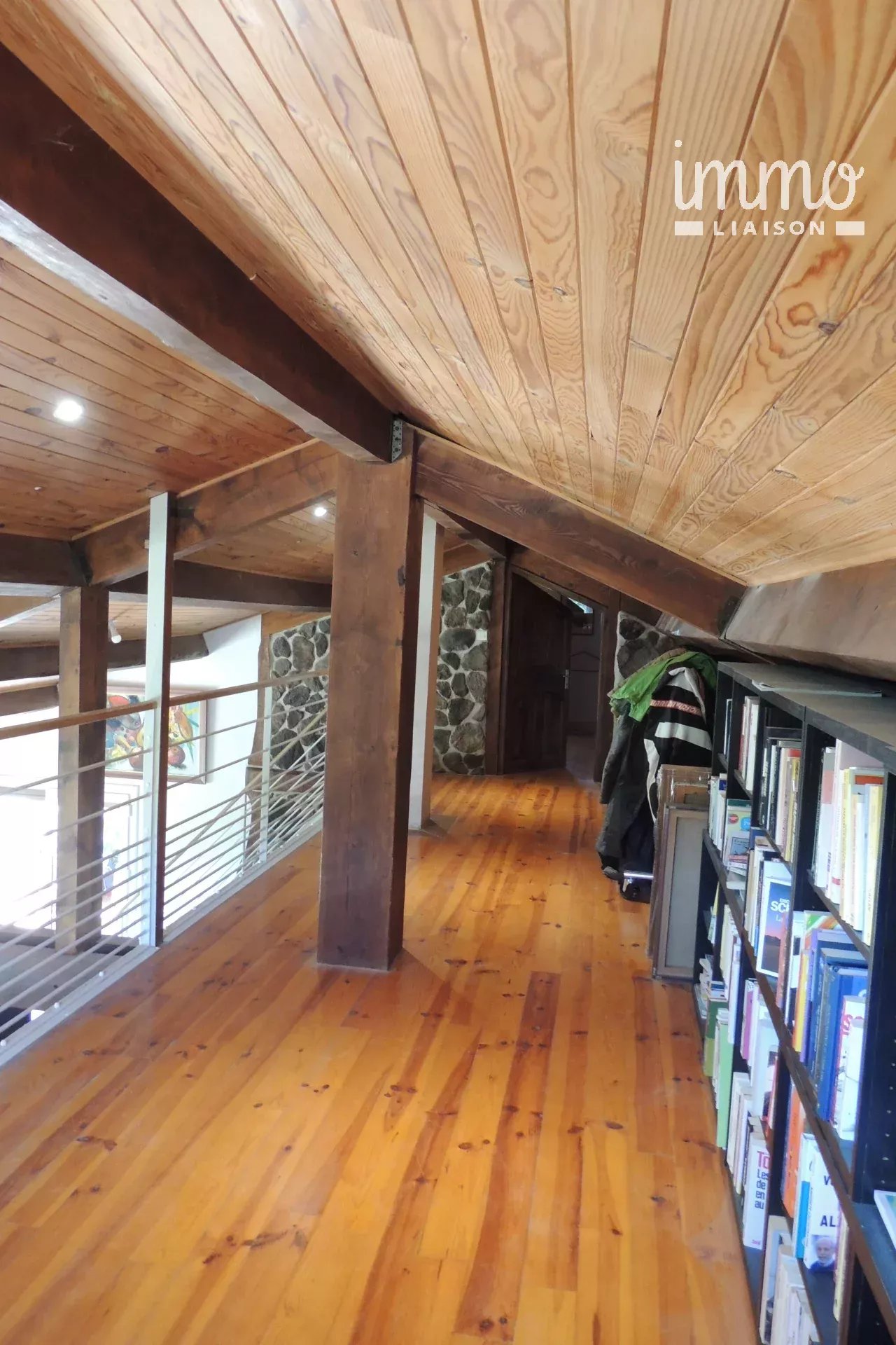 À l'étage, une grande mezzanine dominant la pièce de vie et une chambre de 14,30 m² (Hors Carrez) agencée de placards.