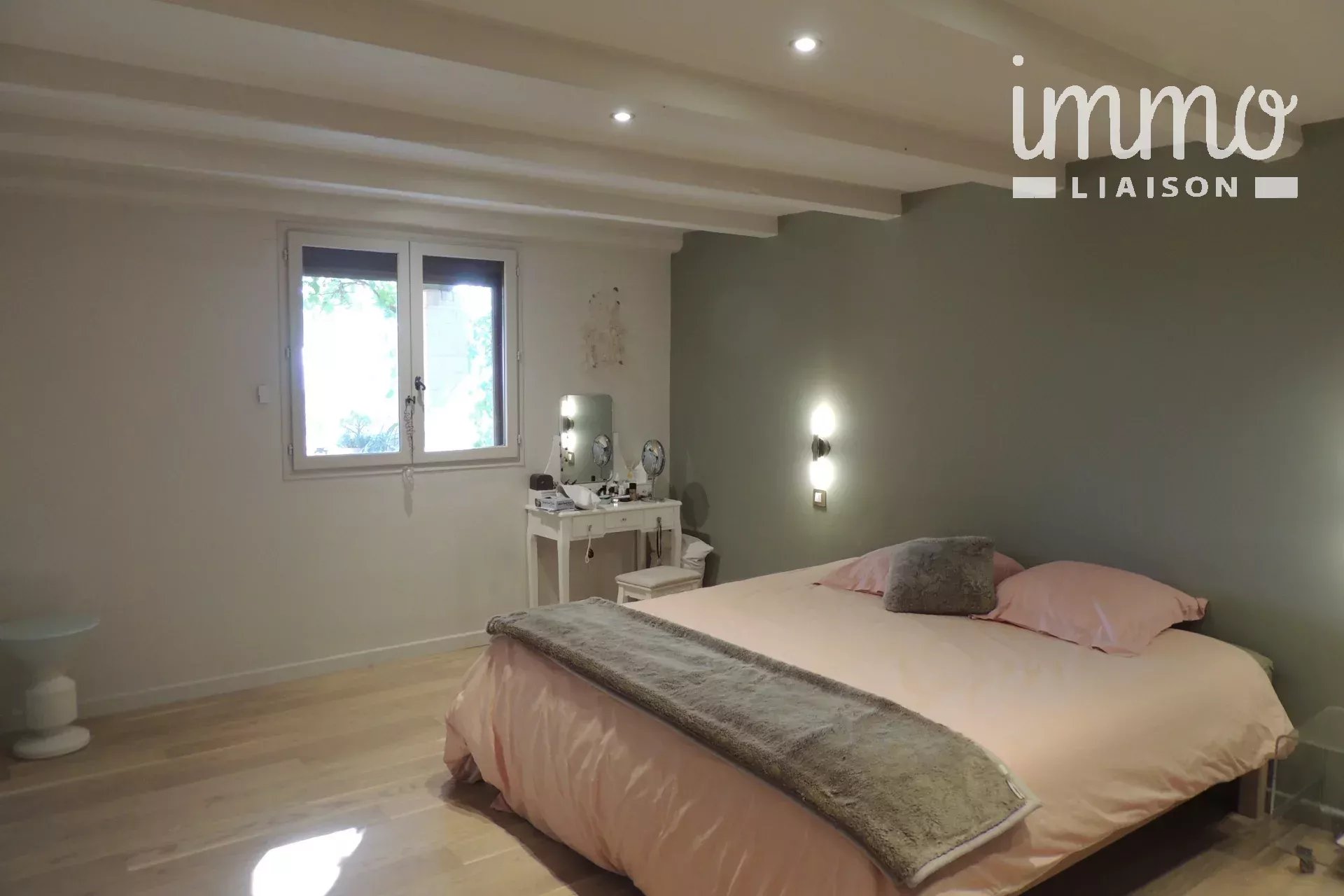 La maison principale est composée au rez-de-chaussée d'une pièce à vivre spacieuse de 52 m², le salon est équipé d'un poêle à granules récent, d'une grande cuisine aménagée ouverte sur la pièce de vie , d'une suite parentale avec meubles à dressing et salle de bains avec une baignoire et une douche italienne, d'un wc séparé, un cellier/buanderie, de deux terrasses couverte dont une équipée d'un four à pain.