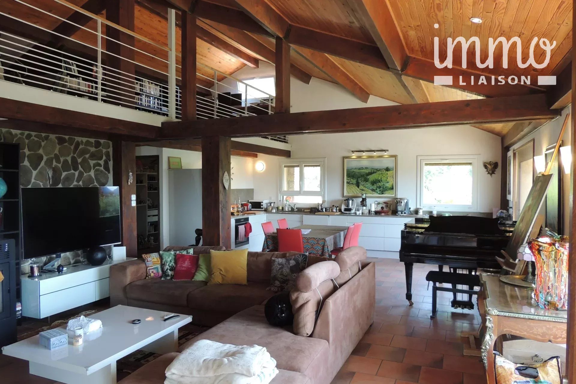 Le bien est constitué d'une maison principale et d'un gîte offrant une vue panoramique exceptionnelle sur tout le Bas Vivarais. Exposition Sud sur un terrain de 22 000 m² comprenant trois box à chevaux.