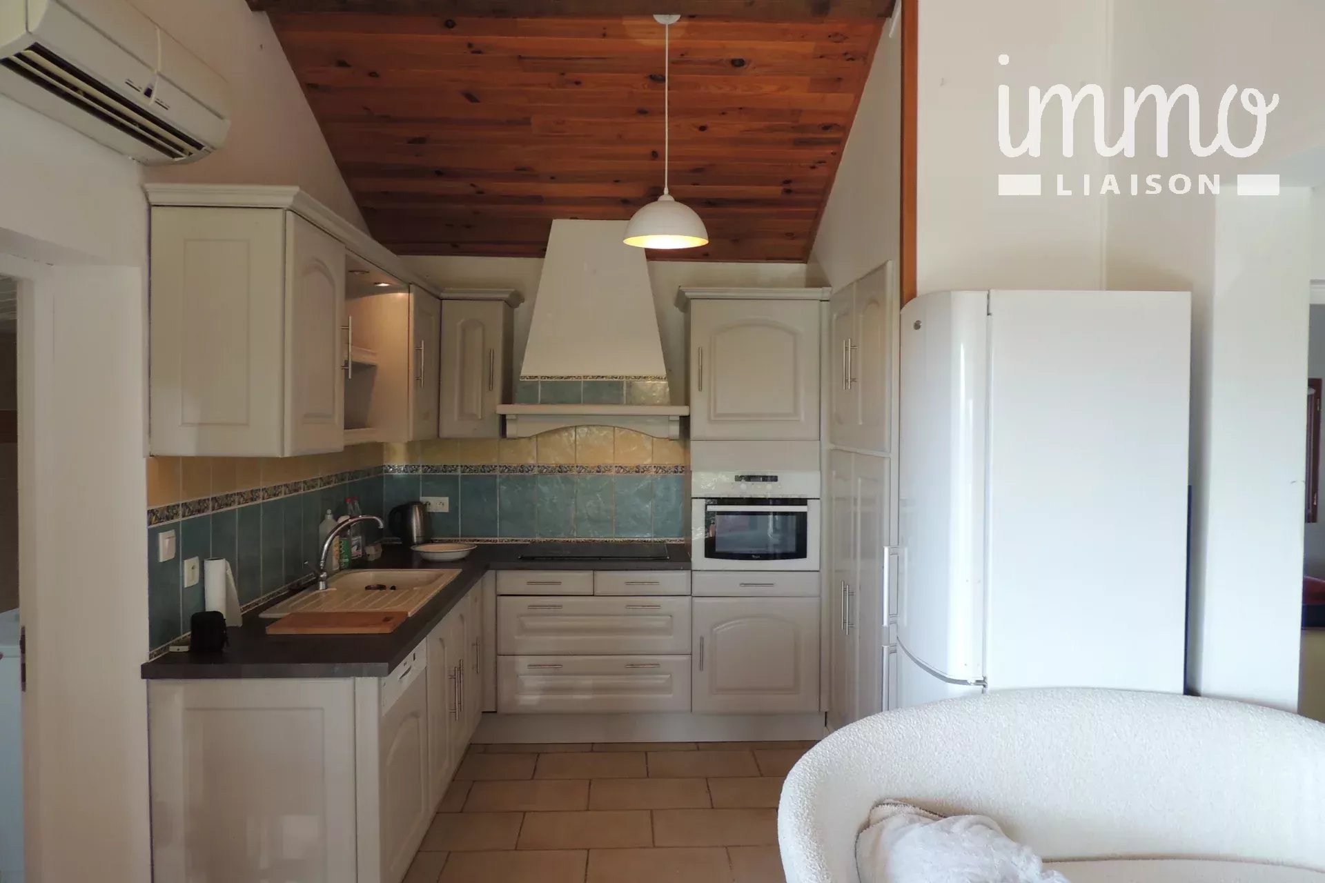 Un gîte indépendant construit en 2005, composé d'une pièce de vie très lumineuse donnant sur une terrasse couverte, la partie salon est équipée d'une cheminée avec insert, un coin cuisine aménagée, une chambre, un bureau pouvant servir de couchage supplémentaire, une salle d'eau avec wc, une climatisation réversible.