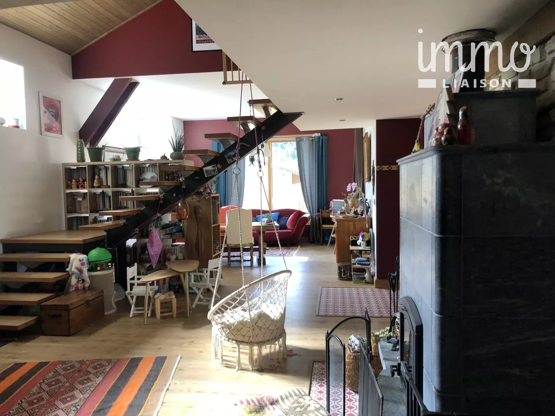 - un grande pièce à vivre de 70m2 avec un Poële de masse placé au centre.