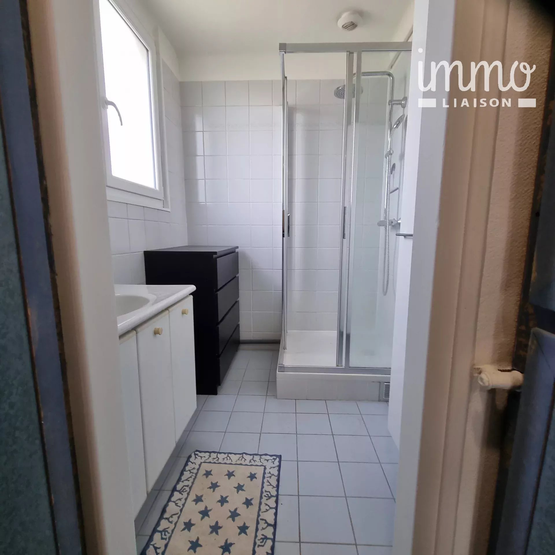 Au 1er étage : salon, une chambre parentale/salle de douche, bureau.